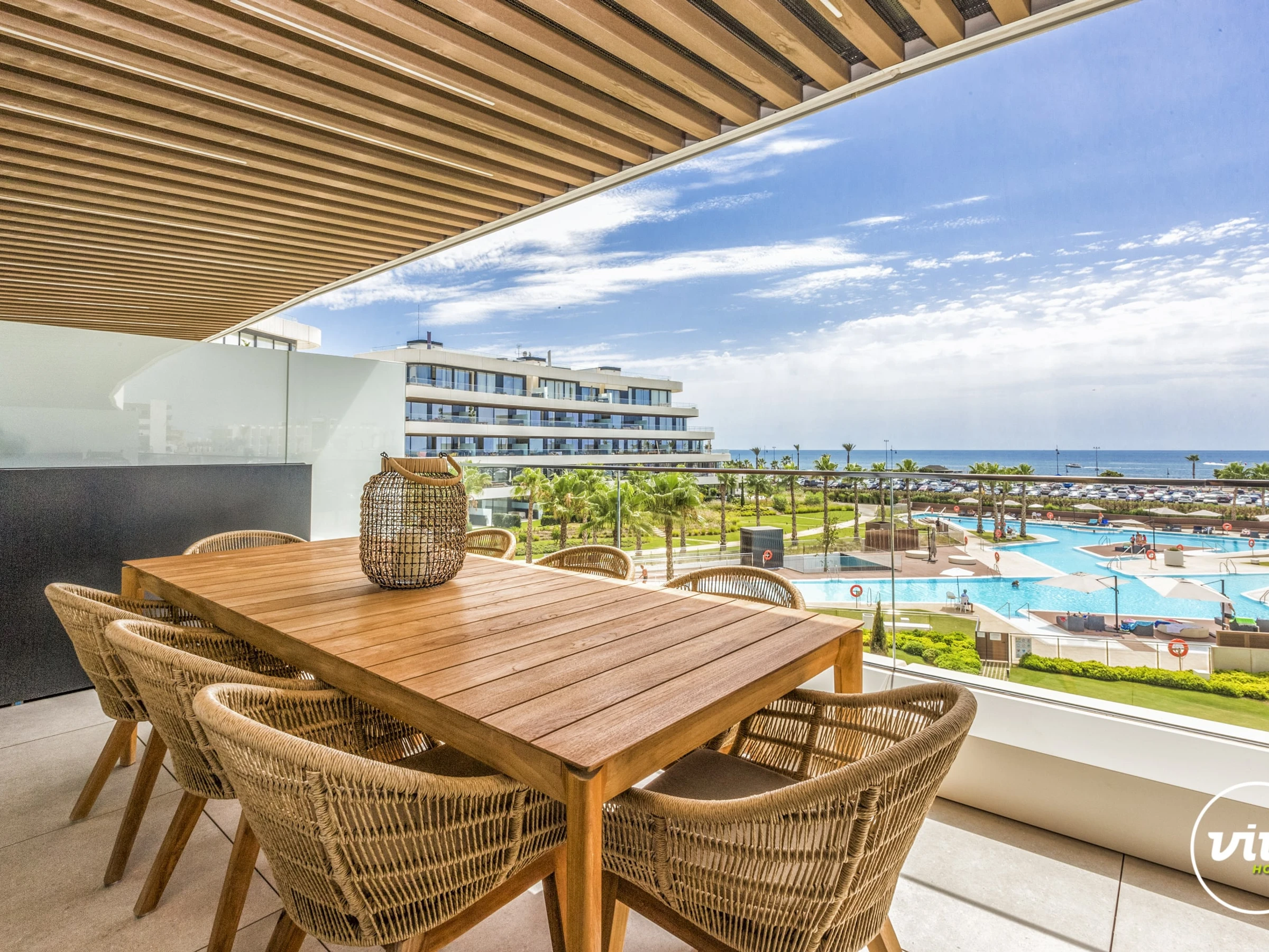 Logement de 128 m² joli et totalement équipé, situé en front de plage eten première ligne de golf, avec vue sur la mer et la montagne.