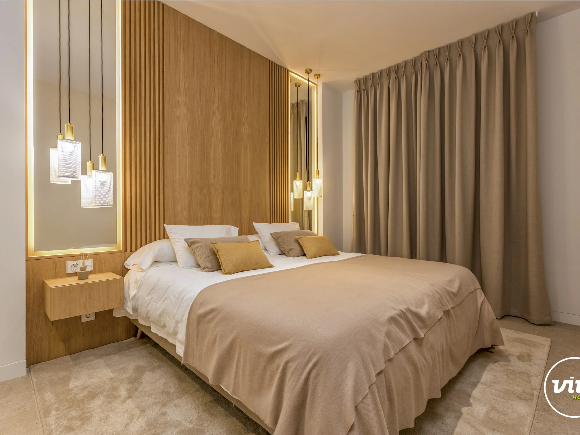Elle dispose de ascenseur, mobilier de jardin, clôture, 25 m² de terrasse, lave-linge, fer à repasser, coffre-fort, accès internet (wifi), sèche-cheveux, balcon, salle de sport, spa, chauffage central, climatisation dans tout le logement, piscine collective+infantile, garage même bâtiment, TV.