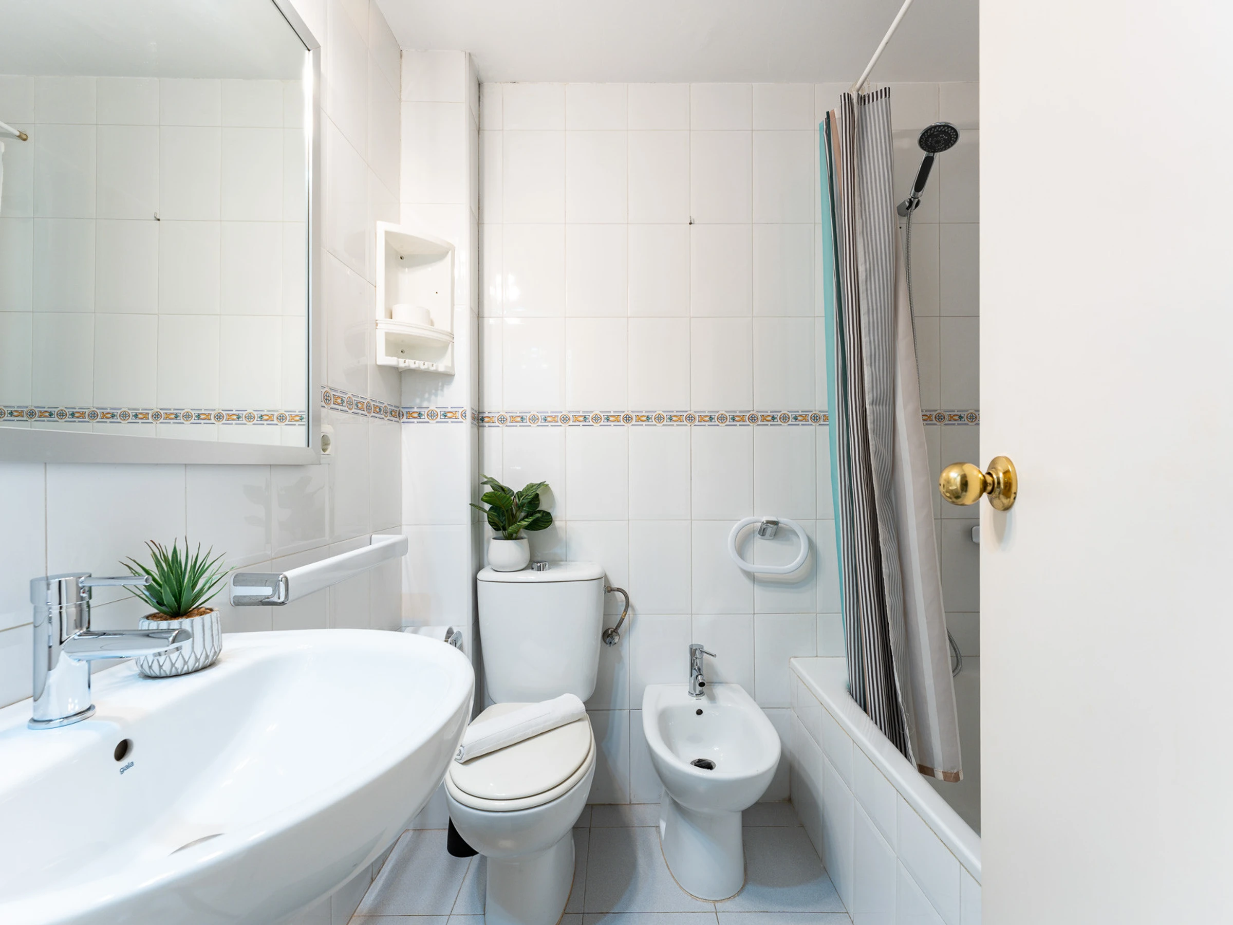 L'appartement dispose de trois chambres spacieuses, chacune avec un lit double, et de deux salles de bain complètes : l'une avec une douche et l'autre avec une baignoire.