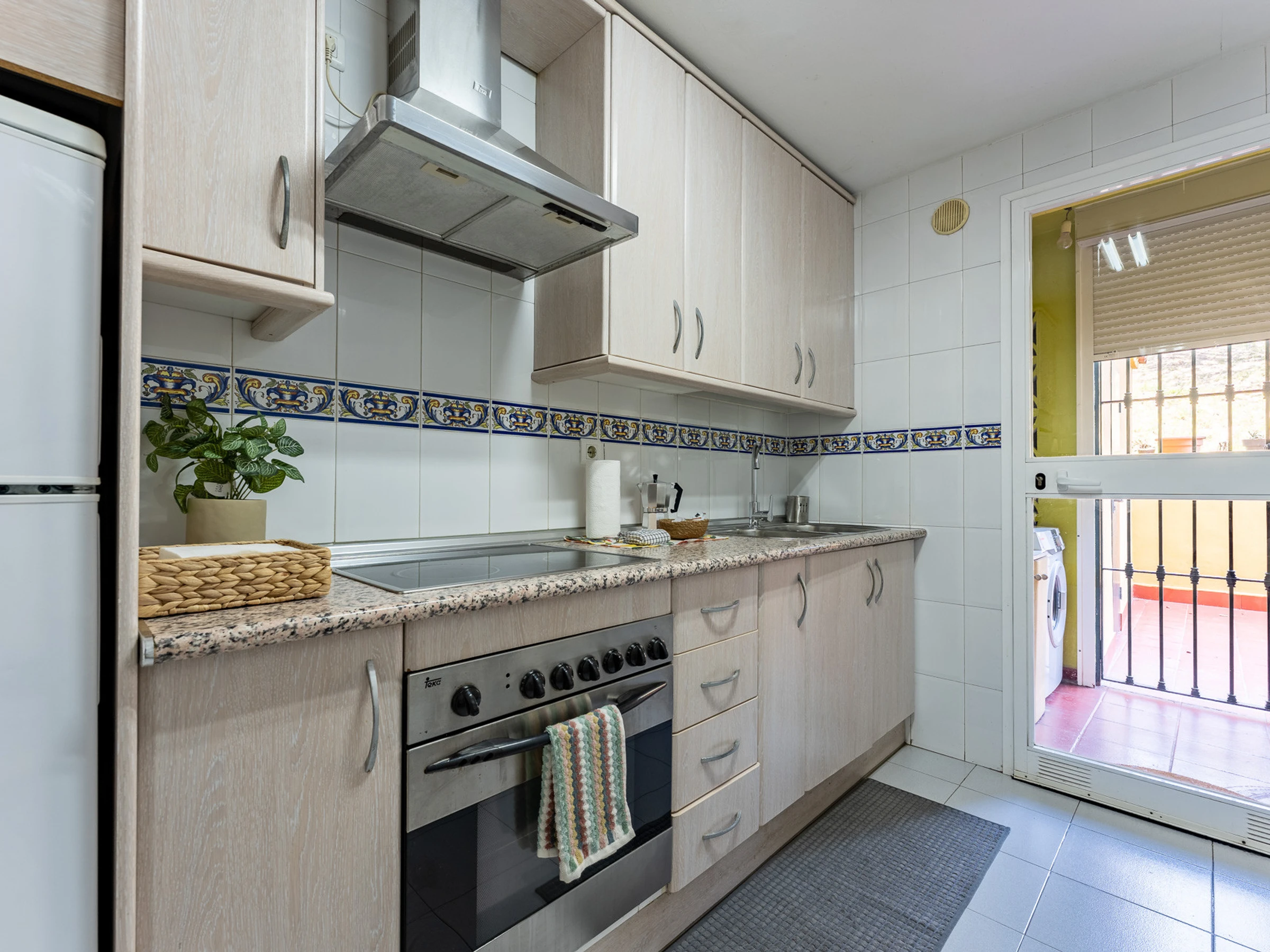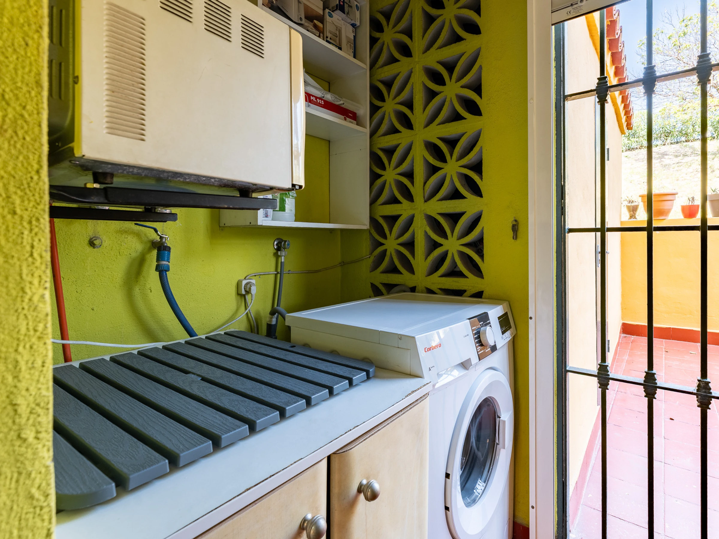 La cuisine est entièrement équipée avec tous les électroménagers et ustensiles nécessaires, et comprend également une zone de buanderie et une cour arrière.