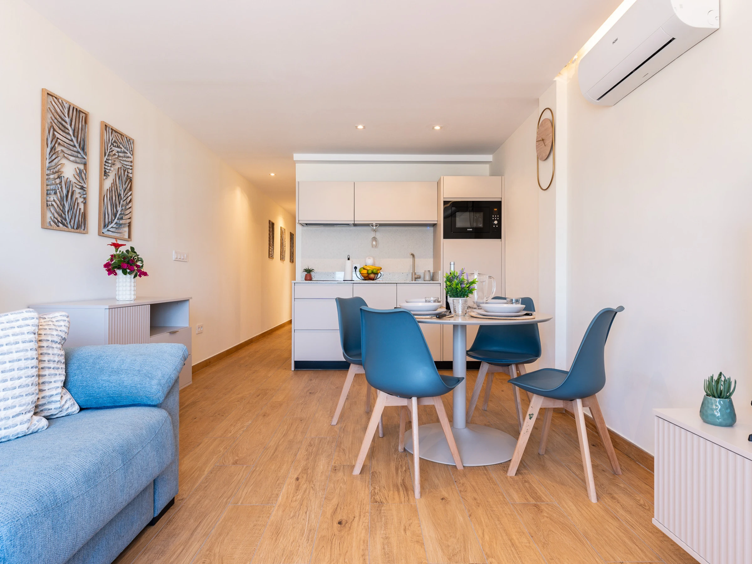 L'appartement est équipé de toutes les commodités dont vous pourriez avoir besoin. Il dispose d'un fer à repasser, d'un accès Internet (wifi), d'un sèche-cheveux, de l'air conditionné et du chauffage pour que vous vous sentiez à l'aise à tout moment de l'année.