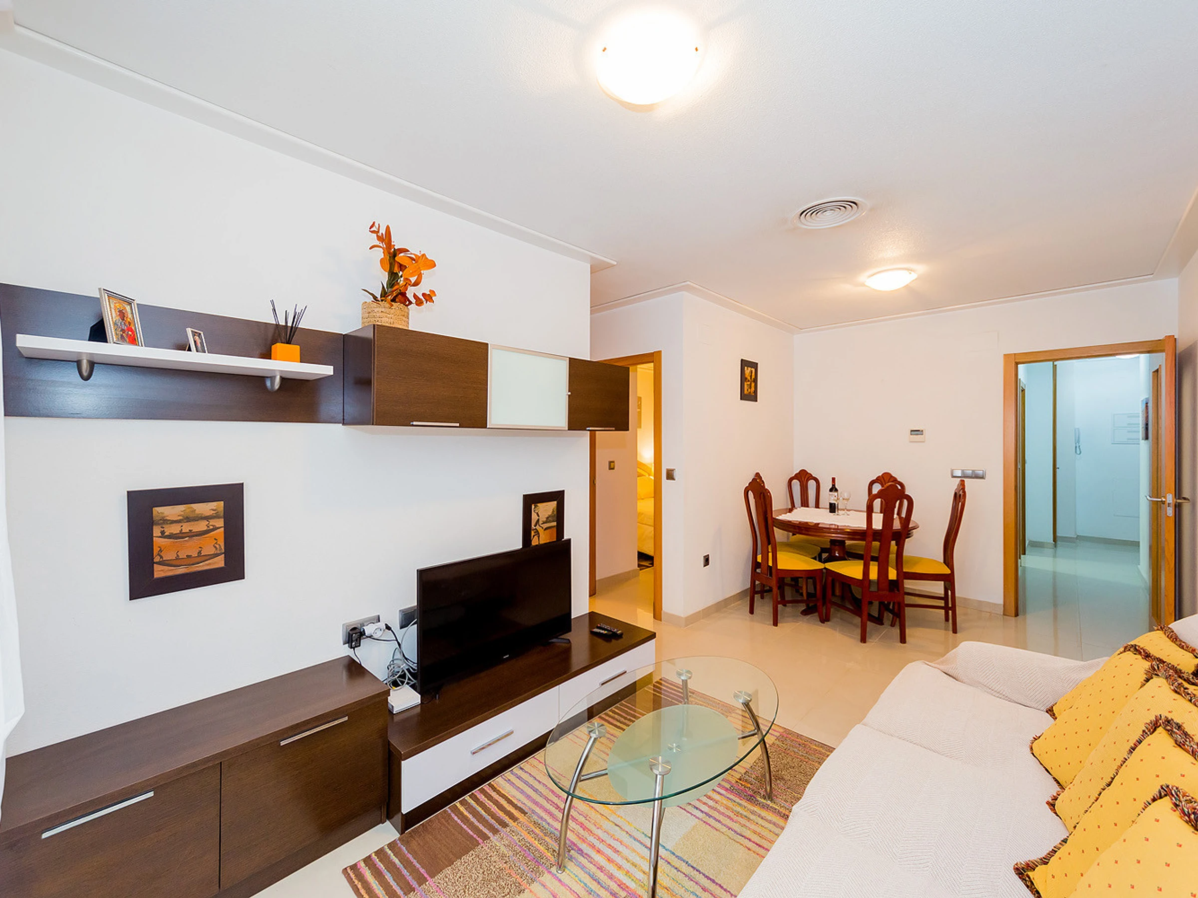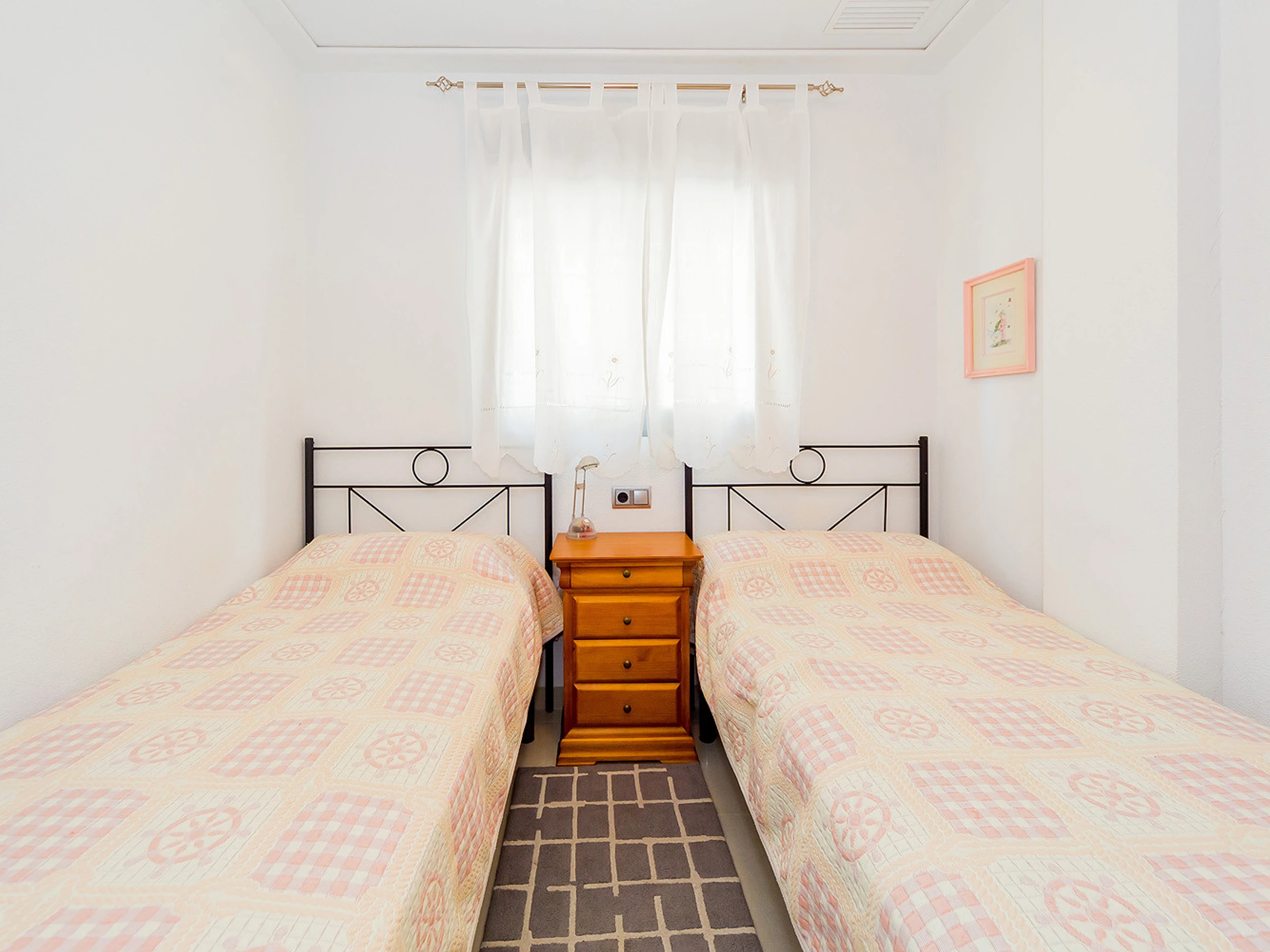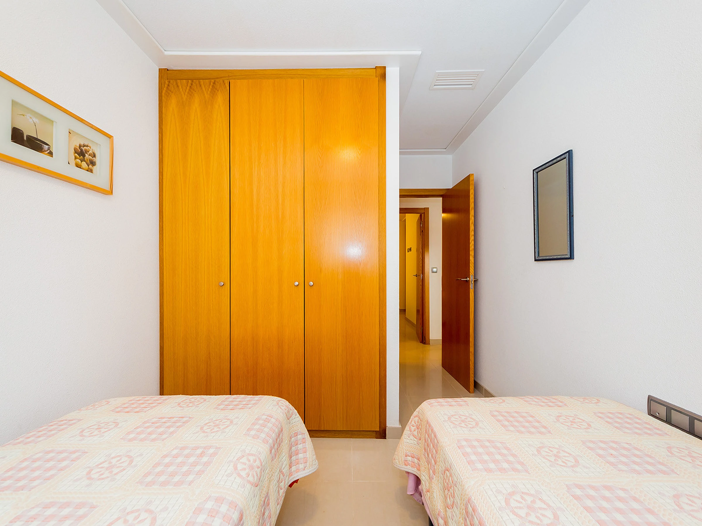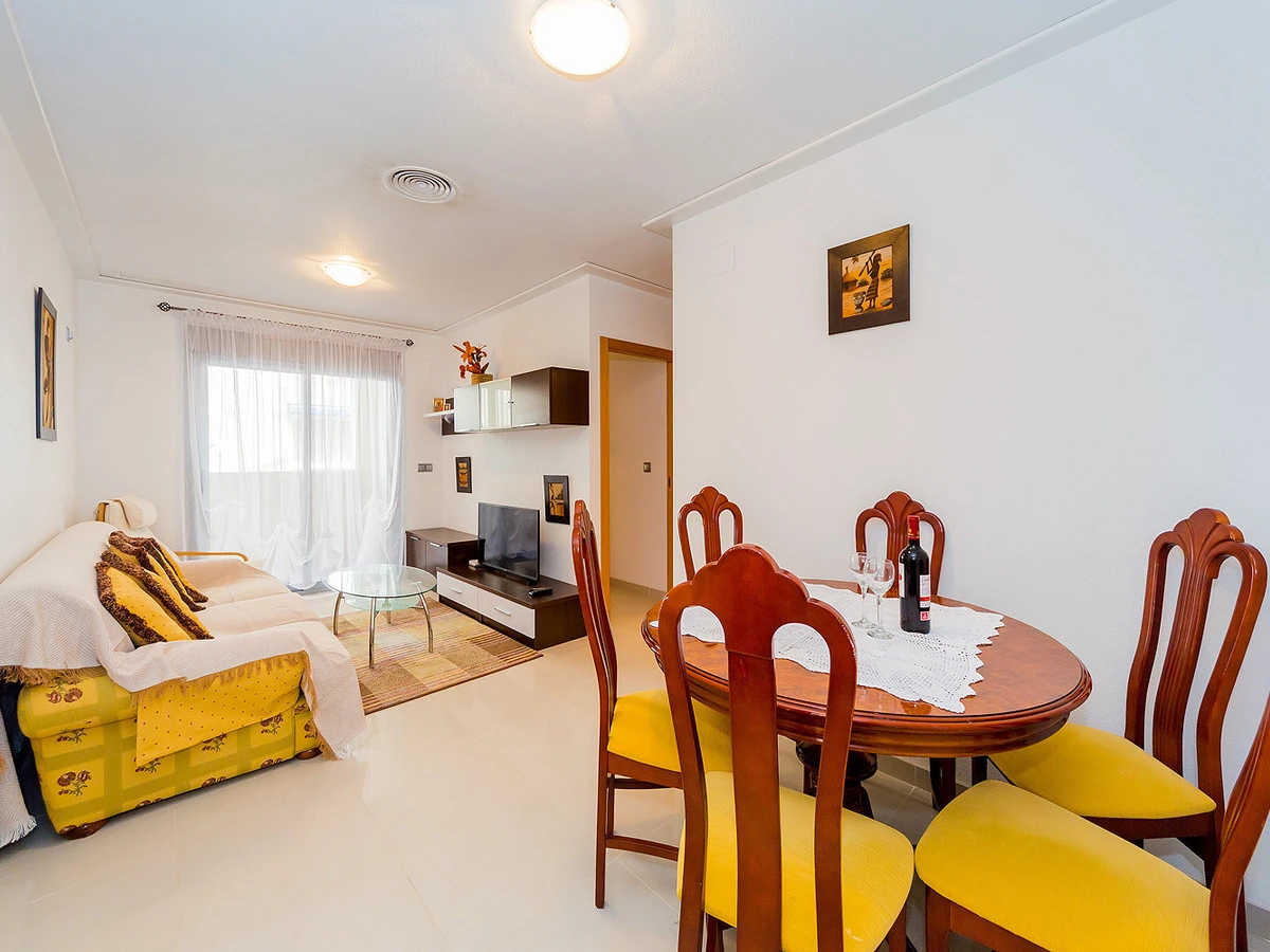 Nous proposons à la location un appartement confortable et lumineux de deux chambres dans un immeuble neuf à quelques pas de la mer et de la plage de La Mata. L'appartement a une superficie de 56 m2 et se compose d'un séjour, de deux chambres, d'une cuisine séparée, d'une salle de bain et d'un balcon. Il y a une petite cour pour sécher les vêtements. L'appartement dispose de tout ce dont vous avez besoin pour vivre et vous détendre : meubles, appareils électroménagers (dont un lave-vaisselle), vaisselle, linge de lit et serviettes. Climatisation centrale. Télévision espagnole. L'appartement est conçu pour 4 personnes. Il est permis de fumer uniquement sur le balcon! La région dispose d'infrastructures bien développées. La mer et la plage de La Mata sont à environ 300 mètres. Le supermarché le plus proche se trouve à environ 350 mètres. Il existe de nombreux bars et restaurants le long de la côte. Il est possible de louer un lit bébé et une chaise haute pour 20 euros par séjour.