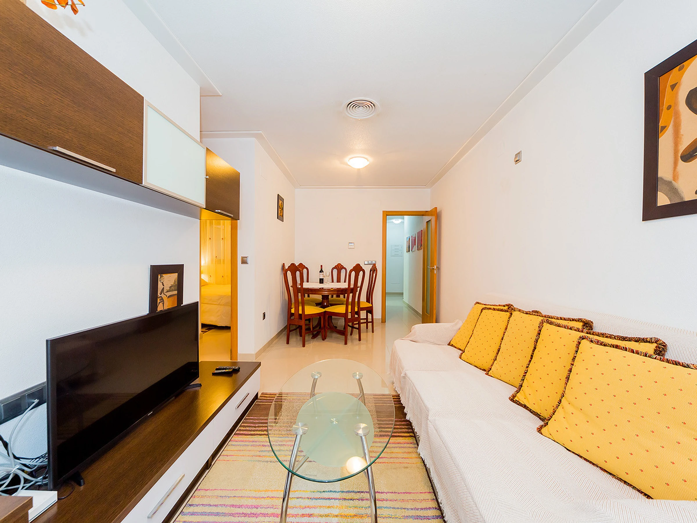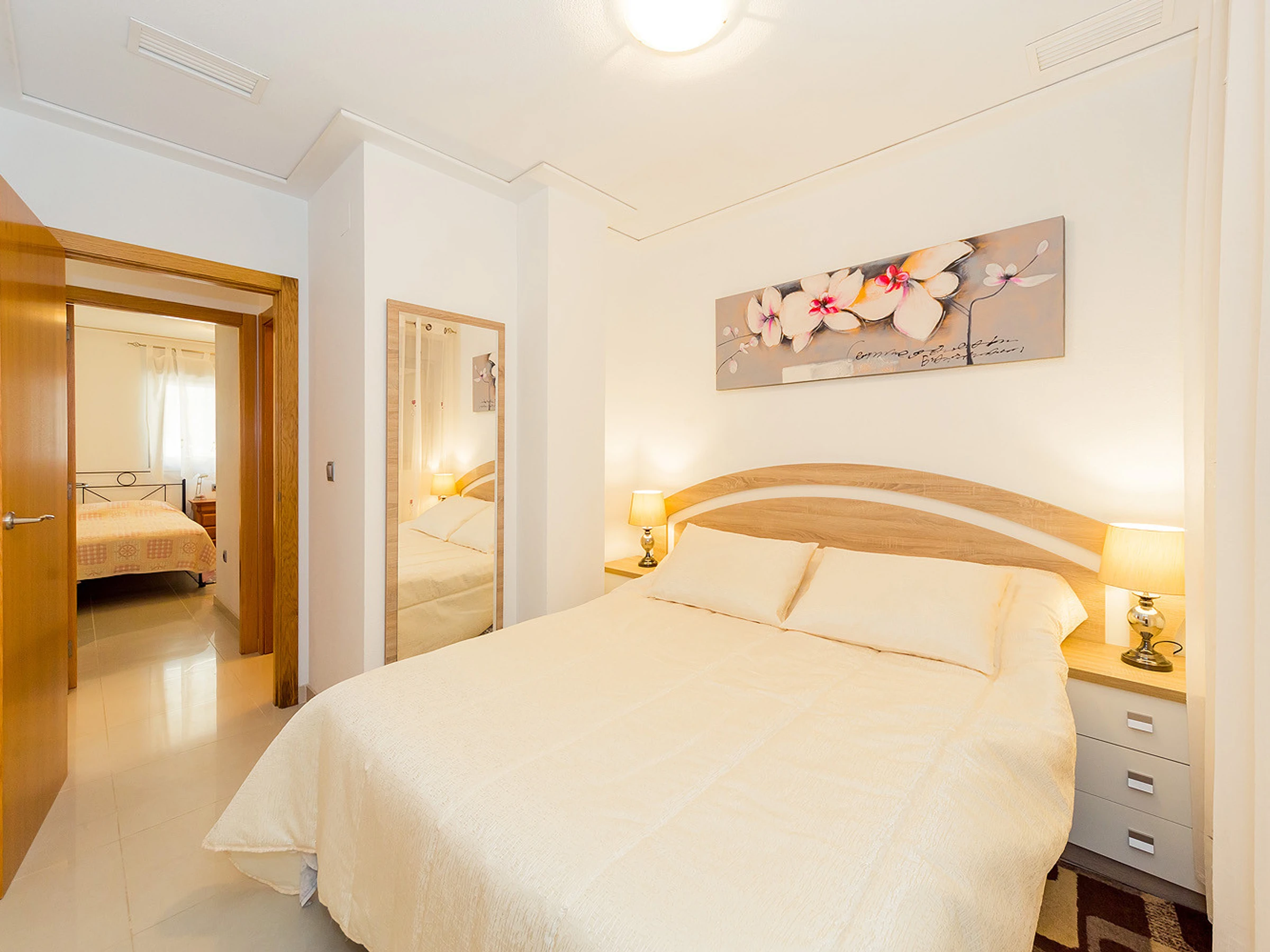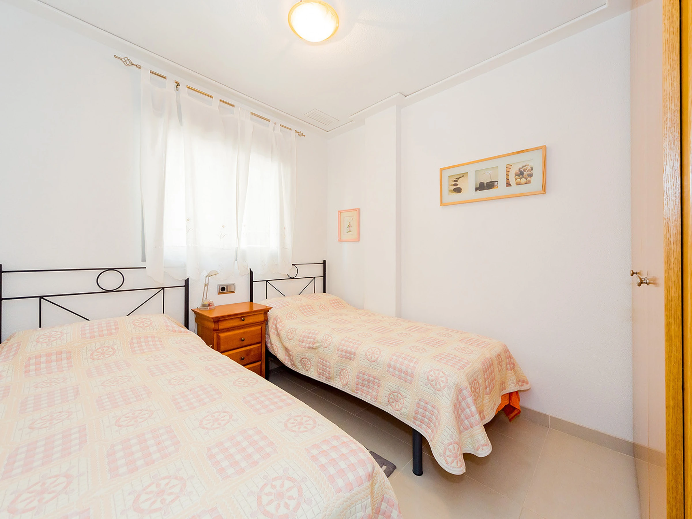 Nous proposons à la location un appartement confortable et lumineux de deux chambres dans un immeuble neuf à quelques pas de la mer et de la plage de La Mata. L'appartement a une superficie de 56 m2 et se compose d'un séjour, de deux chambres, d'une cuisine séparée, d'une salle de bain et d'un balcon. Il y a une petite cour pour sécher les vêtements. L'appartement dispose de tout ce dont vous avez besoin pour vivre et vous détendre : meubles, appareils électroménagers (dont un lave-vaisselle), vaisselle, linge de lit et serviettes. Climatisation centrale. Télévision espagnole. L'appartement est conçu pour 4 personnes. Il est permis de fumer uniquement sur le balcon! La région dispose d'infrastructures bien développées. La mer et la plage de La Mata sont à environ 300 mètres. Le supermarché le plus proche se trouve à environ 350 mètres. Il existe de nombreux bars et restaurants le long de la côte. Il est possible de louer un lit bébé et une chaise haute pour 20 euros par séjour.