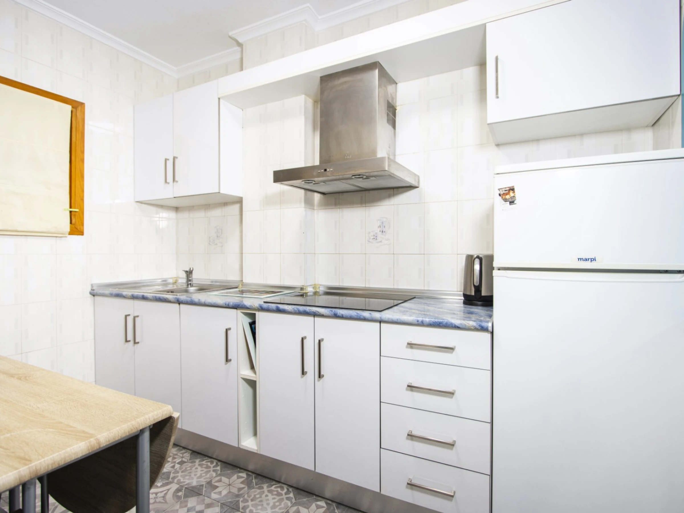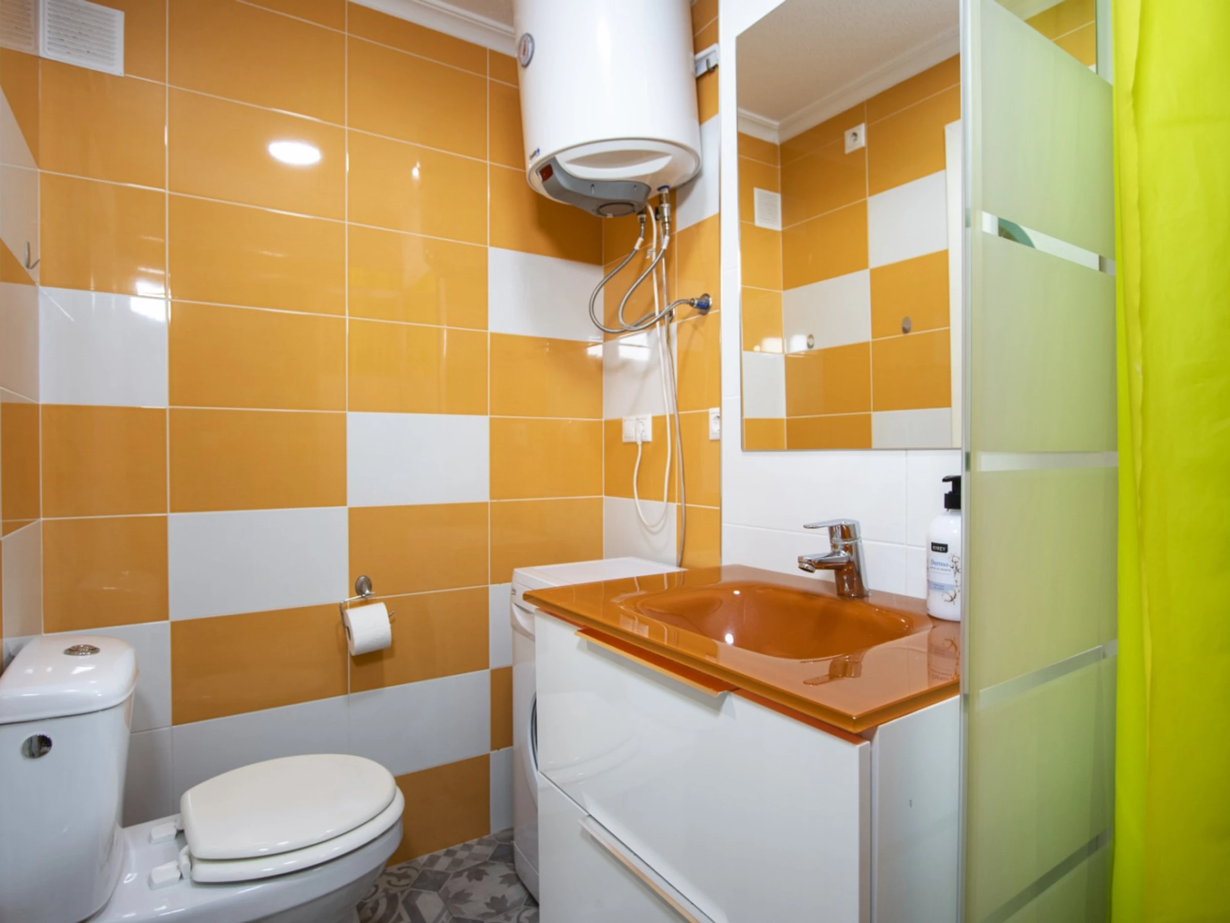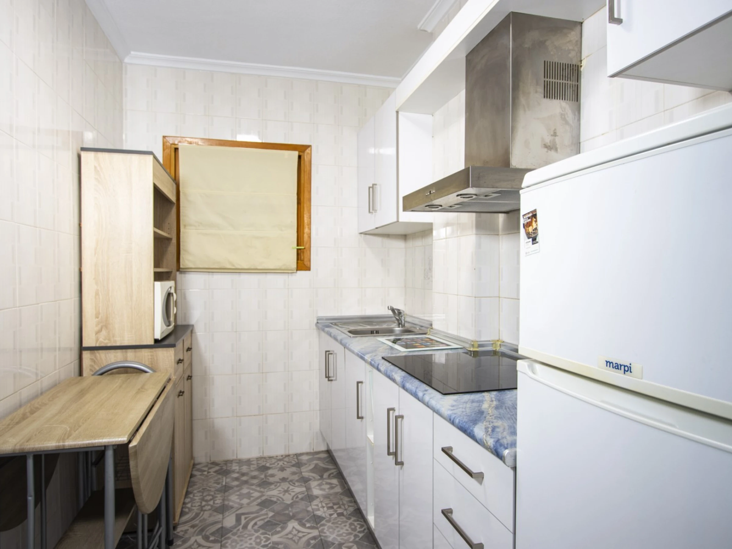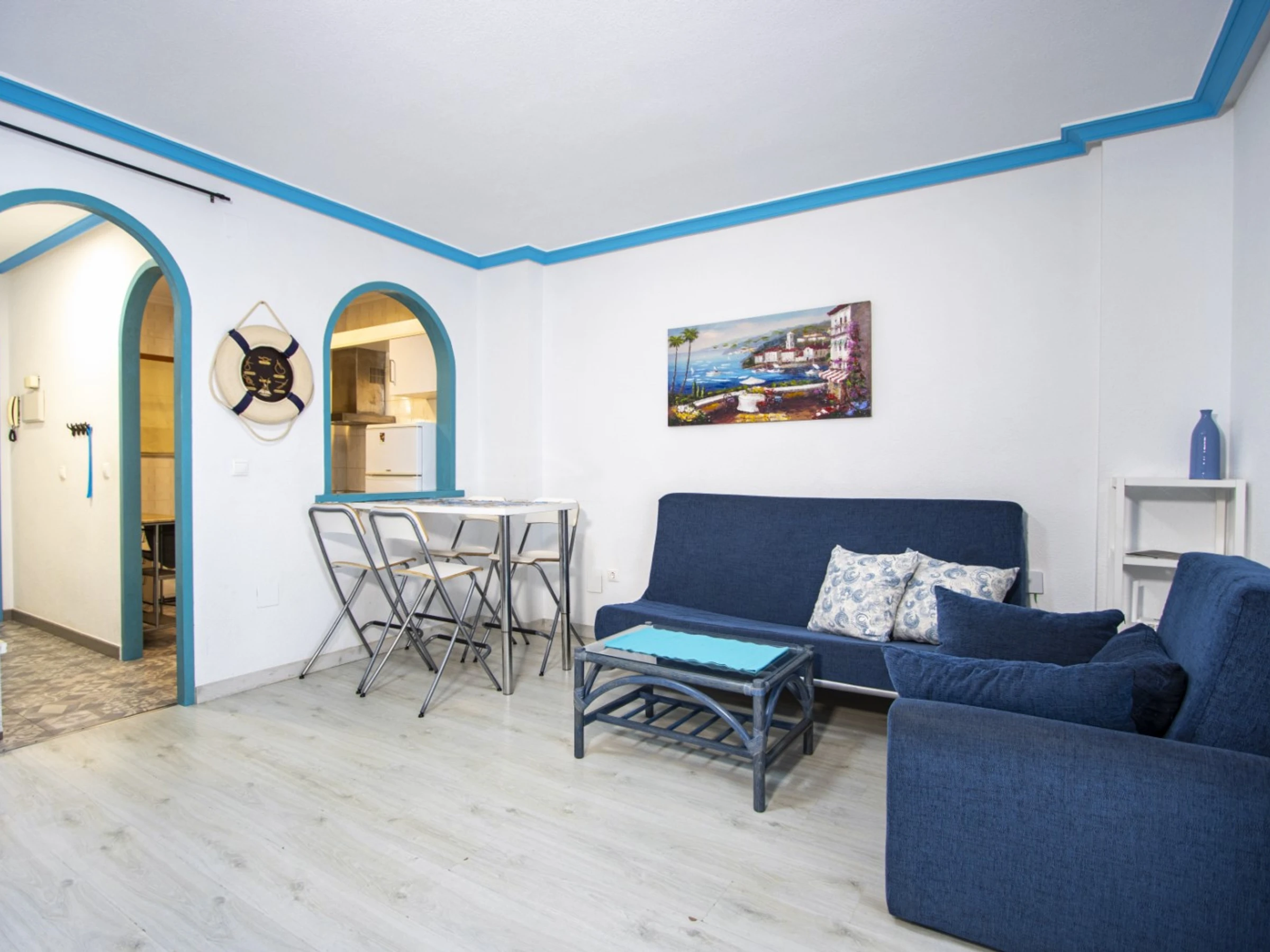 Un studio cosy à louer dans un immeuble avec piscine ! La superficie de l'appartement est de 47 m2 et se compose d'un salon, d'une salle de bain, d'une cuisine à la française et d'un balcon vitré donnant sur la piscine. Il y a tout le nécessaire pour vivre et se détendre : meubles neufs, appareils électroménagers, vaisselle, linge de lit et serviettes. Le salon est équipé de la climatisation et de la télévision espagnole. Le prix de la location de sept jours ou plus comprend Internet (moins de sept jours - 20 euros). Il y a du mobilier d'été sur le balcon. Dans la cour de la maison se trouve une grande piscine avec son propre territoire.