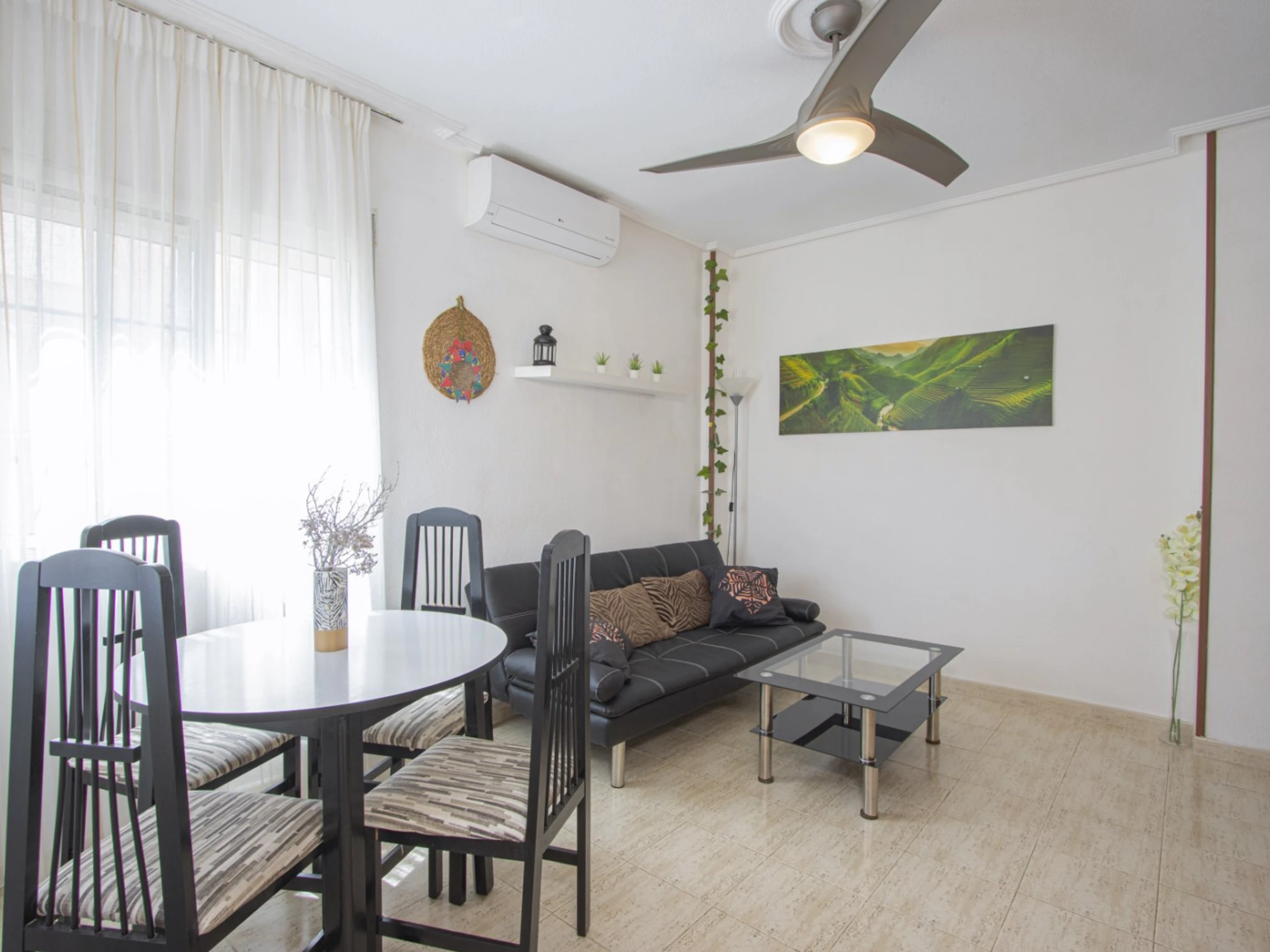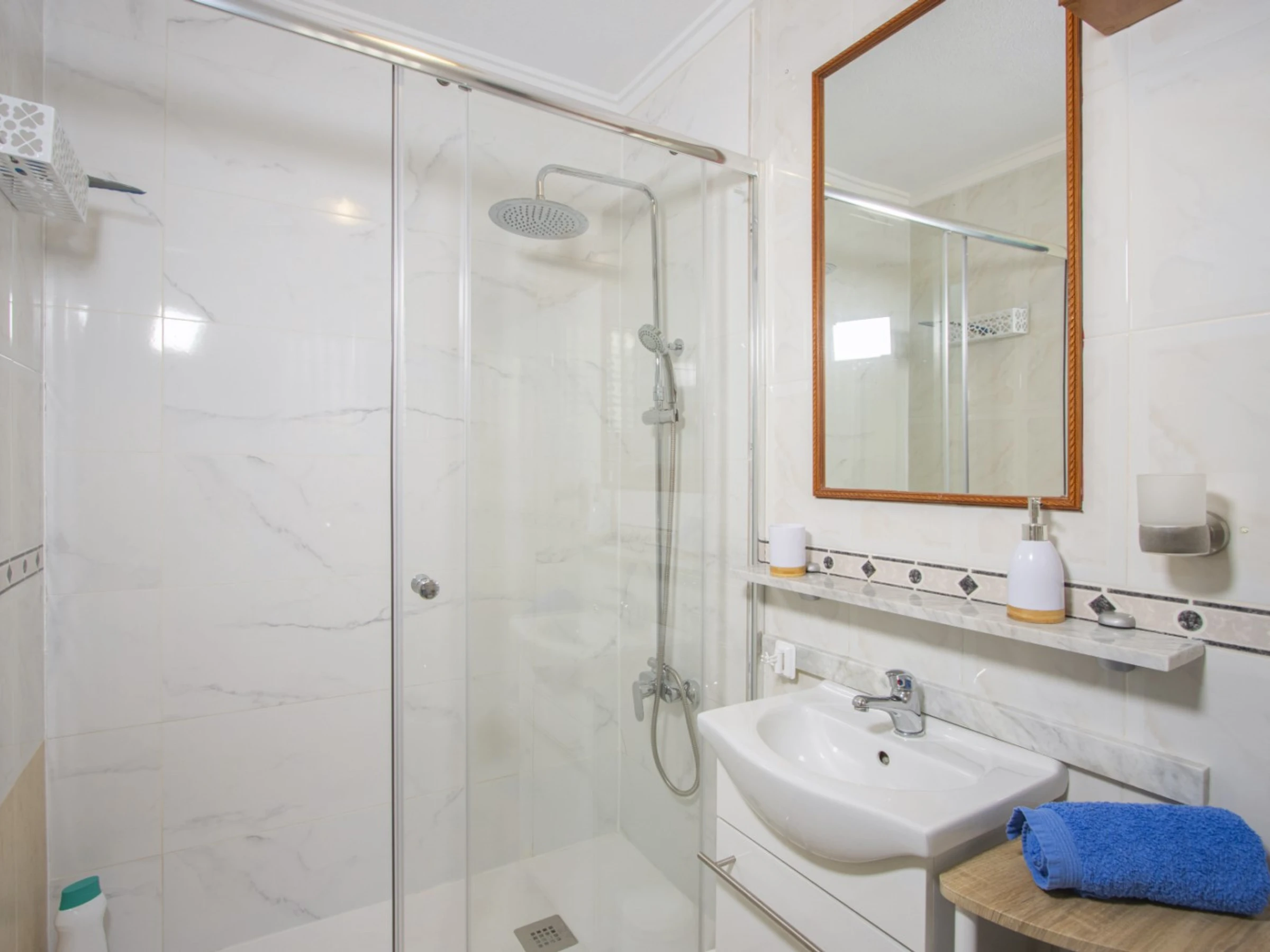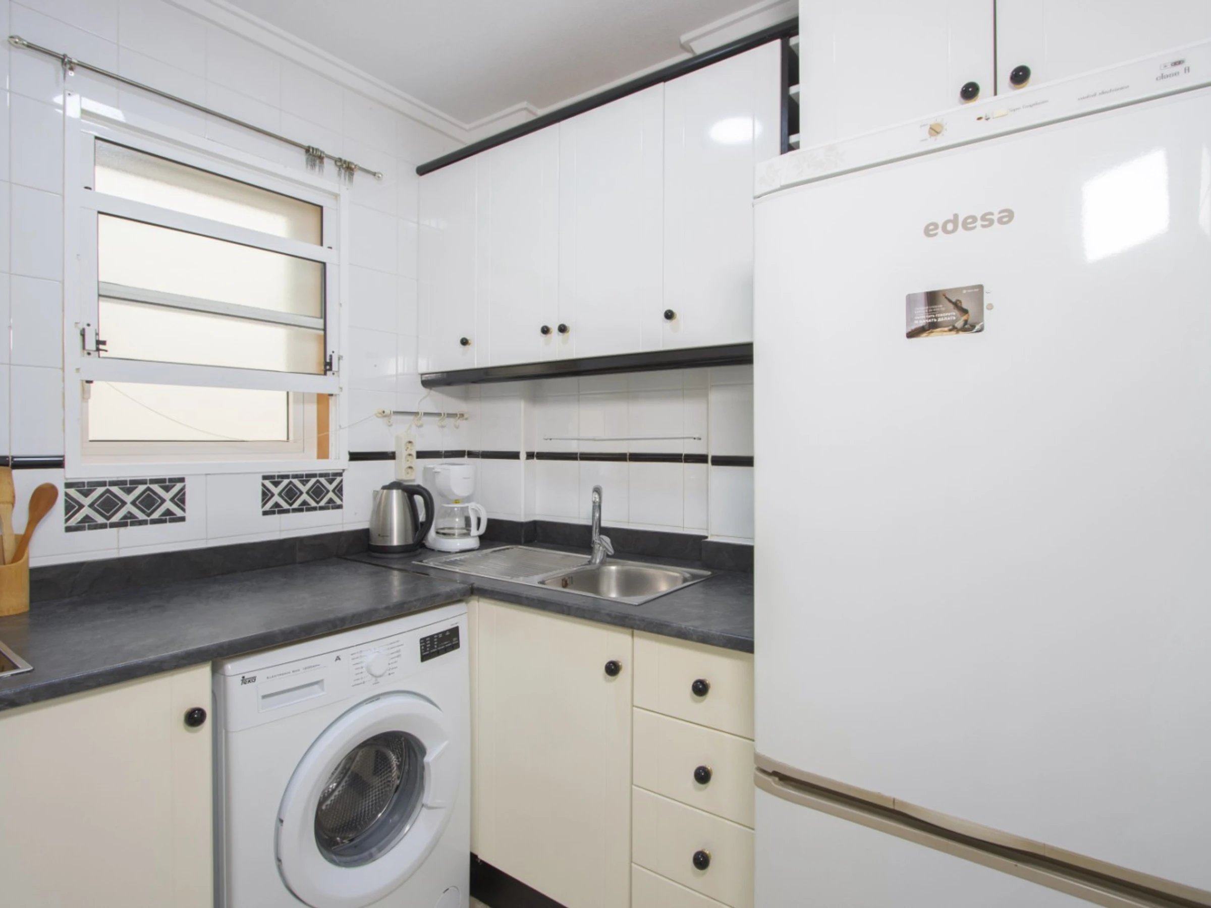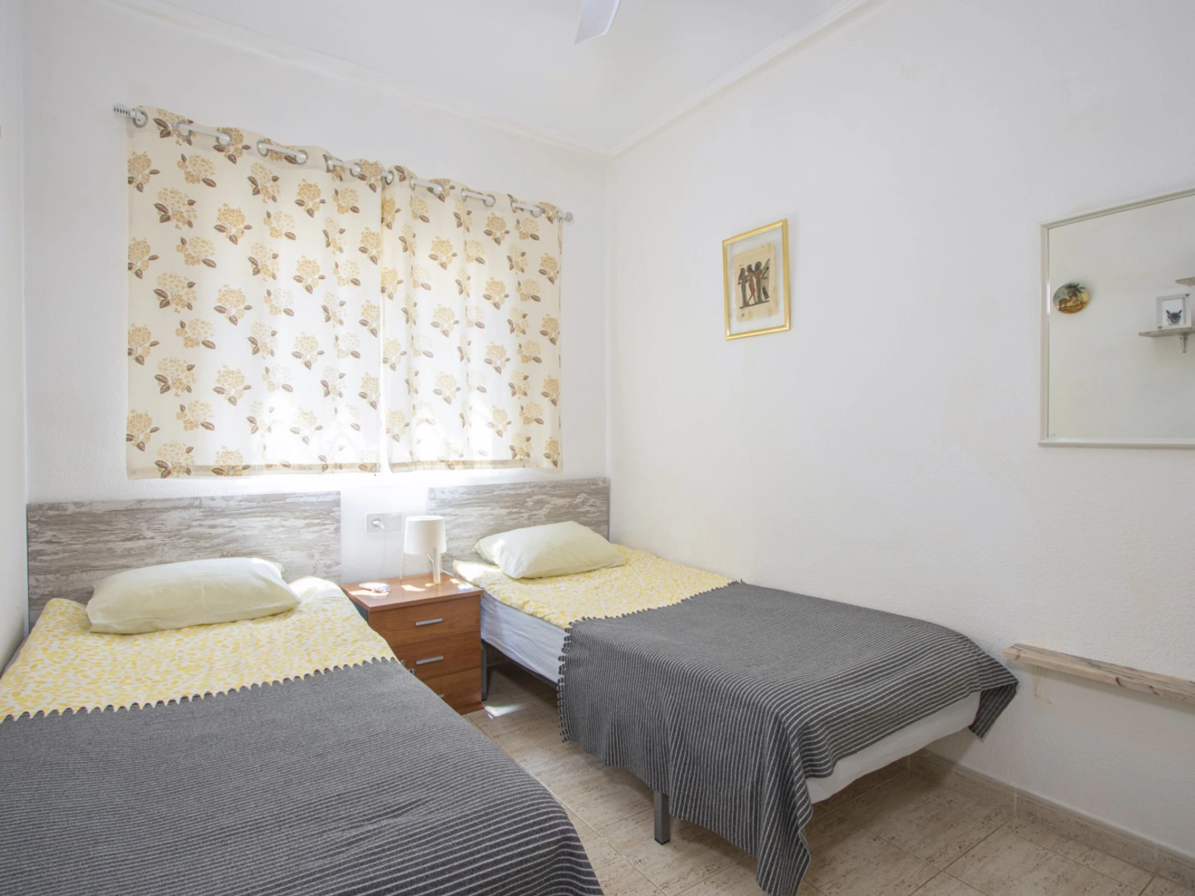 Nous proposons à la location un bungalow dans une urbanisation avec piscine dans le quartier d'Aguas Nuevas près de La Mata. L'appartement a une superficie de 42 m2 et se compose d'un séjour, de deux chambres, d'une cuisine séparée, d'une salle de bain et d'une terrasse vitrée. Les appartements disposent de tout ce dont vous avez besoin pour vivre et vous détendre : meubles, appareils électroménagers (dont une cafetière), vaisselle, linge de lit et serviettes. Télévision espagnole. La climatisation est installée dans le salon. La région dispose d'infrastructures bien développées. La chaîne de supermarchés Mercadona se trouve à environ 350 mètres. Il y a aussi des bars et des cafés. La mer est à environ 1 km, la plage de La Mata est à environ 1,5 km. Possibilité d'hébergement – jusqu'à 4 personnes (pas d'animaux). Il est strictement interdit de fumer à l’intérieur ! La location d'un lit bébé et d'une chaise haute coûte 20 euros par séjour.