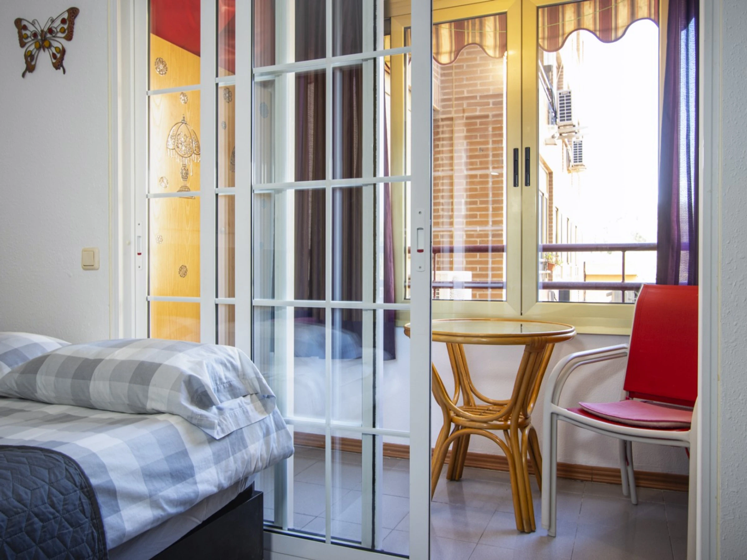 L'appartement d'une superficie de 34 m2 se compose d'un séjour, d'une cuisine américaine, d'une salle de bain et d'un balcon vitré, ce qui augmente avec succès la superficie du studio. Il y a tout le nécessaire pour vivre et se détendre : meubles, appareils électroménagers, vaisselle, linge de lit et serviettes. Il y a une télévision avec chaînes espagnoles. Le studio est équipé de la climatisation. Le quartier dispose d'une infrastructure bien développée : il y a de nombreux restaurants et cafés, de petits commerces et une pharmacie à proximité. Il y a un supermarché DIAL PRIX à distance de marche. Il y a un parc en face de la maison, un peu plus loin - un parc pour enfants et le Jardin des Nations, apprécié des citadins. La mer et la plage de Los Naufragos ne sont qu'à 300 mètres ! Option hébergement - deux personnes (pas d'animaux !). Il est interdit de fumer dans l'appartement !