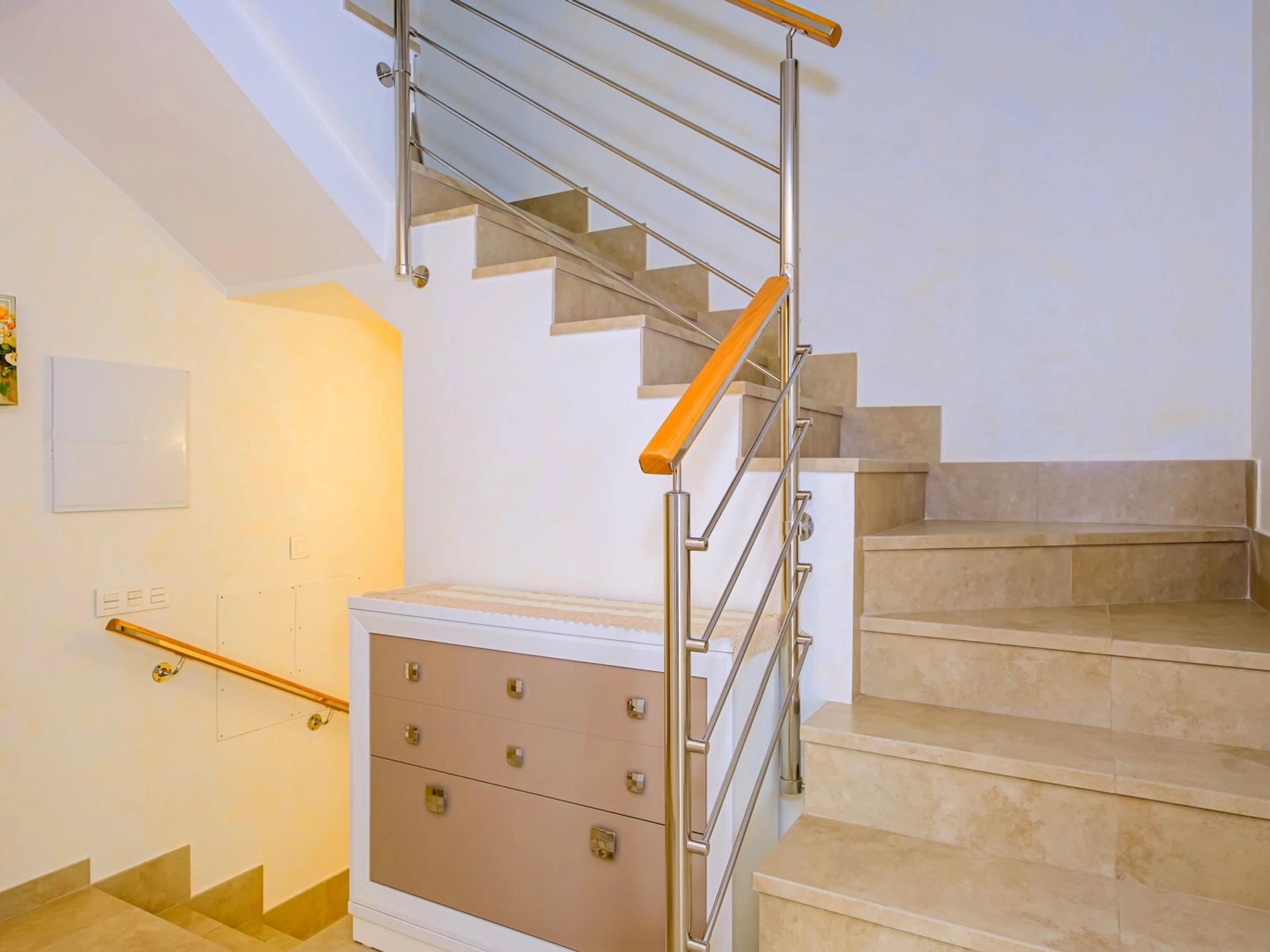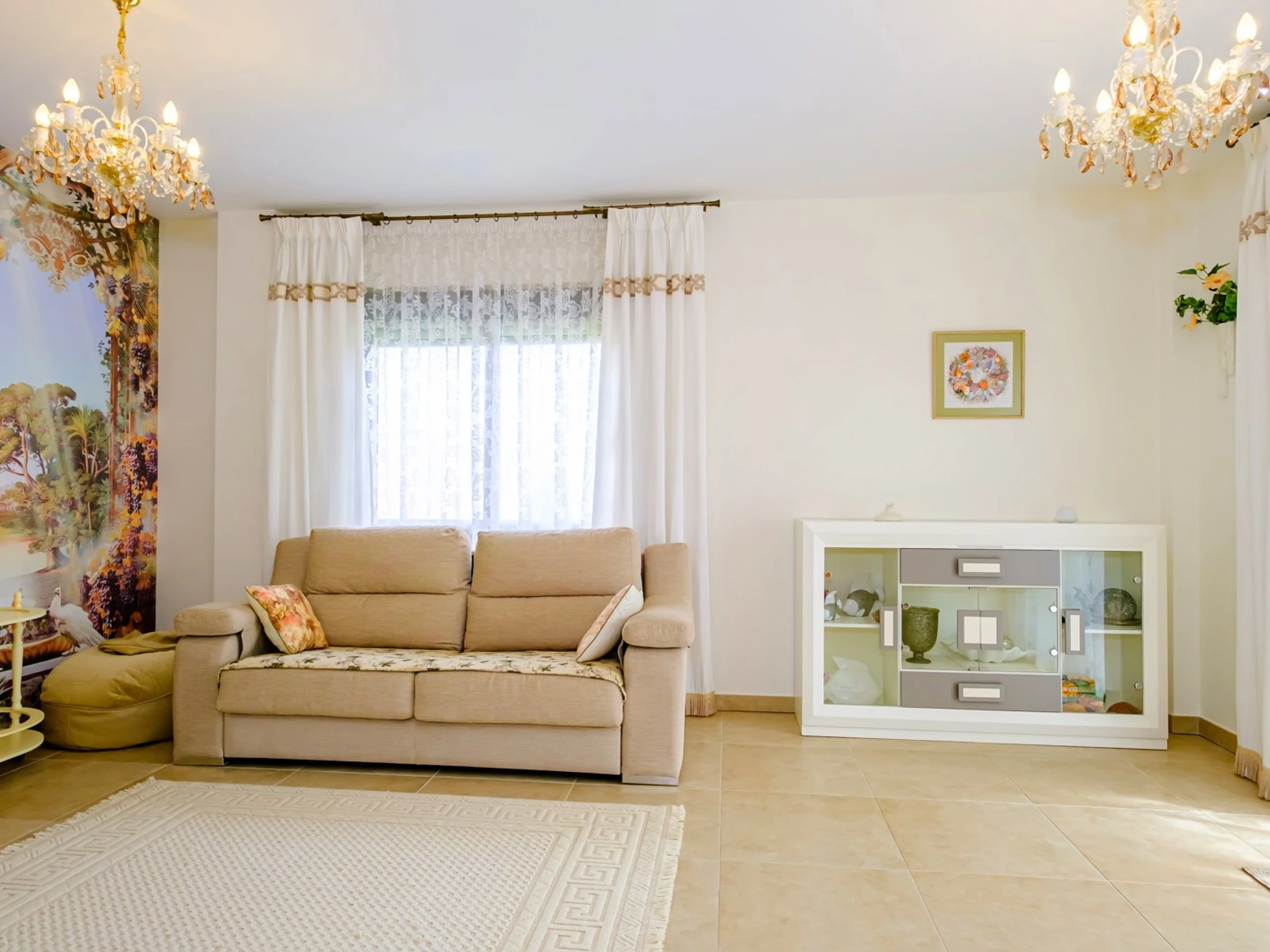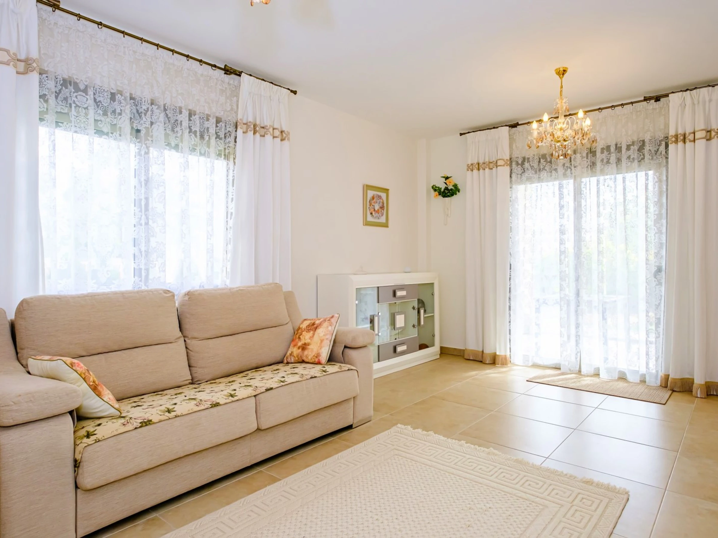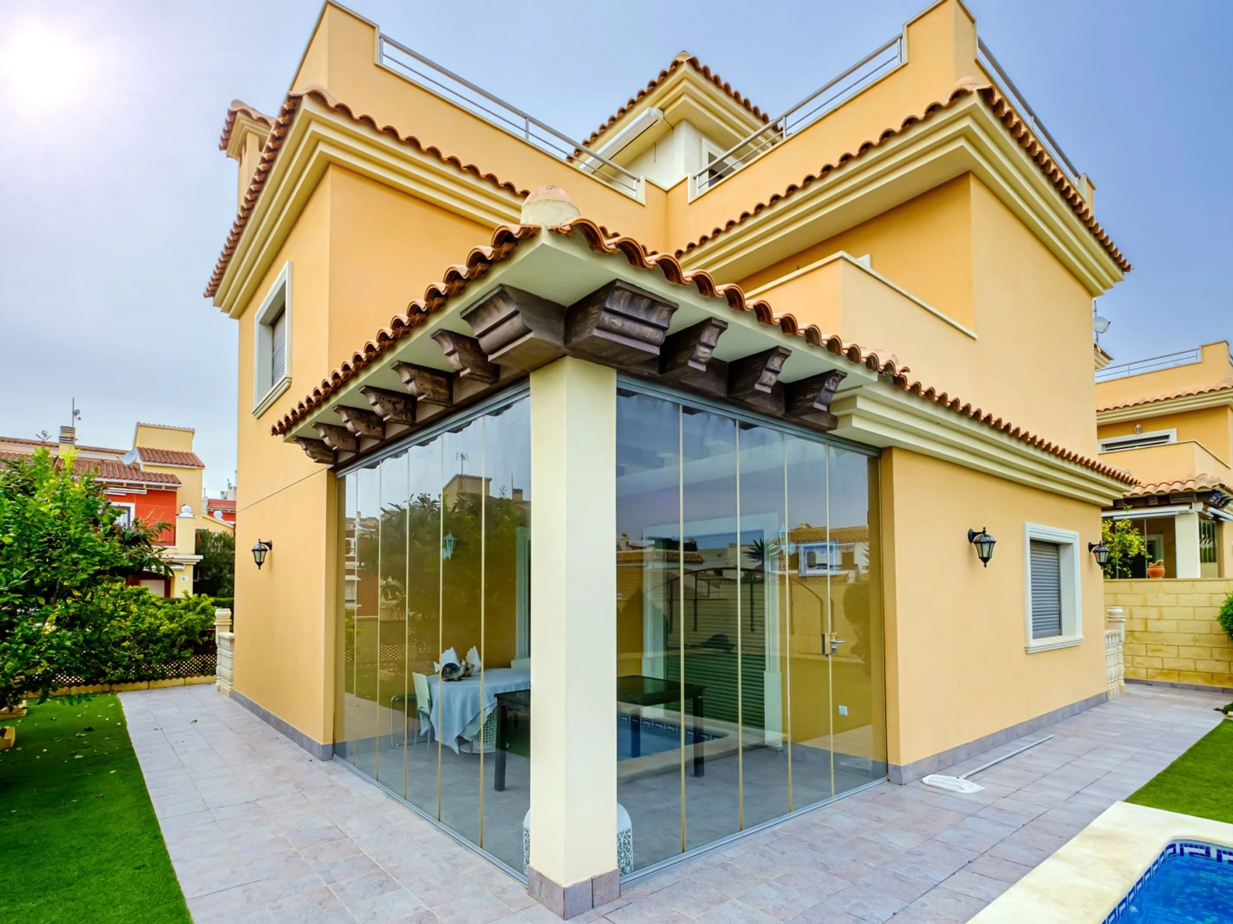 Nous proposons à la location touristique une villa de deux étages avec une piscine et un grand espace vert à 400 mètres de la mer. La villa se compose de deux salons, trois chambres, une cuisine séparée, trois salles de bain, une terrasse vitrée, un balcon, deux solariums. La maison a tout ce dont vous avez besoin pour vivre et vous divertir : meubles, appareils électroménagers (y compris une cafetière), vaisselle, draps et serviettes. Climatisation centrale, TV espagnole, Internet sans fil. Le quartier dispose d'une infrastructure bien développée : à 200 mètres se trouve le supermarché "Consum", le café le plus proche est à 50 mètres. La mer est à 400 mètres, mais la plage de Los Locos elle-même est à environ 650 mètres. Possibilité d'hébergement - jusqu'à 7 personnes (pas d'animaux !). Fumer n'est autorisé que dans les espaces ouverts!