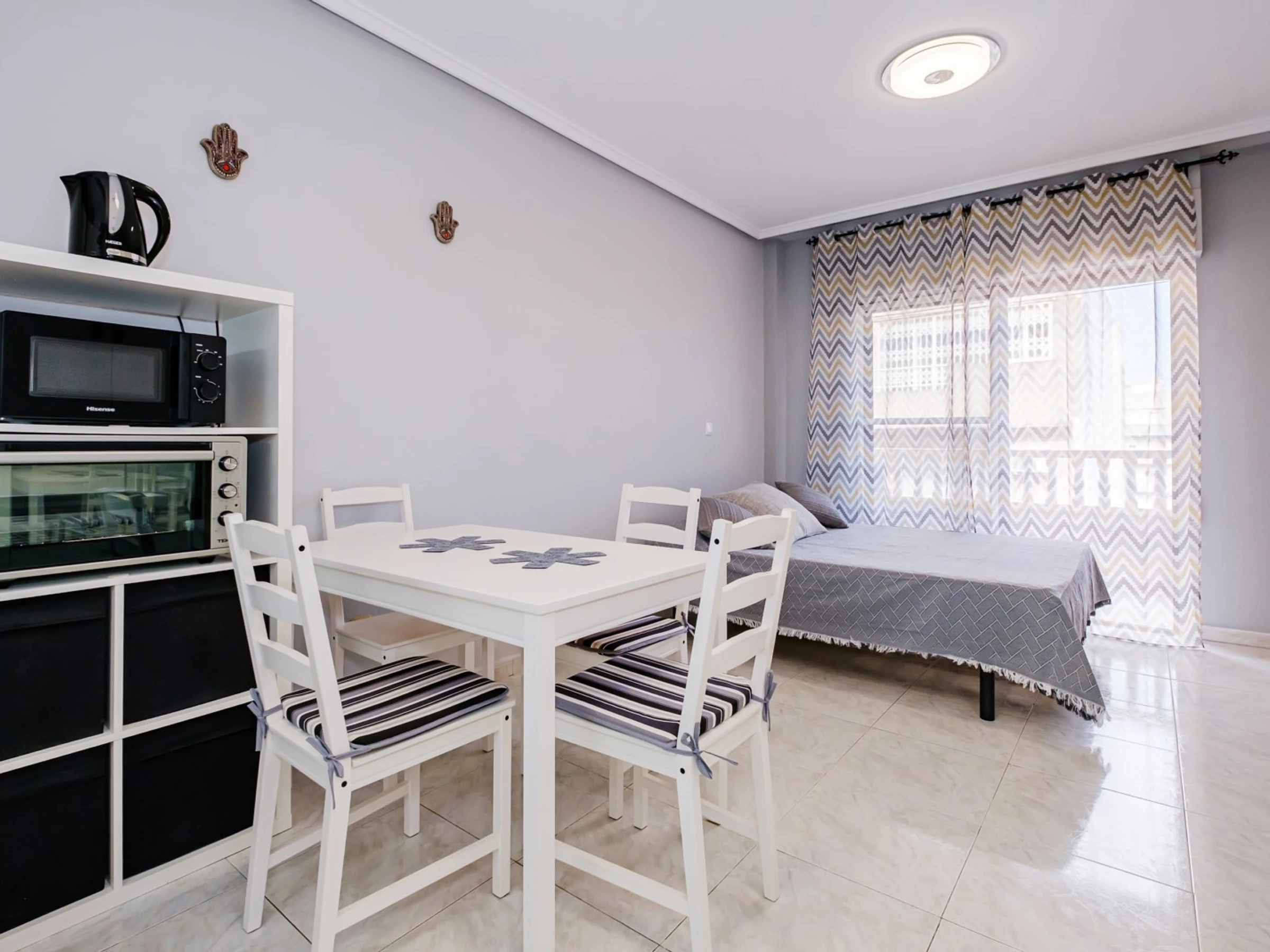 Nous vous proposons à la location un studio cosy et lumineux en plein centre-ville ! L'appartement de 36 m2 se compose d'un salon combiné avec une cuisine, une salle de bain et un balcon. Il y a tout ce dont vous avez besoin pour vivre et vous divertir : meubles, appareils électroménagers, vaisselle, draps et serviettes. Climatisation installée. TV espagnol, Internet sans fil. La région dispose d'une infrastructure bien développée. Le supermarché du réseau "ALDI" est situé à 250 mètres, "Consum" à 350 mètres. Le bar le plus proche est à moins de 50 mètres ! À la mer et à la plage d'Acequion à un peu plus d'un kilomètre, à la plage de Del Cura à environ un kilomètre et demi. Formule hébergement - 2 personnes (pas d'animaux !). Fumer n'est autorisé que sur le balcon !