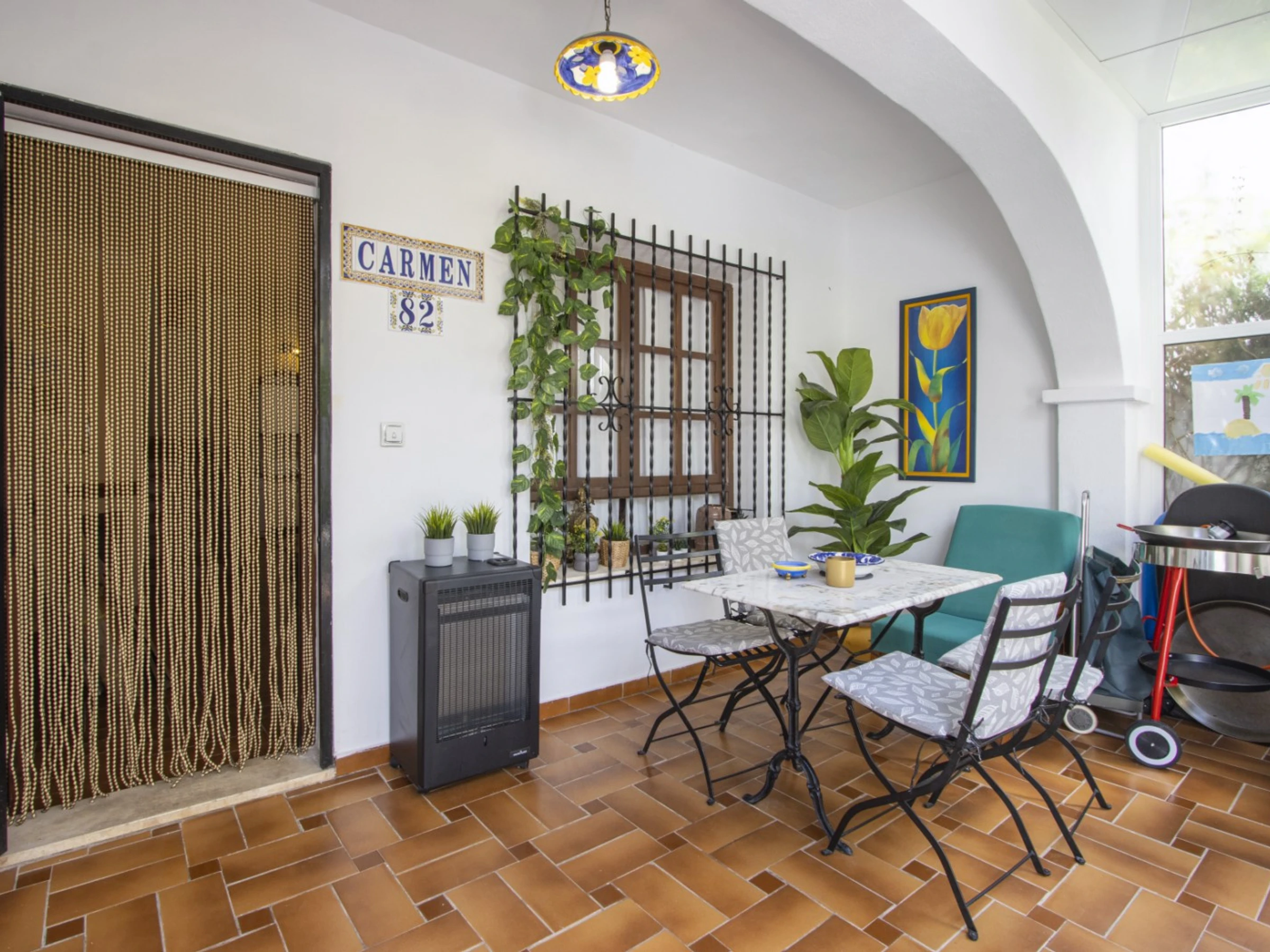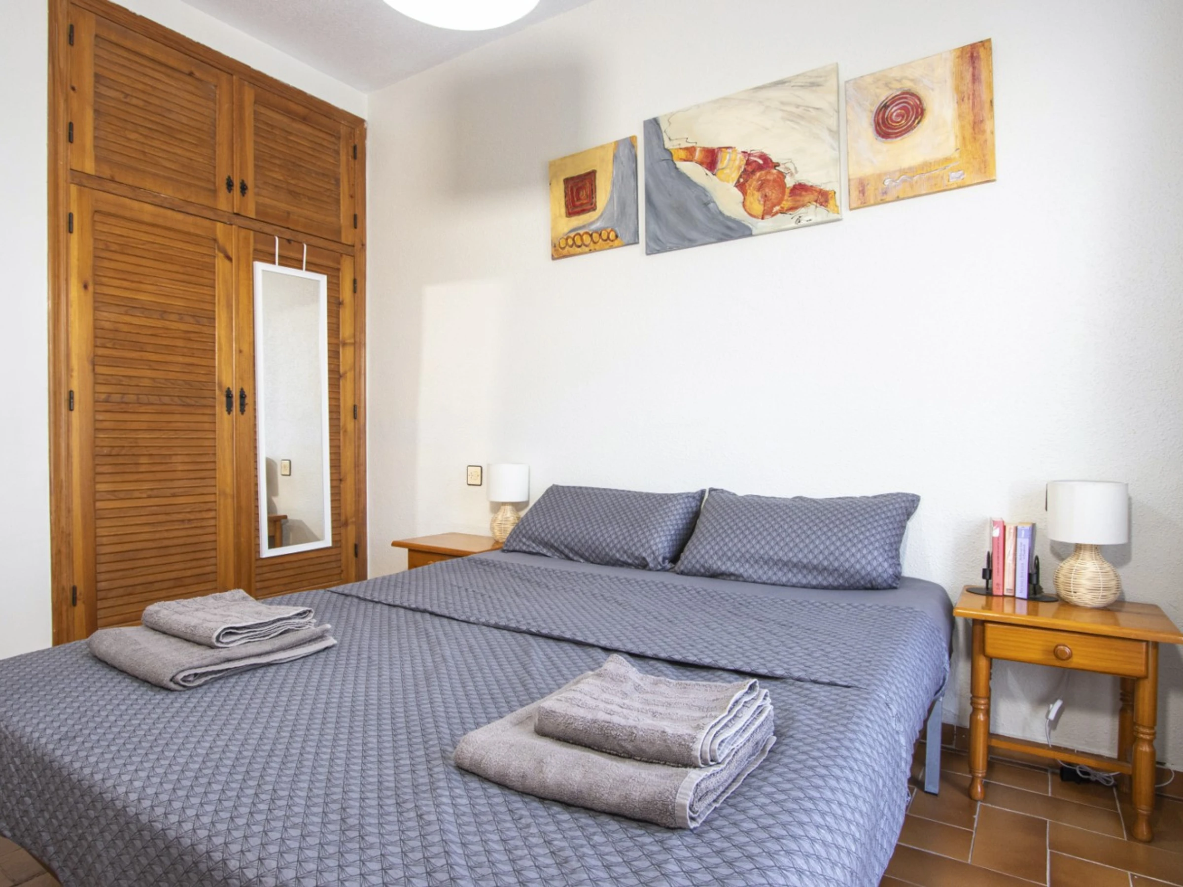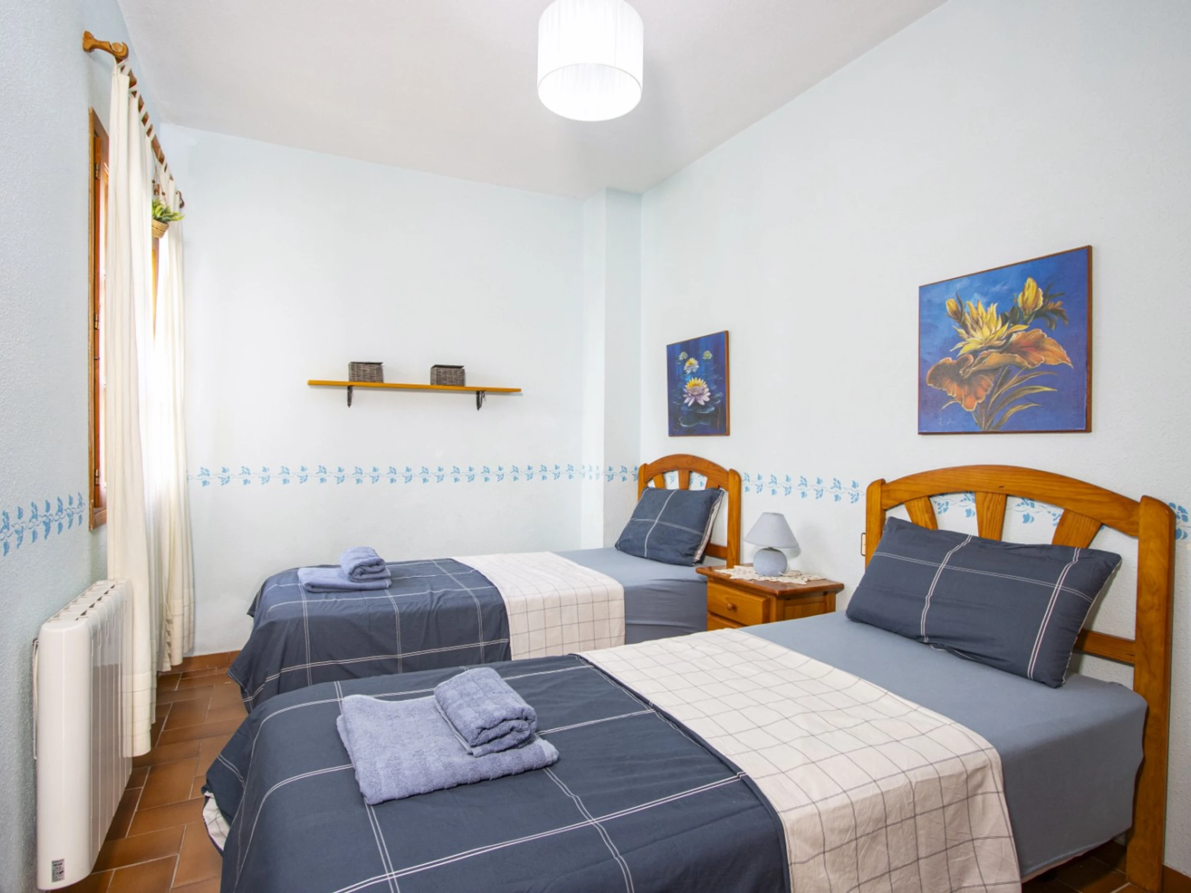 Nous proposons à la location touristique un duplex dans une urbanisation avec piscine et son propre espace vert. L'appartement a une superficie de 87 mètres et se compose d'un séjour avec une véritable cheminée, d'une cuisine à la française et de toilettes à l'étage inférieur, de deux chambres et d'une salle de bain avec baignoire à l'étage supérieur. Il y a aussi un solarium privé avec mobilier de jardin et une terrasse vitrée. Il y a tout ce dont vous avez besoin pour vivre et vous détendre : meubles, électroménager (dont une cafetière et un lave-vaisselle), vaisselle, linge de lit et serviettes. La climatisation est installée dans le salon. Télévision espagnole, Internet sans fil. La région dispose d'infrastructures bien développées. Le supermarché Mercadona se trouve à environ 500 mètres. Il y a aussi des cafés et des bars. La mer et la plage de La Mata sont à environ 1,5 km. Possibilité d'hébergement – jusqu'à 4 personnes (pas d'animaux !). Il est permis de fumer uniquement dans le solarium !