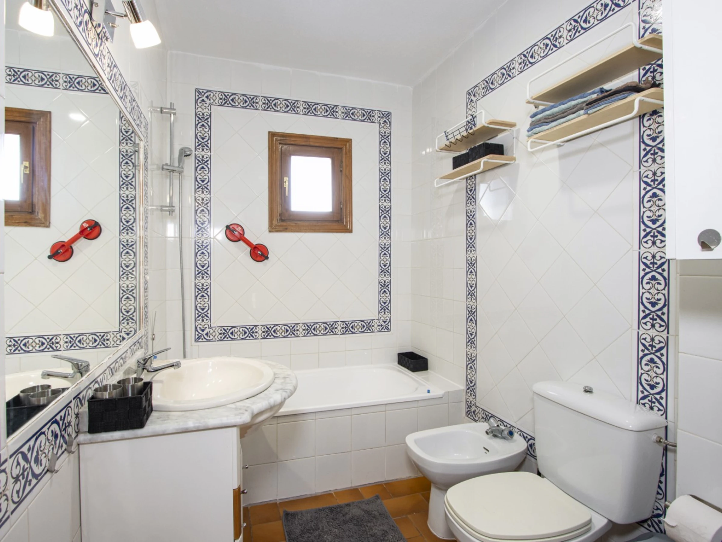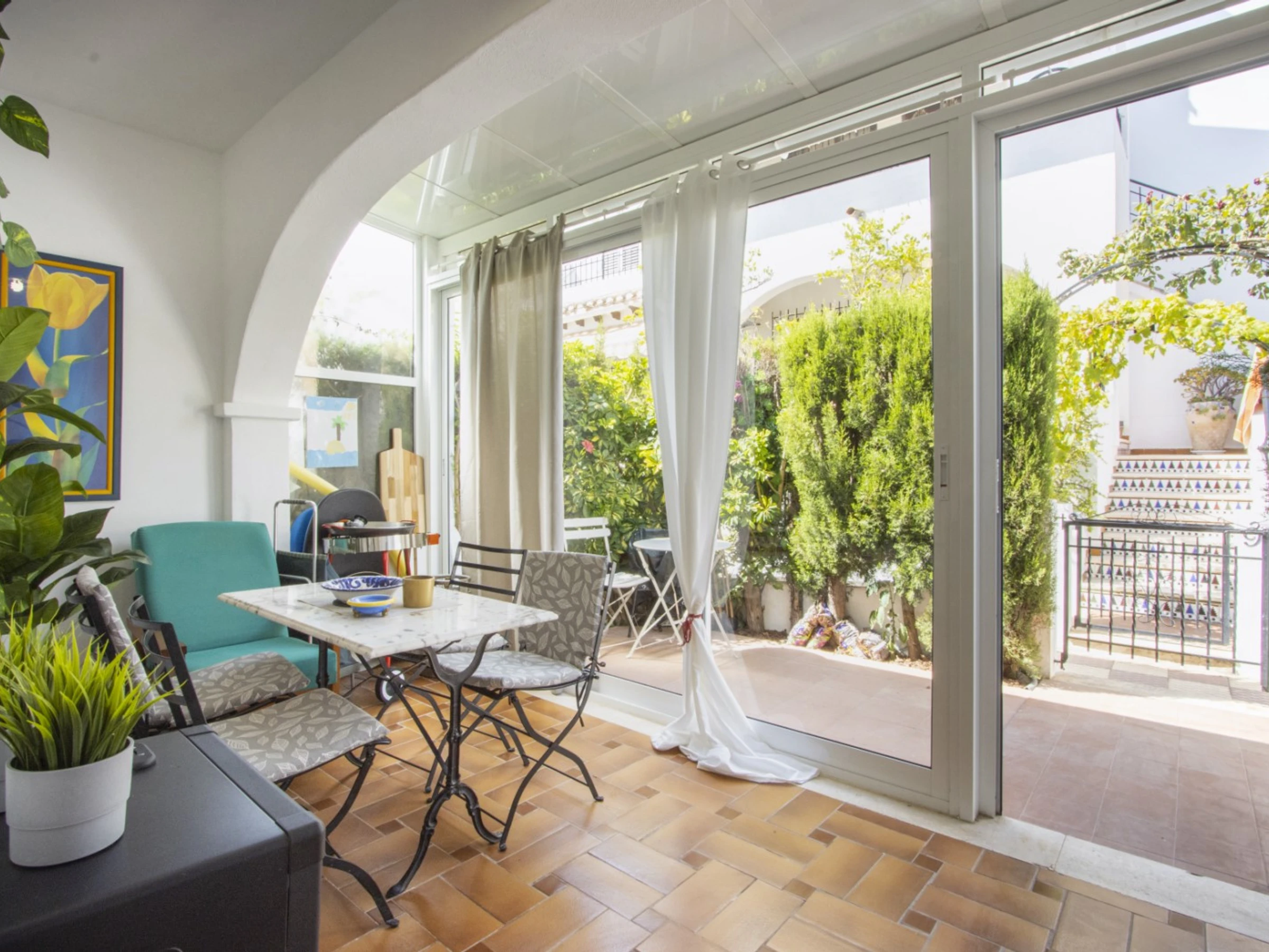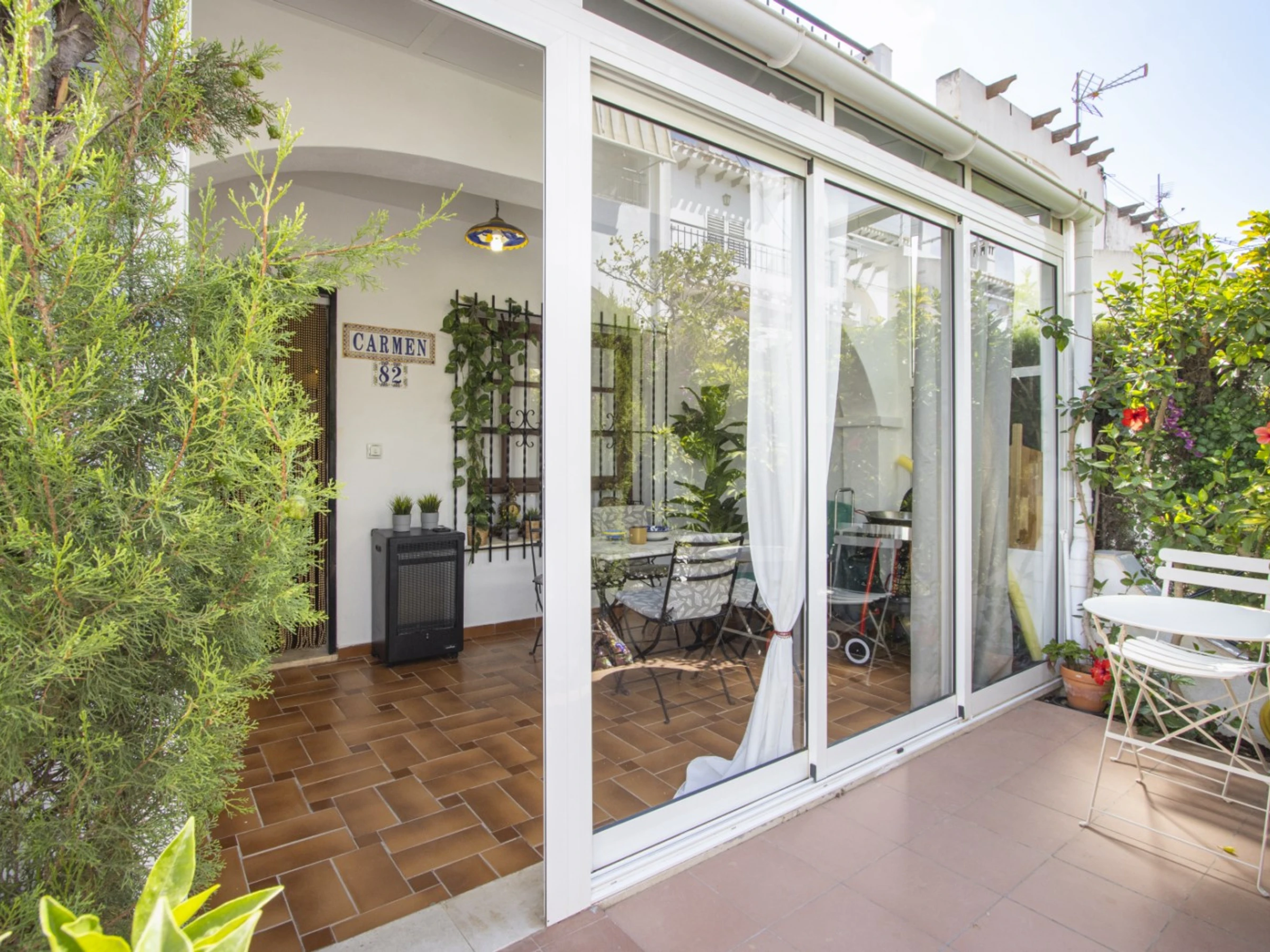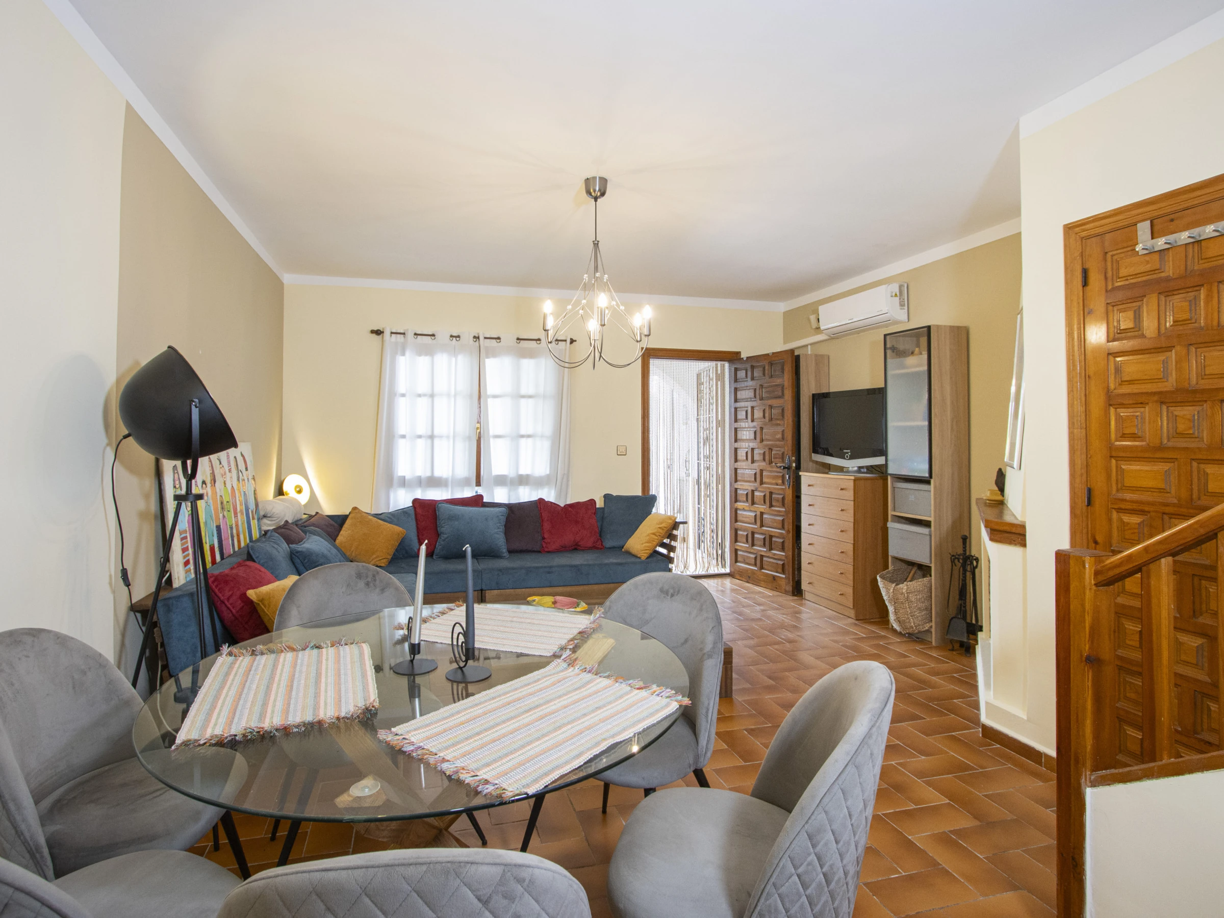 Nous proposons à la location touristique un duplex dans une urbanisation avec piscine et son propre espace vert. L'appartement a une superficie de 87 mètres et se compose d'un séjour avec une véritable cheminée, d'une cuisine à la française et de toilettes à l'étage inférieur, de deux chambres et d'une salle de bain avec baignoire à l'étage supérieur. Il y a aussi un solarium privé avec mobilier de jardin et une terrasse vitrée. Il y a tout ce dont vous avez besoin pour vivre et vous détendre : meubles, électroménager (dont une cafetière et un lave-vaisselle), vaisselle, linge de lit et serviettes. La climatisation est installée dans le salon. Télévision espagnole, Internet sans fil. La région dispose d'infrastructures bien développées. Le supermarché Mercadona se trouve à environ 500 mètres. Il y a aussi des cafés et des bars. La mer et la plage de La Mata sont à environ 1,5 km. Possibilité d'hébergement – jusqu'à 4 personnes (pas d'animaux !). Il est permis de fumer uniquement dans le solarium !