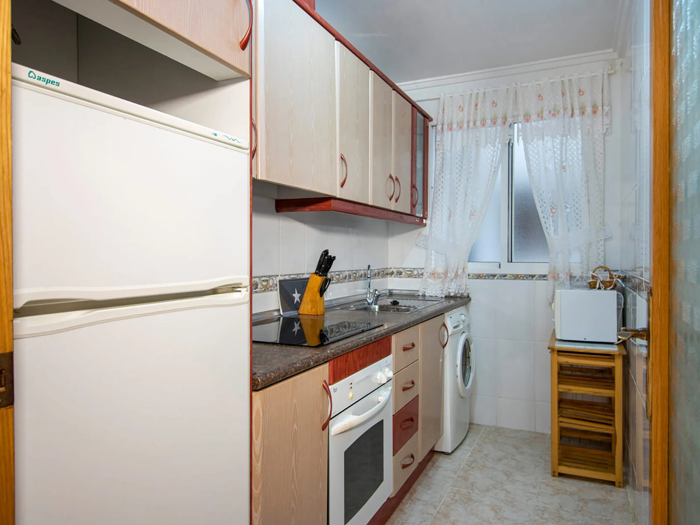 Nous proposons à la location touristique un appartement dans un quartier bien desservi, à quelques pas de la mer et de la célèbre plage de la ville. D'une superficie de 58 m², il comprend un salon, deux chambres, une cuisine française, une salle de bain et un balcon. Il dispose de tout le nécessaire pour vivre et se détendre : meubles, appareils électroménagers (dont une cafetière), vaisselle, linge de lit et serviettes. Le salon est climatisé, avec télévision espagnole et accès Internet sans fil. Le quartier bénéficie d'infrastructures performantes. Le supermarché « Consum » est à 150 mètres et la gare routière à 600 mètres. De nombreux bars et restaurants sont accessibles à pied. La mer et la plage Del Cura sont à 250 mètres. Possibilité d'hébergement : jusqu'à 4 personnes (animaux strictement interdits !). Fumer est autorisé uniquement sur le balcon ! En cas d'infraction, une amende de 200 euros est prévue.