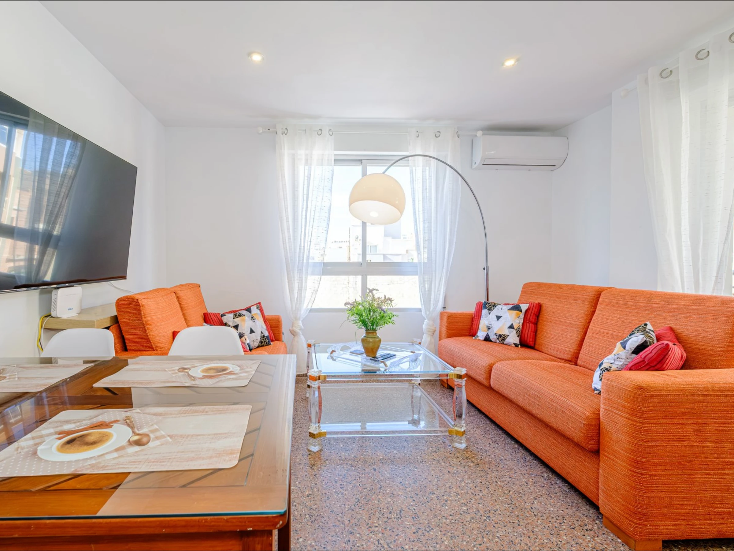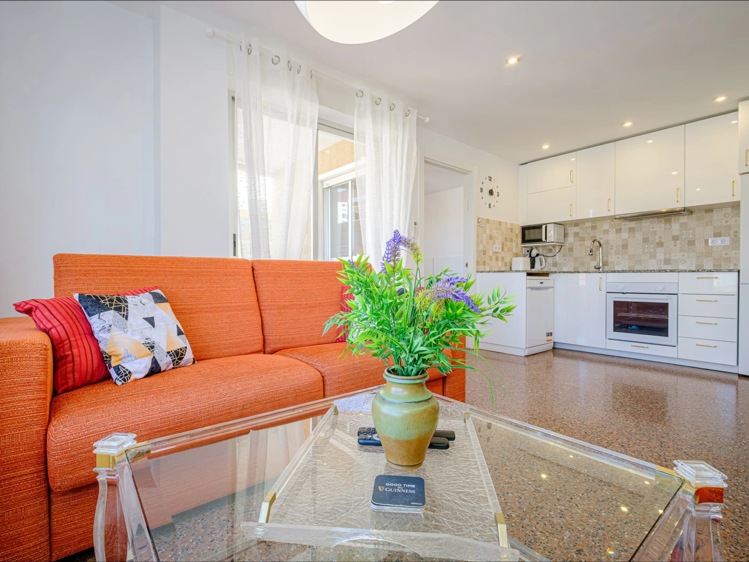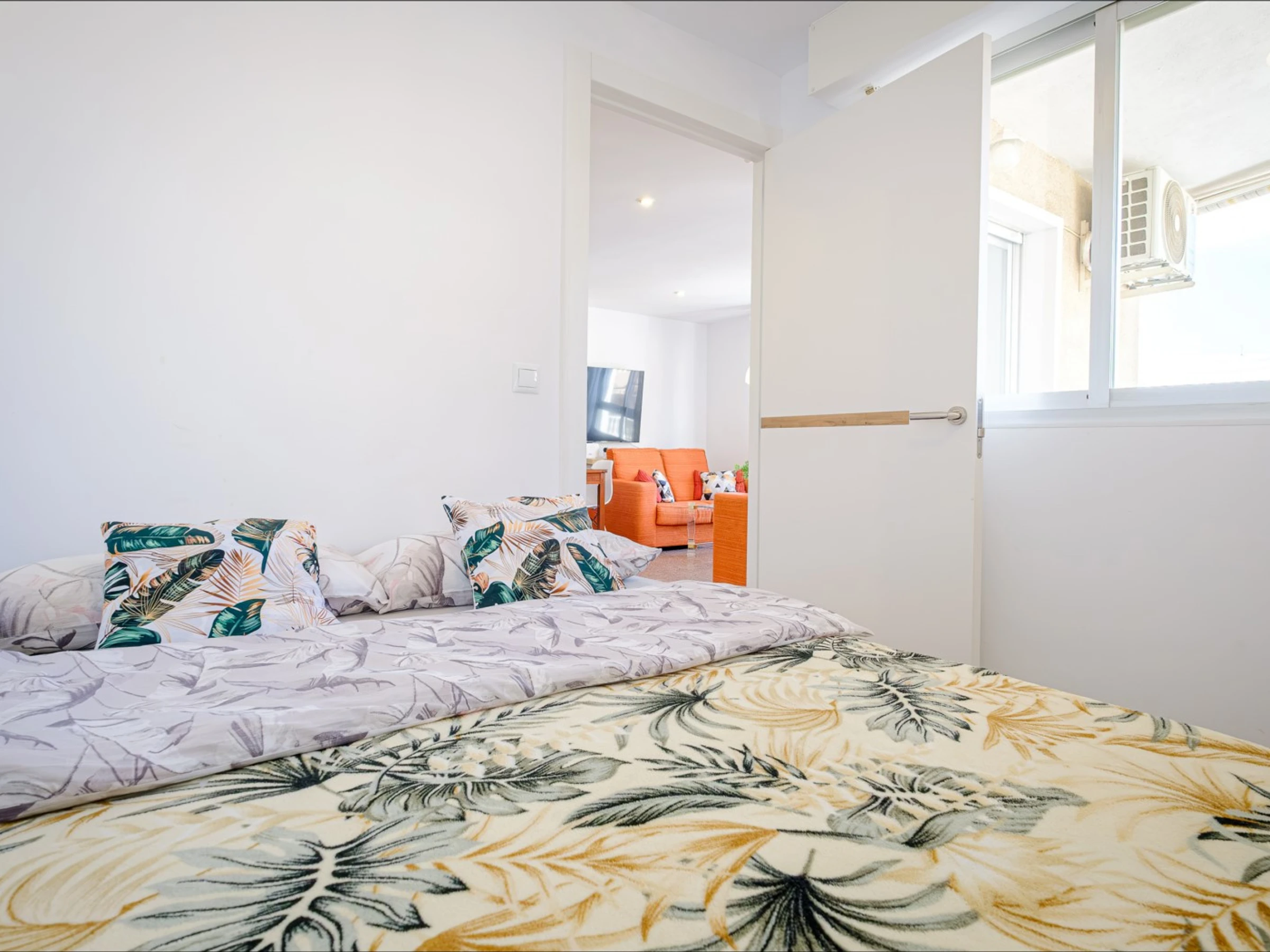 Un appartement spacieux est disponible à la location, situé à 300 mètres de la célèbre plage de Del Cura. D'une superficie de 98 m², cet appartement comprend un séjour, trois chambres, une cuisine américaine et deux salles de bains. Il est entièrement équipé pour un séjour confortable : mobilier, électroménager (dont cafetière et lave-vaisselle), linge de lit et serviettes. Vous y trouverez également la télévision espagnole et une connexion Wi-Fi. La climatisation est disponible uniquement dans le séjour. Deux des trois chambres sont équipées de ventilateurs de plafond. L'appartement peut accueillir jusqu'à cinq personnes (animaux non admis). Son emplacement idéal vous permettra de profiter à la fois de vacances à la plage, entre baignade et farniente au soleil, et de flâner dans les rues animées de la ville, bordées de bars et de cafés. Un grand supermarché Manper (à 300 mètres), la gare routière et la rue principale, Ramon Gayud, avec ses restaurants (le plus proche à 100 mètres), ses commerces et ses boutiques, sont tous accessibles à pied. Il est permis de fumer uniquement sur le balcon. Toute infraction sera passible d'une amende de 200 €.
