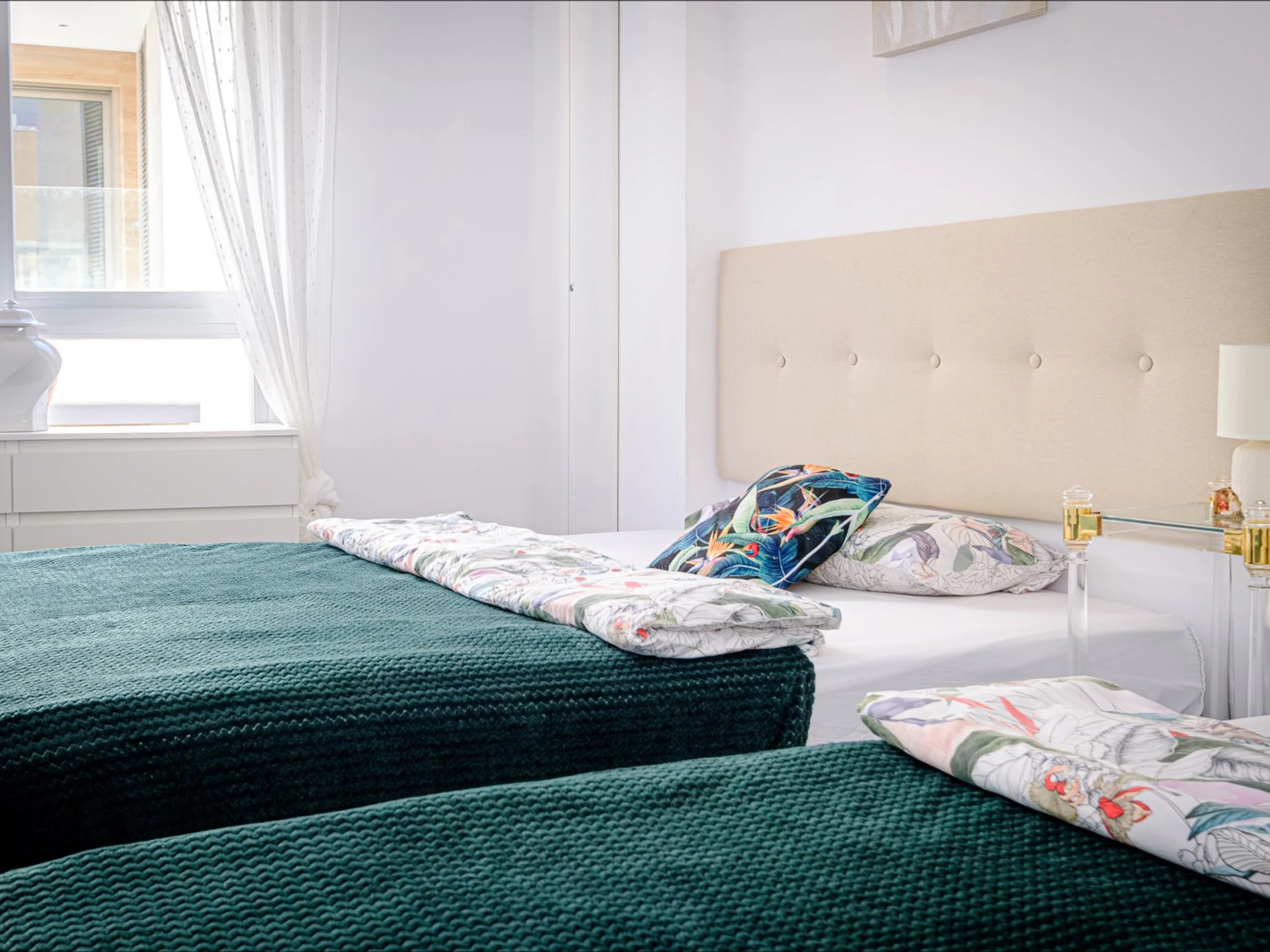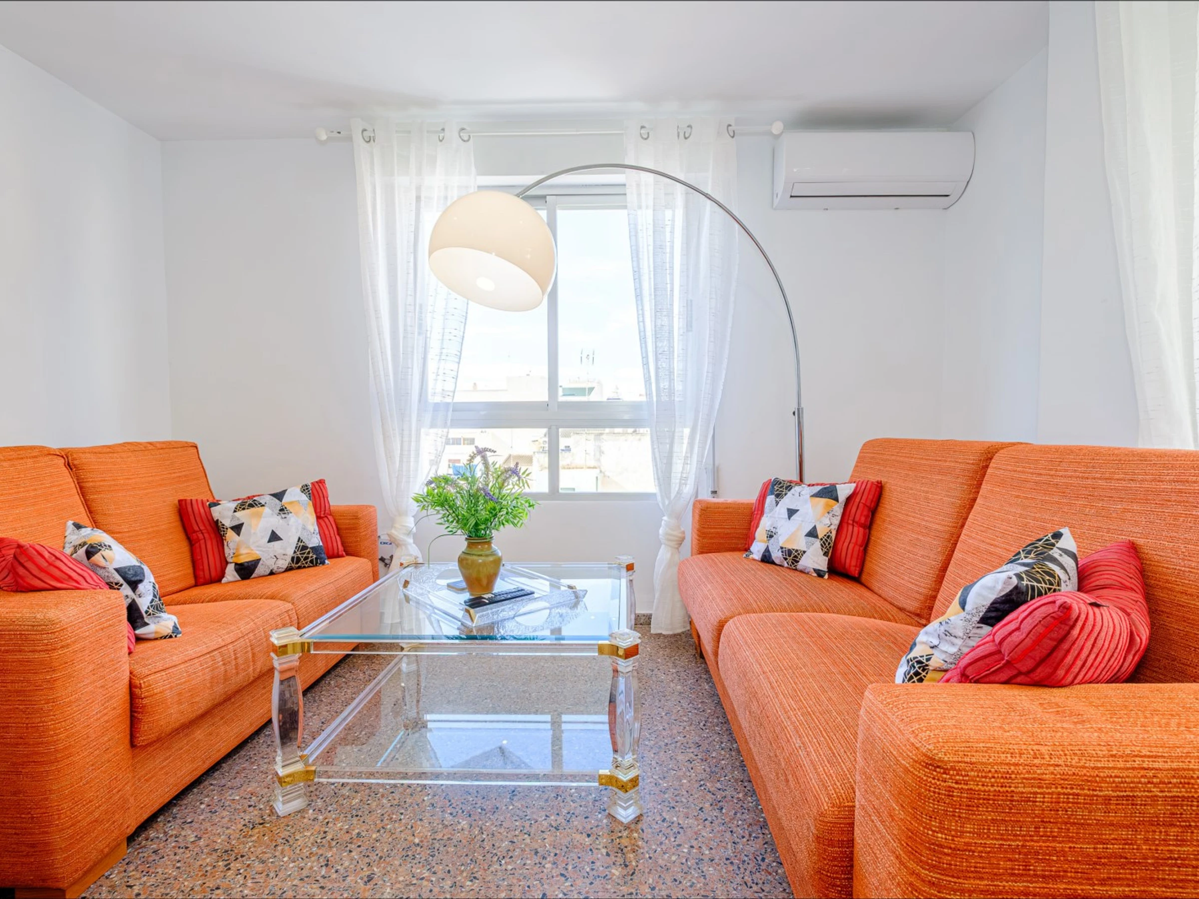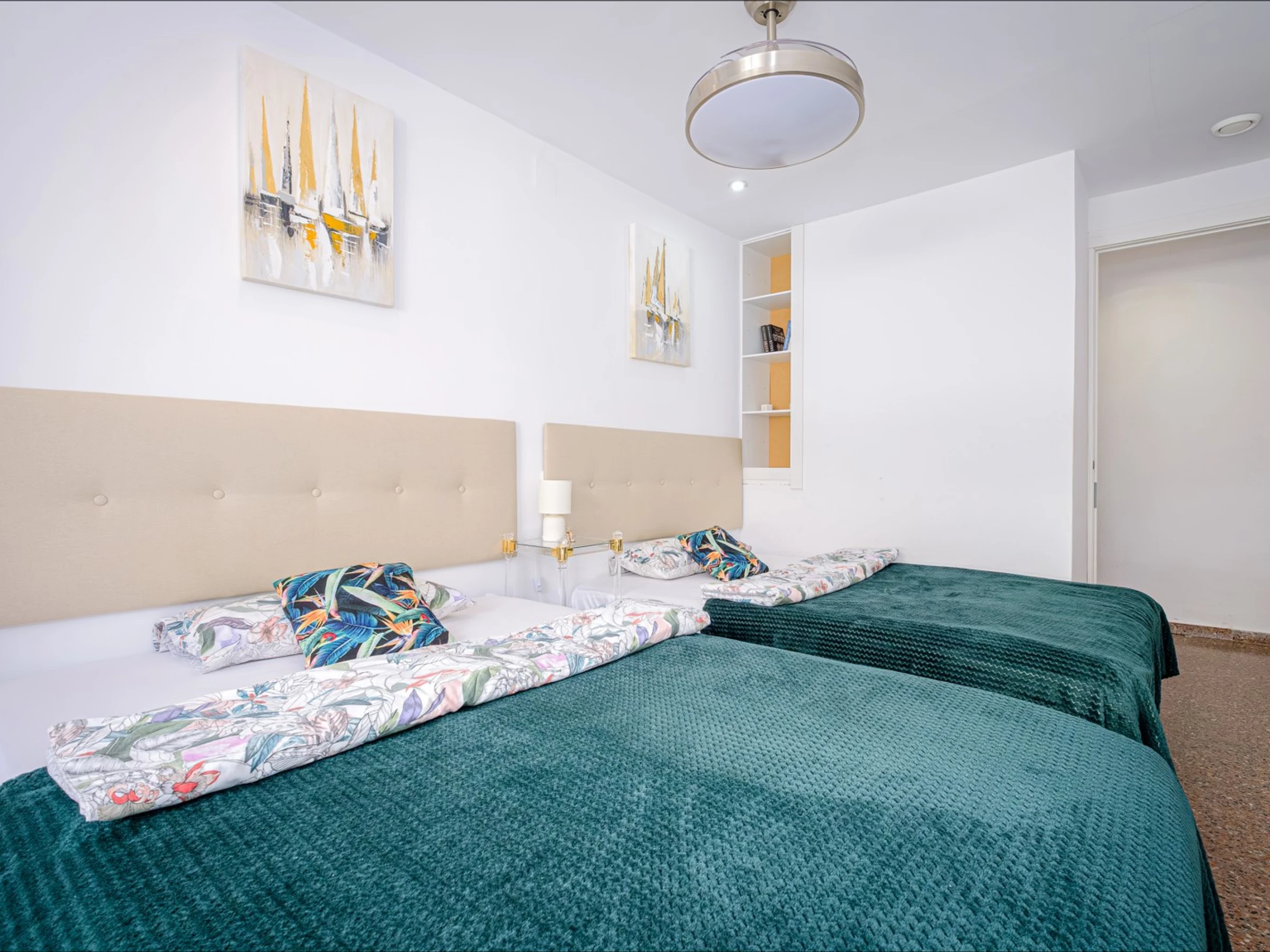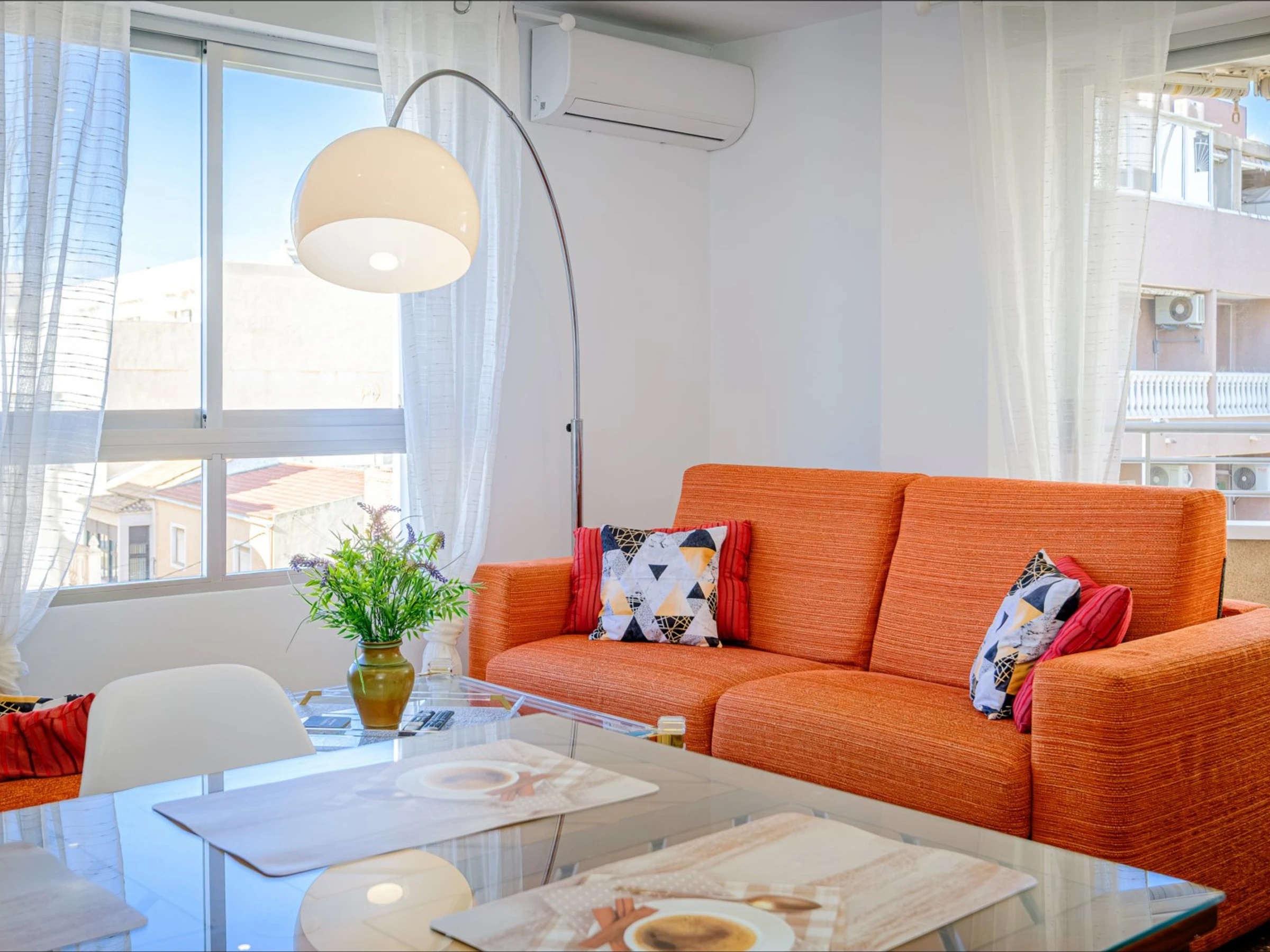 Un appartement spacieux est disponible à la location, situé à 300 mètres de la célèbre plage de Del Cura. D'une superficie de 98 m², cet appartement comprend un séjour, trois chambres, une cuisine américaine et deux salles de bains. Il est entièrement équipé pour un séjour confortable : mobilier, électroménager (dont cafetière et lave-vaisselle), linge de lit et serviettes. Vous y trouverez également la télévision espagnole et une connexion Wi-Fi. La climatisation est disponible uniquement dans le séjour. Deux des trois chambres sont équipées de ventilateurs de plafond. L'appartement peut accueillir jusqu'à cinq personnes (animaux non admis). Son emplacement idéal vous permettra de profiter à la fois de vacances à la plage, entre baignade et farniente au soleil, et de flâner dans les rues animées de la ville, bordées de bars et de cafés. Un grand supermarché Manper (à 300 mètres), la gare routière et la rue principale, Ramon Gayud, avec ses restaurants (le plus proche à 100 mètres), ses commerces et ses boutiques, sont tous accessibles à pied. Il est permis de fumer uniquement sur le balcon. Toute infraction sera passible d'une amende de 200 €.