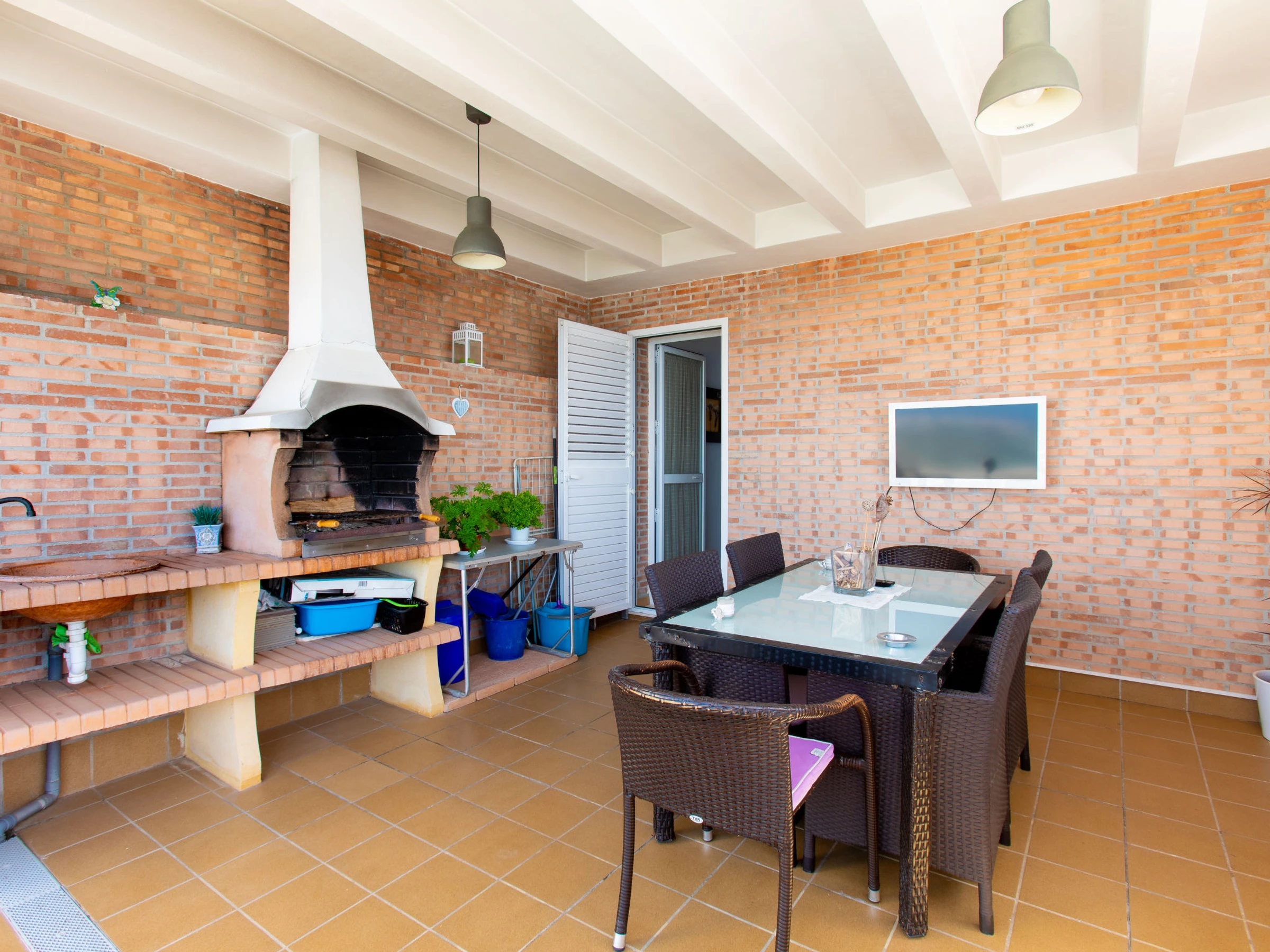 "Balcón del Mediterraneo", maison mitoyenne 4 pièces 110 m2, situation sud. Logement idéal pour 5 adultes. Spacieux, aménagement fonctionnel et confortable: séjour/salle à manger avec Télévision numérique, air-conditionné et chauffage à air chaud. Sortie sur la terrasse. Cuisine (four, lave-vaisselle, 4 plaques vitrocéramiques, grille-pain, bouilloire électrique, micro-ondes, congélateur, cafetière électrique) avec Télévision numérique. À l'étage inférieur: 1 chambre avec 1 lit (90 cm, longueur 190 cm), douche/WC, air-conditionné et chauffage à air chaud. 1 chambre avec 1 grand-lit (135 cm, longueur 190 cm), bain/WC (privé) Télévision numérique, chaînes de TV internationales, air-conditionné et chauffage à air chaud. Sortie sur la terrasse. 1 chambre avec 2 lits (90 cm, longueur 190 cm), air-conditionné et chauffage à air chaud. Douche/WC. 2 grandes terrasses, petite terrasse, tonnelle. Meubles de terrasse, barbecue, place pour s'asseoir. Très belle vue panoramique sur la mer et les montagnes. A disposition: lave-linge, fer à repasser, lit bébé jusqu'à 2 ans, sèche-cheveux. Internet (Connexion WIFI, gratuit). Veuillez noter: détecteur de fumée, extincteur, sans ascenseur. [hidden] // Reg. Nr.: ESFCTU[hidden][hidden][hidden][hidden]0
