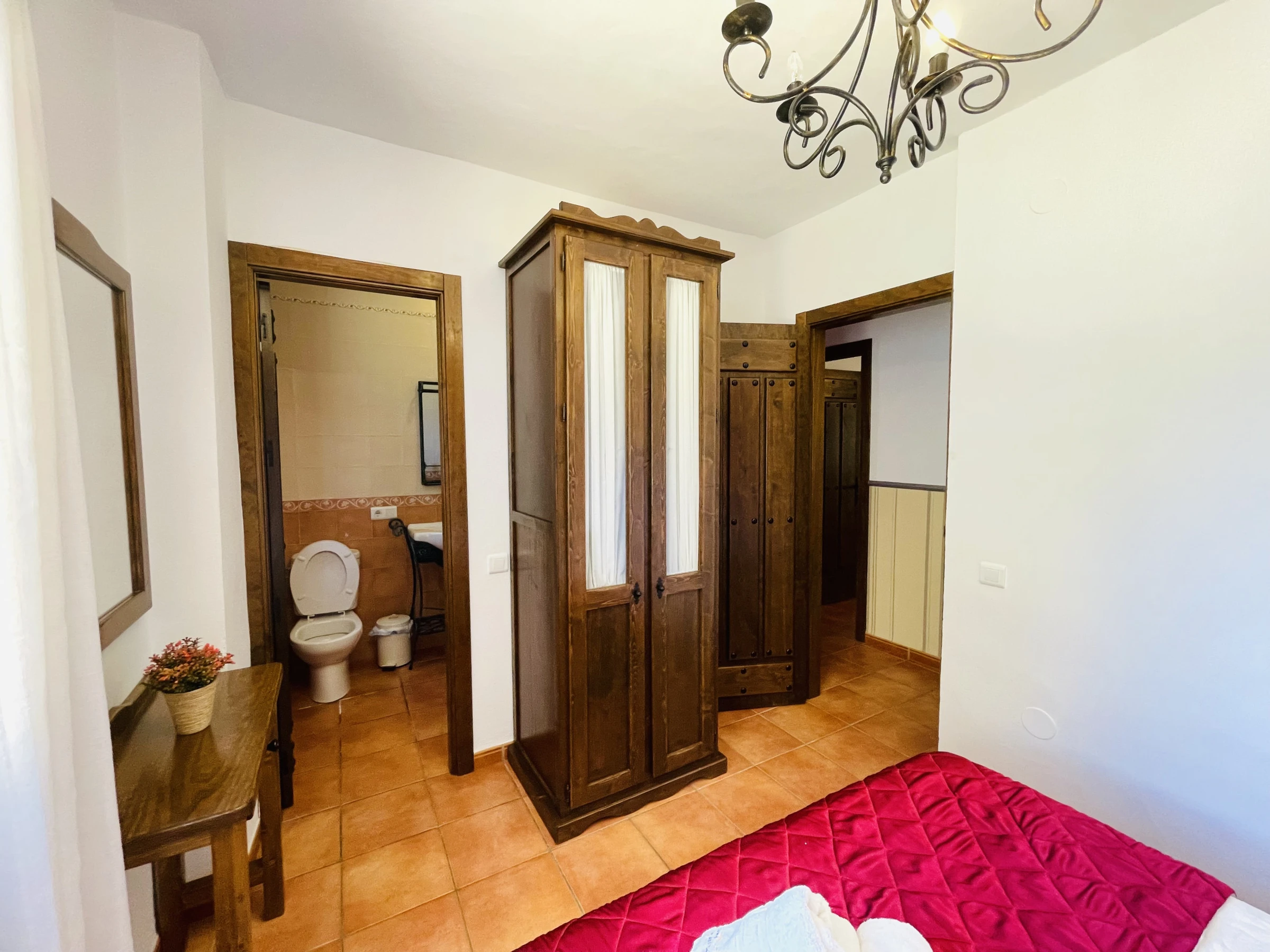 Au premier étage, six chambres attendent, chacune avec une salle de bain attenante, conçues pour que chaque invité dispose de son propre coin d'intimité et de confort. Les tons doux et la décoration soignée transmettent la sérénité, tandis que les fenêtres ouvrent le passage à l'air frais et au chant des oiseaux.