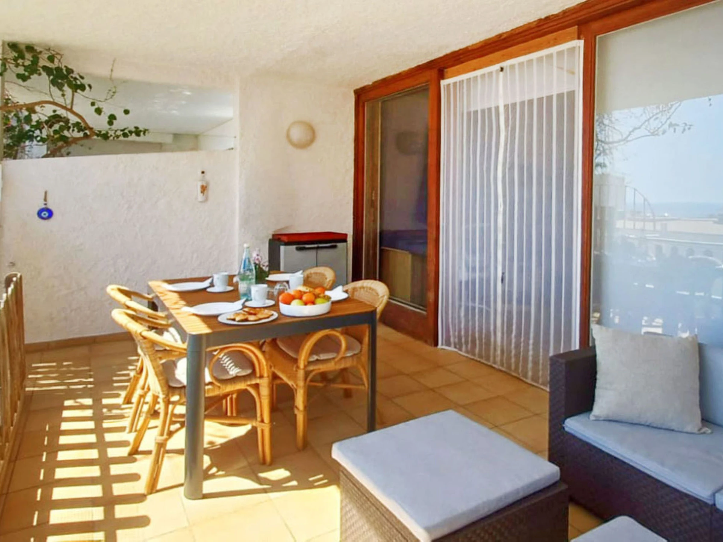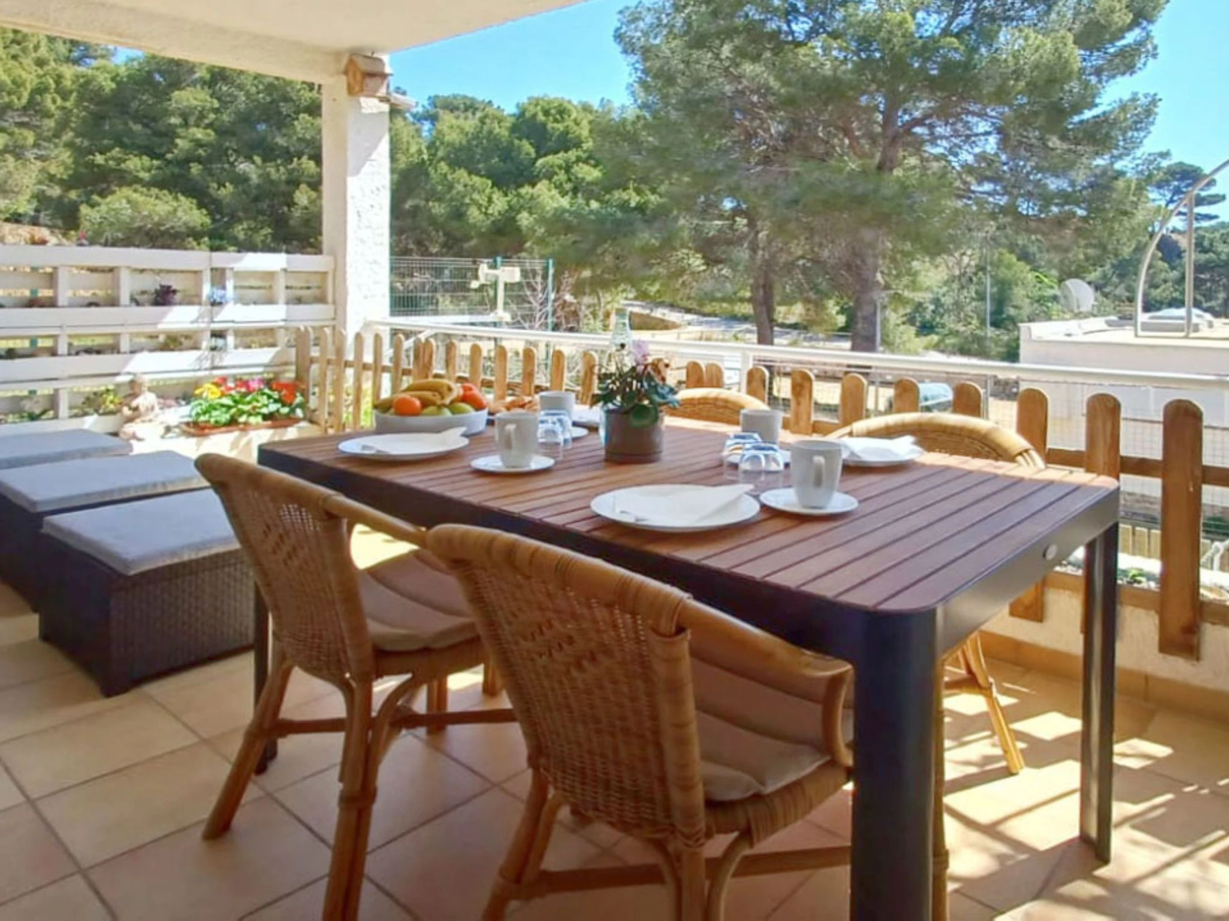 "Too Menuda", apt 4 pièces 60 m2. Spacieux et clair, aménagement fonctionnel et de style: 1 chambre double, fenêtre donnant sur la cour avec 1 grand-lit (150 cm, longueur 200 cm), ventilateur. 1 chambre avec 1 x 2 lits superposés (90 cm, longueur 190 cm), ventilateur. Séjour/salle à manger. Grande cuisine ouverte (four, lave-vaisselle, 4 plaques vitrocéramiques, grille-pain, bouilloire électrique, micro-ondes, congélateur, cafetière électrique) avec table pour les repas, TV (satellite), Télévision numérique et chaînes de TV internationales. Sortie sur le jardinet. Douche/WC, WC séparé. Pas de chauffage. Grande terrasse 20 m2. Meubles de terrasse. Vue sur la mer. A disposition: lave-linge, fer à repasser, sèche-cheveux. Internet (Connexion WIFI, gratuit). Place de parking (1 Voiture). Veuillez noter: adapté(e) aux familles. Maximum 1 animal/ chien de petite taille autorisé. TV seulement ES. Sans ascenseur. [hidden] // Reg. Nr.: ESFCTU00001702100042375000000000000000000000000201393