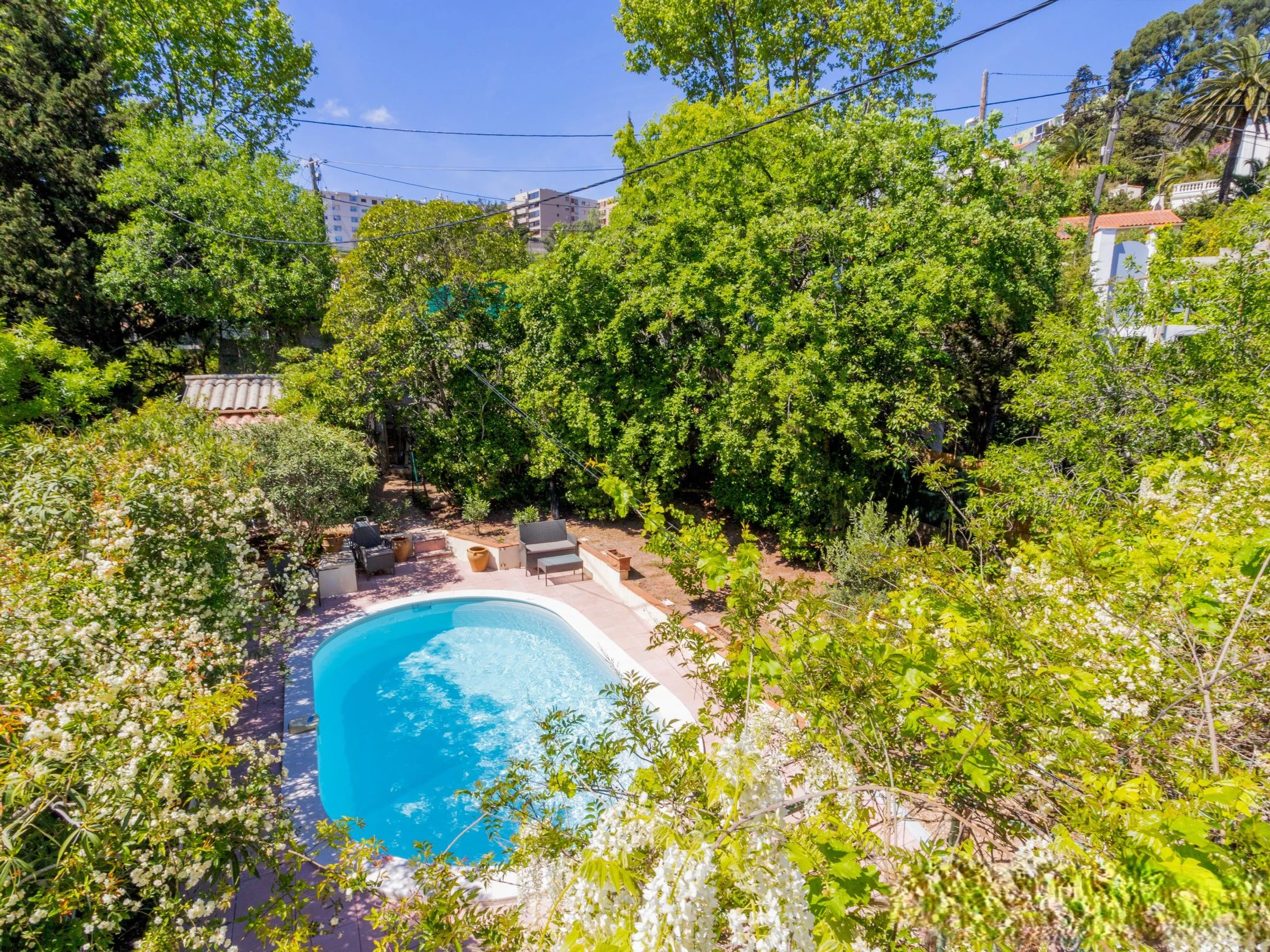 Dans le quartier de Serinette, à 3 km du centre de Toulon, à 7 km du centre de Le Pradet, à 18 km du centre de Hyeres, dans un quartier résidentiel, à 2.2 km de la mer, à 2.7 km de la plage. A usage privé: terrain 640 m2 (clôturé), jardin entretenu, piscine cloturée (6 x 4 m, profondeur 120 - 150 cm, disponibilité saisonnière: [hidden] - [hidden] Place de parking (pour 3 voitures) sur le terrain. Magasin d'alimentation 2 km, supermarché 2 km, centre commercial 3 km, restaurant 2.5 km, bar 2.5 km, boulangerie, arrêt de bus 250 m, gare ferroviaire "Toulon" 3.5 km, plage de sable "Le Mourillon" 2.7 km. Attractions à proximité: Cap Brun, Hyeres, Porquerolles, Iles des Embiez, Musee national de la Marine, Presqu'île de Giens. Le propriétaire n'accepte pas les groupes de jeunes. Environnement très sensible au bruit. Silence et bonne tenue exigés.