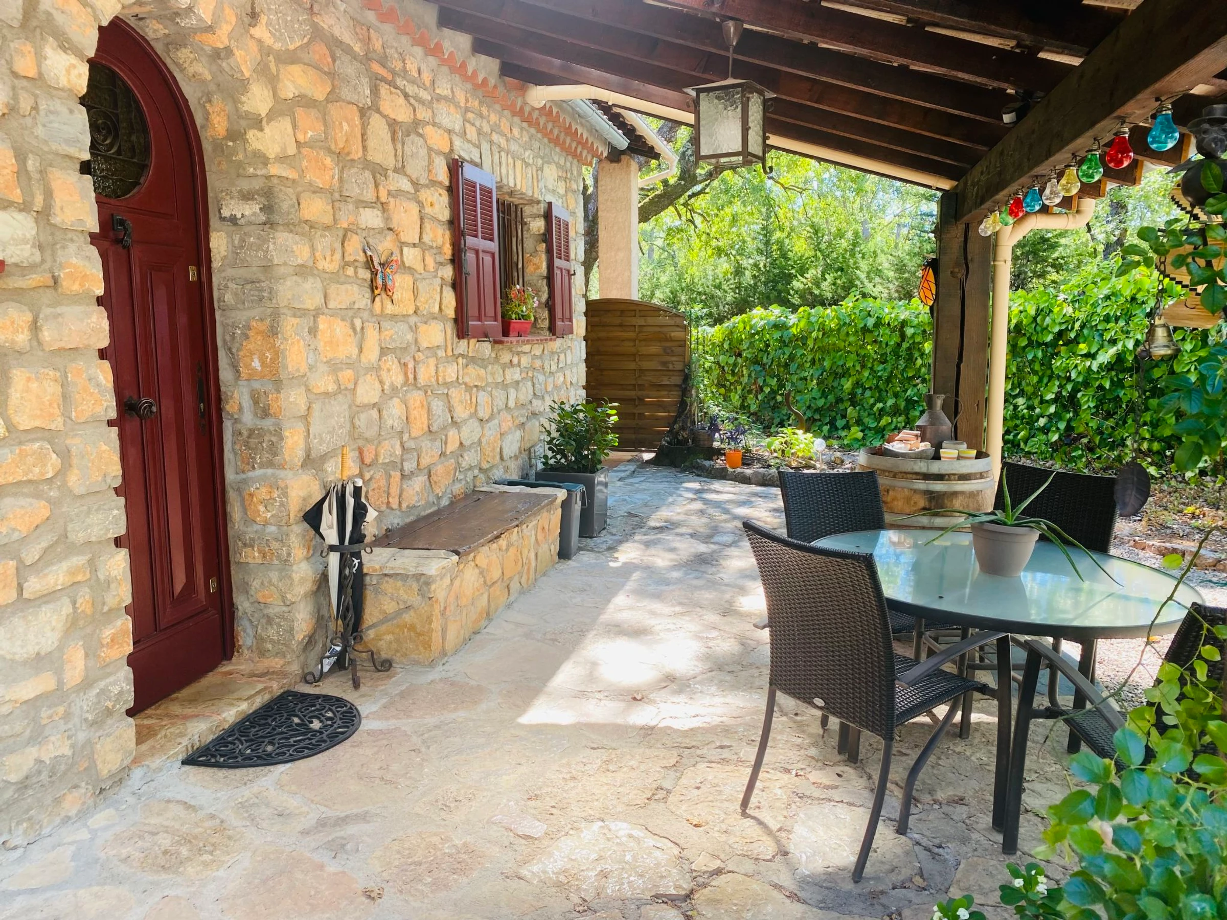 "Les Pierres Fleuries", villa 4 pièces 90 m2. Aménagement confortable et agréable: séjour/salle à manger avec poêle suédois (uniquement à titre de décoration), table pour les repas et TV (écran plat), air-conditionné. Sortie sur la terrasse. 1 chambre avec 1 grand-lit (140 cm, longueur 190 cm), ventilateur. 1 chambre avec 2 lits (90 cm, longueur 190 cm), ventilateur. 1 chambre avec 1 divan-lit double (140 cm, longueur 190 cm), bibliotheque et ventilateur. Cuisine ouverte (four, lave-vaisselle, 3 plaques à induction, grille-pain, bouilloire électrique, micro-ondes, congélateur, cafetière électrique, Capsules pour machine à café (Tassimo) (NON INCLUSES)) avec petite table pour les repas. Sortie sur le jardin. Bain/douche, WC séparé. Chauffage au fuel. Meubles de terrasse, barbecue électrique, chaises longues (4). A disposition: lave-linge, sèche-linge, fer à repasser, moustiquaire, lit bébé jusqu'à 3 ans. Internet (Connexion WIFI, gratuit). Place de parking (cloturée, 2 Voitures). Veuillez noter: maison non-fumeur. Détecteur de fumée. La piscine mentionnée dans le descriptif est privative. Annonce d'un particulier (art 155, IV du CGI).