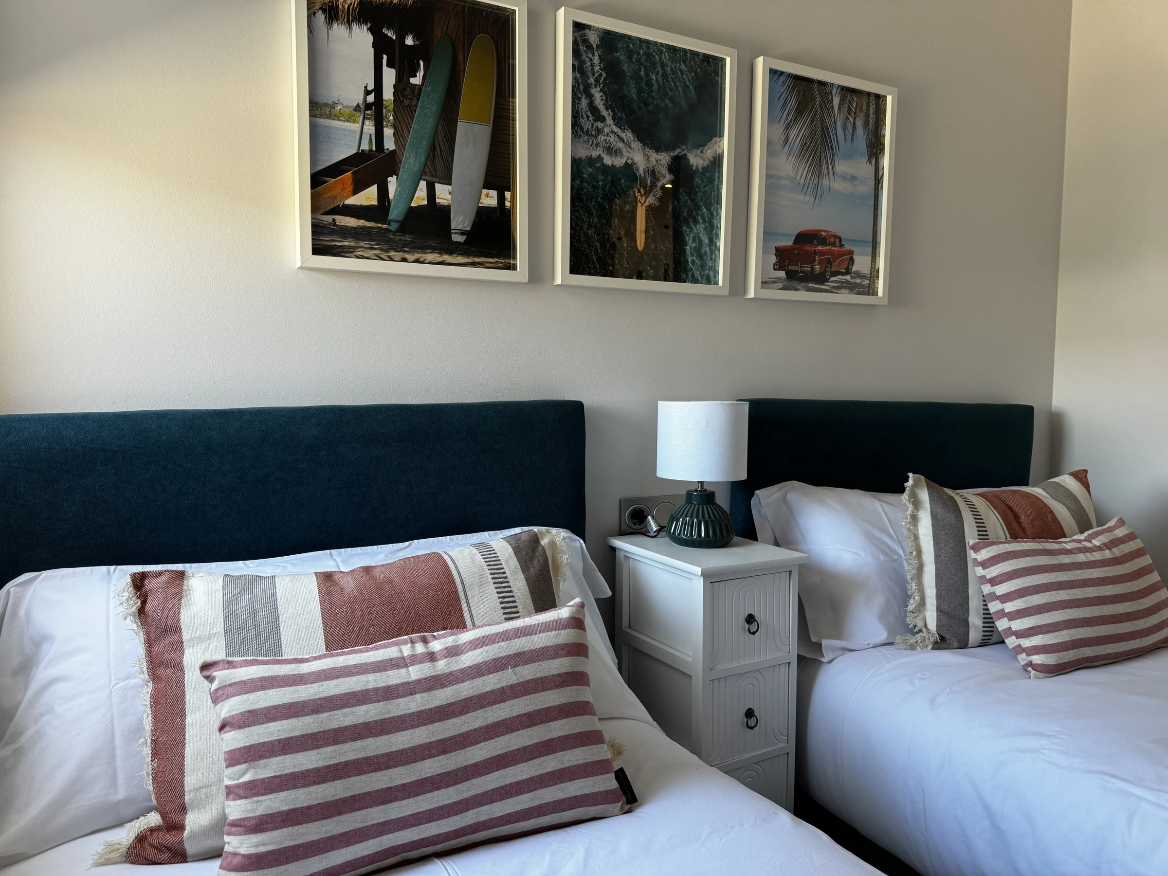 La maison dispose de 2 chambres parfaitement équipées : 1 lit double et 2 lits individuels, idéal pour les familles recherchant du confort et de l'espace. Elle comprend 2 salles de bains complètes avec douche et baignoire, ce qui facilite la cohabitation et les moments de préparation.