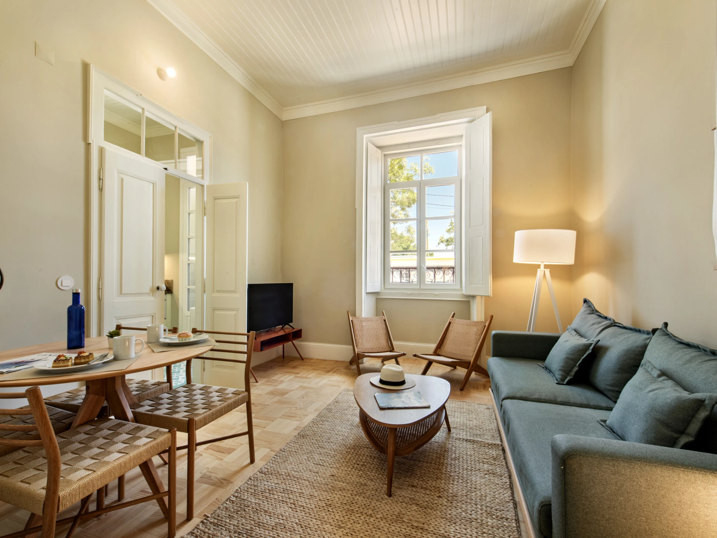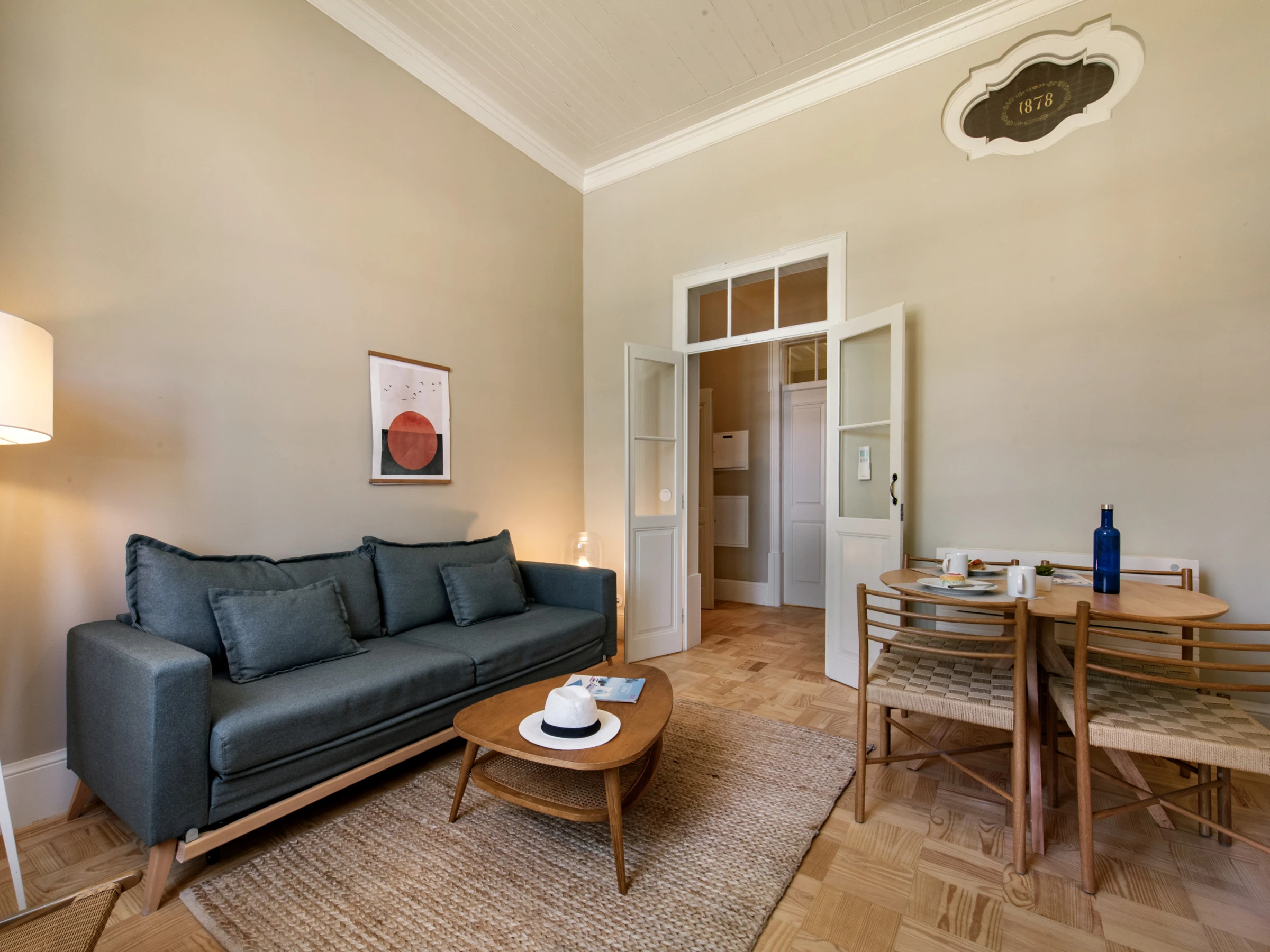Cet appartement de deux chambres, situé au rez-de-chaussée d'un bâtiment historique rénové avec un souci du détail, offre l'équilibre parfait entre l'héritage architectural du XIXe siècle et un mode de vie contemporain conçu pour accueillir jusqu'à 4 personnes avec tout le confort.