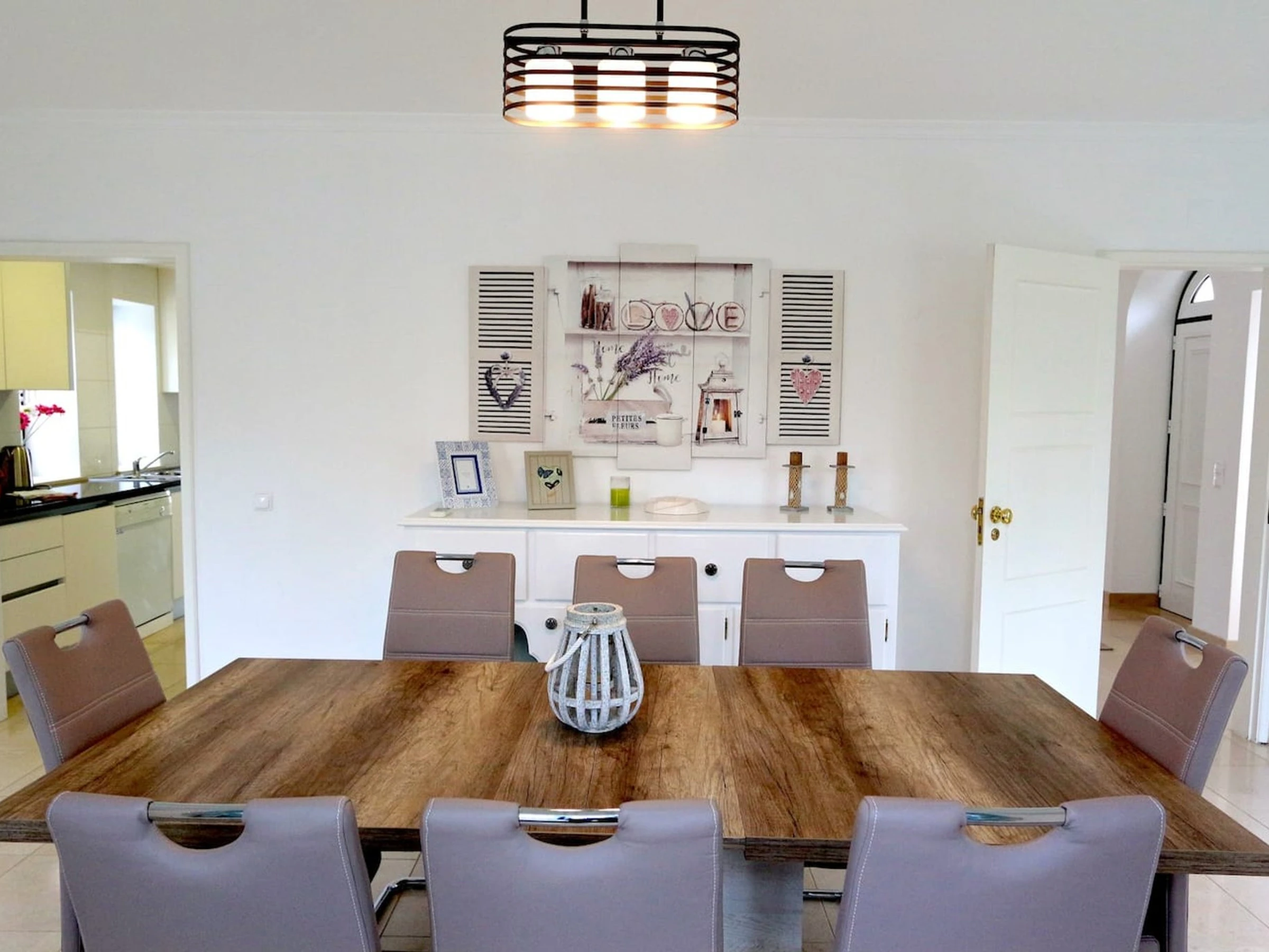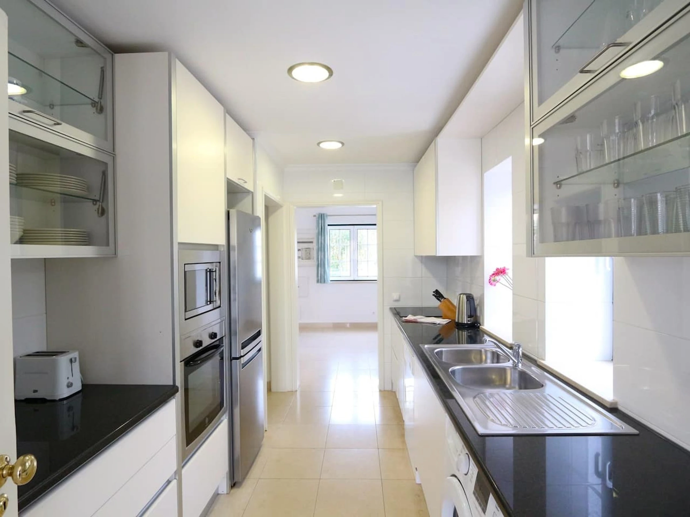 La cuisine, est équipée avec réfrigérateur, micro-ondes, four, lave-vaisselle, cafetière, grille pain et bouilloire.