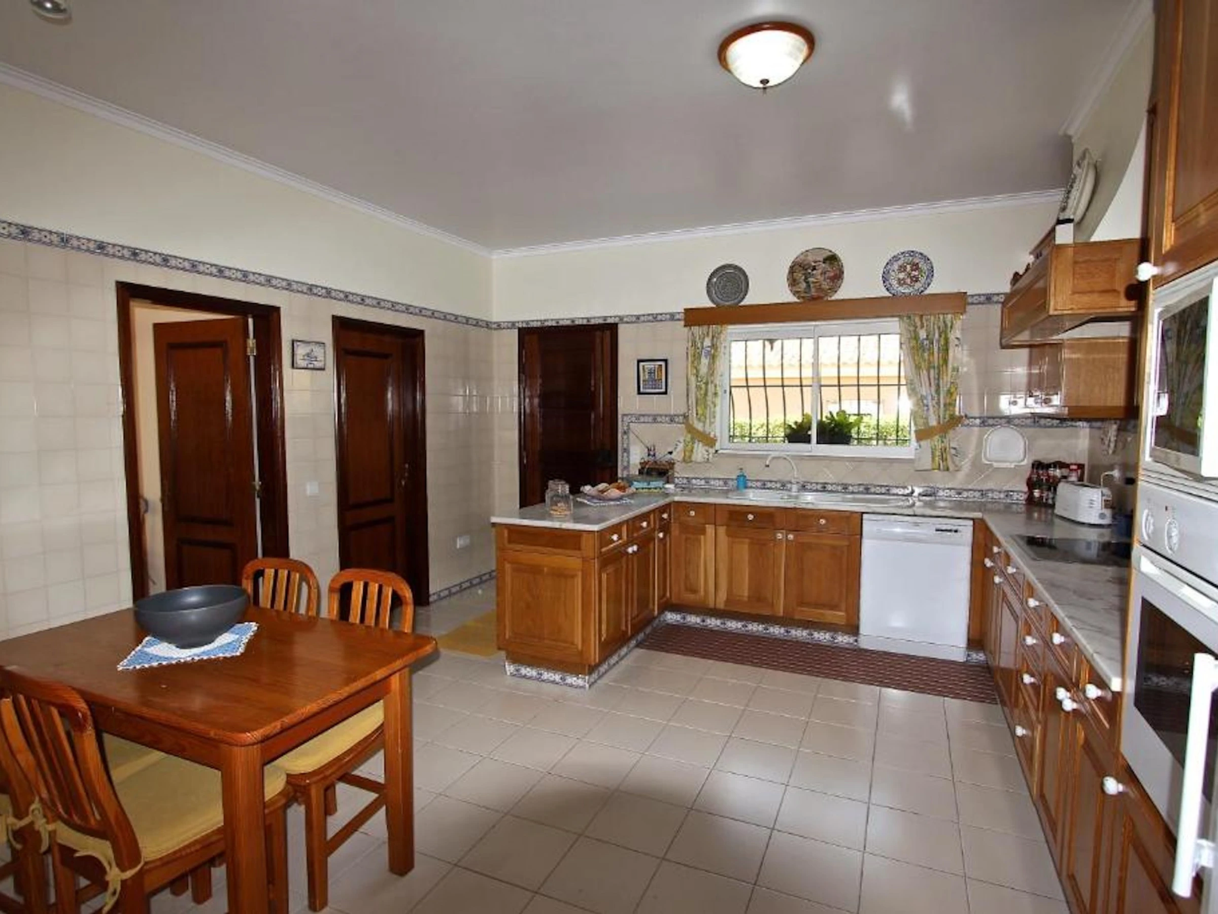 La cuisine, est équipée avec micro-ondes, four, lave-vaisselle, cafetière et grille pain.