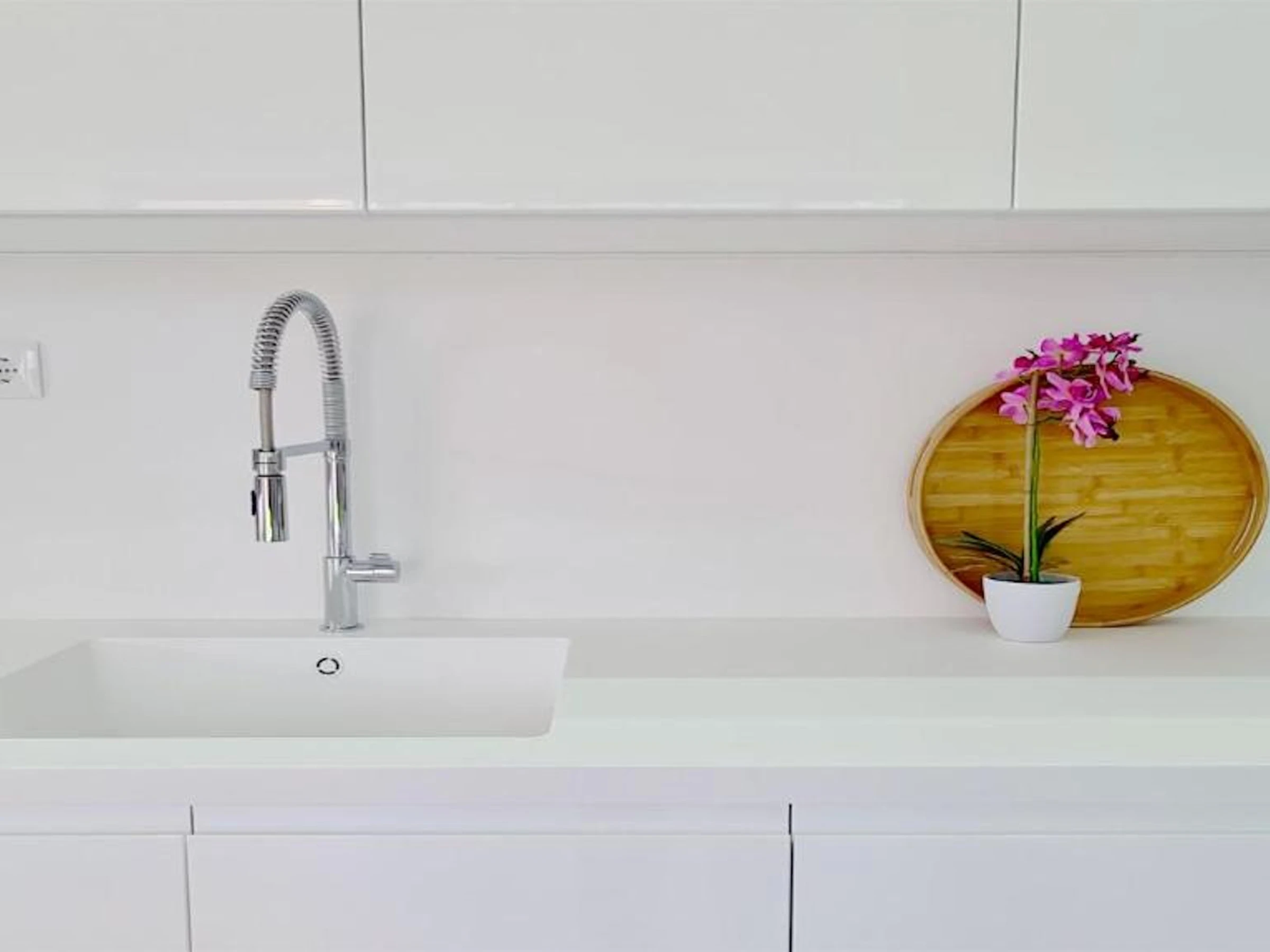La cuisine, est équipée avec réfrigérateur, micro-ondes, four, congélateur, lave-vaisselle, cafetière, grille pain et bouilloire.