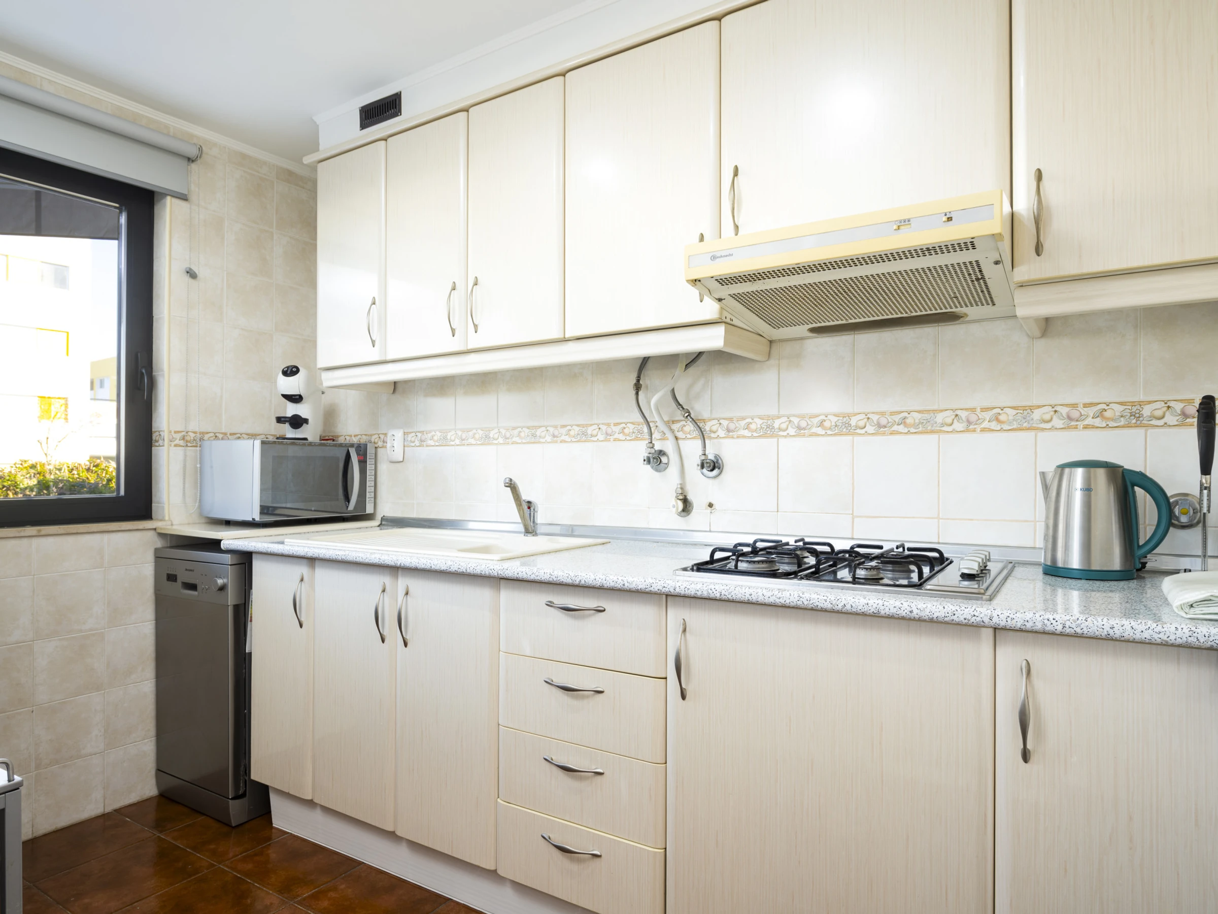 La kitchenette, au gaz, est équipée d'un réfrigérateur, d'un micro-ondes, d'un four, d'un congélateur, d'un lave-vaisselle, de vaisselle/couverts, d'ustensiles/cuisine, d'une machine à café, d'un grille-pain et d'une bouilloire électrique.