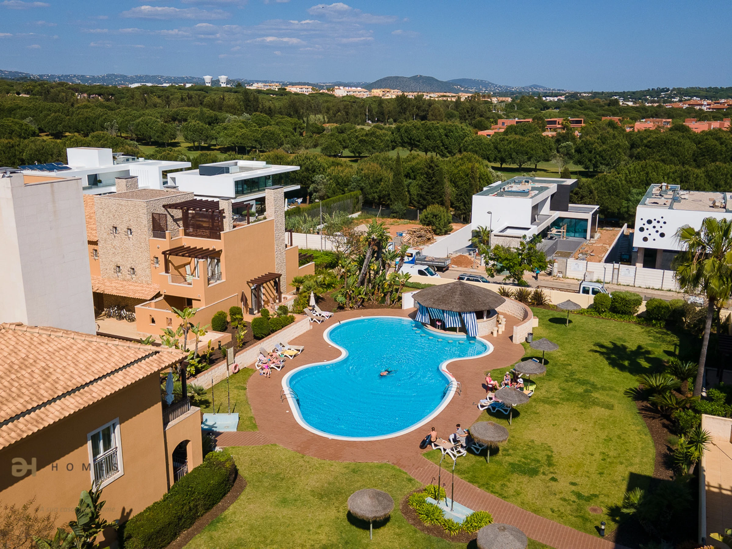 L'appartement dispose d'équipements modernes pour garantir un séjour confortable, notamment la climatisation pour vous maintenir au frais pendant les journées chaudes. Un point fort pour les familles est la piscine partagée, parfaite pour se détendre et profiter de moments de qualité ensemble. L'espace extérieur comprend un joli jardin avec du mobilier de jardin, idéal pour les cafés du matin ou la détente du soir.