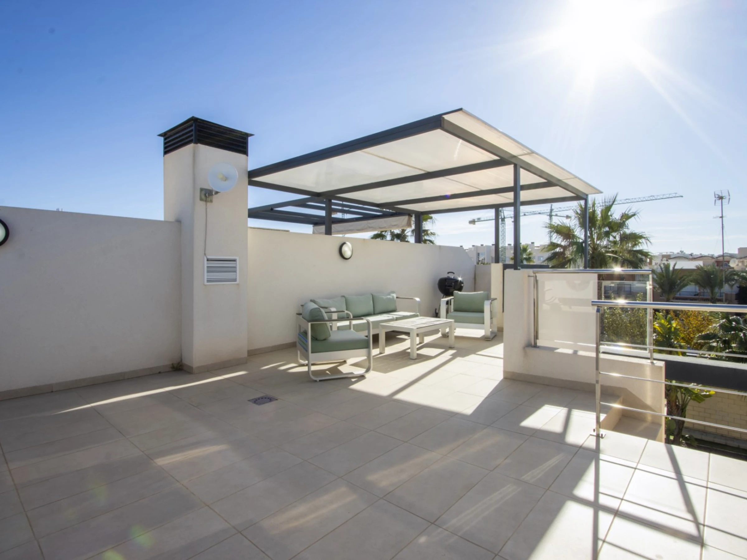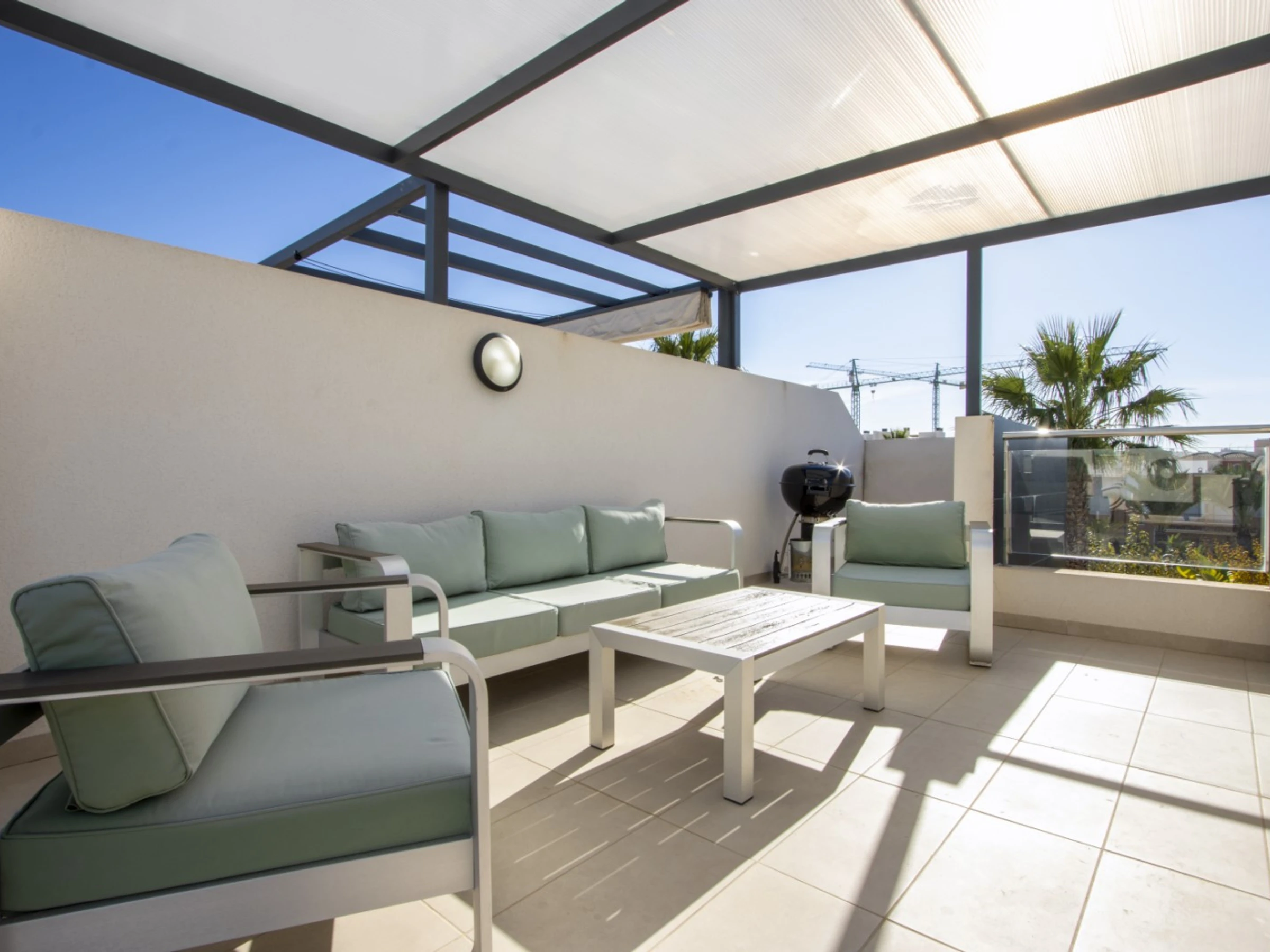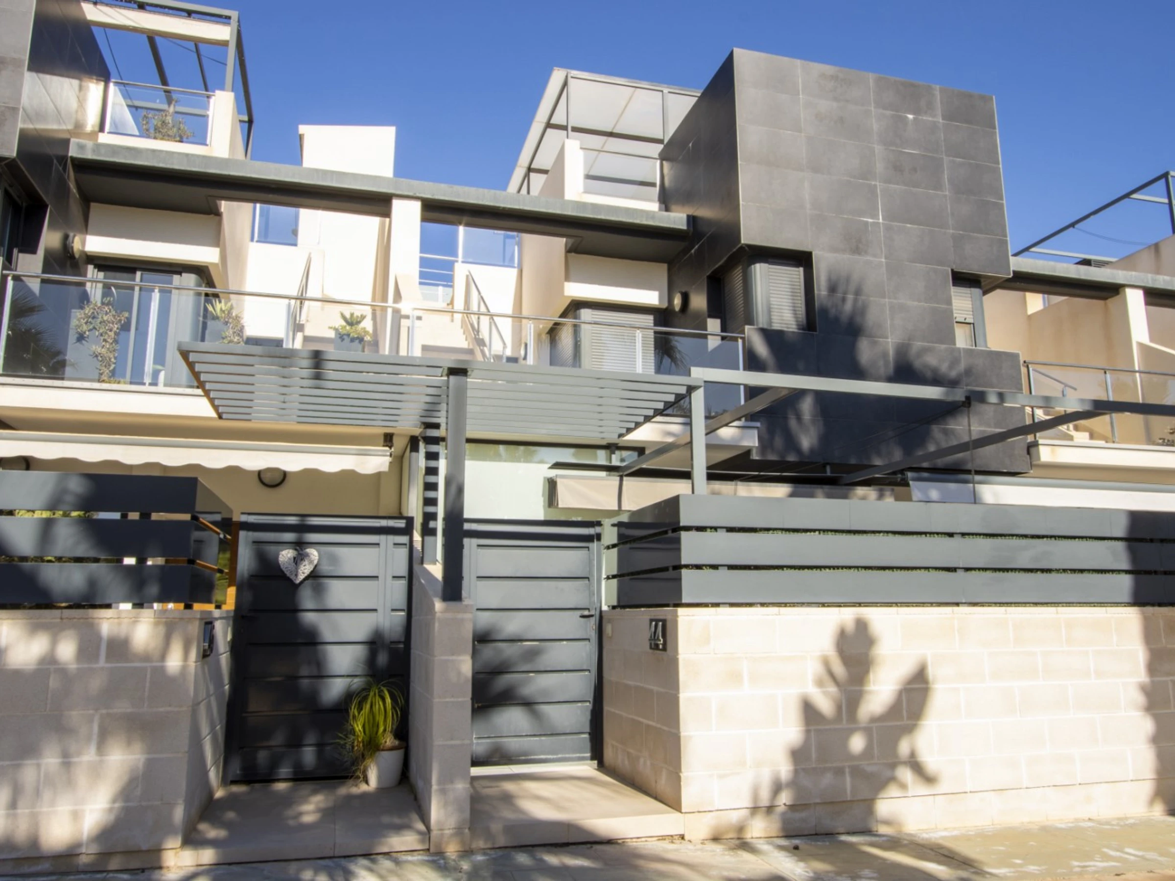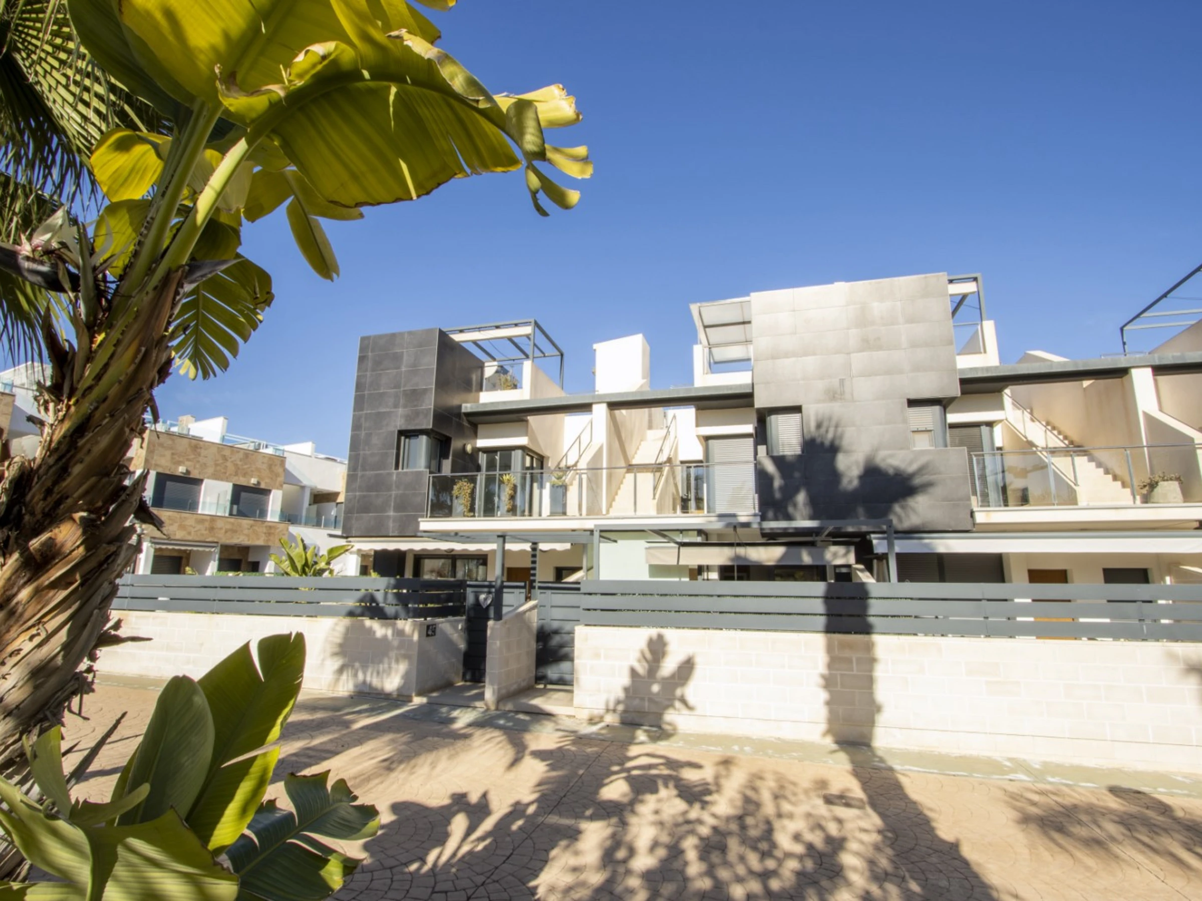 Nous proposons en location touristique une spacieuse nouvelle maison dans un complexe résidentiel fermé à Villamartin (Orihuela Costa). La villa comprend un grand salon, 3 chambres, une cuisine américaine, 3 salles de bains, une terrasse et un solarium privé. Le complexe dispose de 2 piscines communes (dont une chauffée), d'une aire de jeux pour enfants et d'une belle zone verte. La villa est entièrement meublée et inclut tous les appareils électroménagers (y compris une machine à café et un lave-vaisselle), de la vaisselle, des draps et des serviettes. Le solarium dispose d'un espace détente avec barbecue. Télévision espagnole, internet sans fil. Le quartier dispose d'une infrastructure bien développée : le centre commercial La Senia se trouve à environ 2,5 km. Le magasin DIALPRIX le plus proche est à 700 mètres. La mer et la plage sont à environ trois kilomètres. Options d'hébergement : jusqu'à 7 personnes (strictement sans animaux !) Fumer uniquement autorisé dans les espaces ouverts !