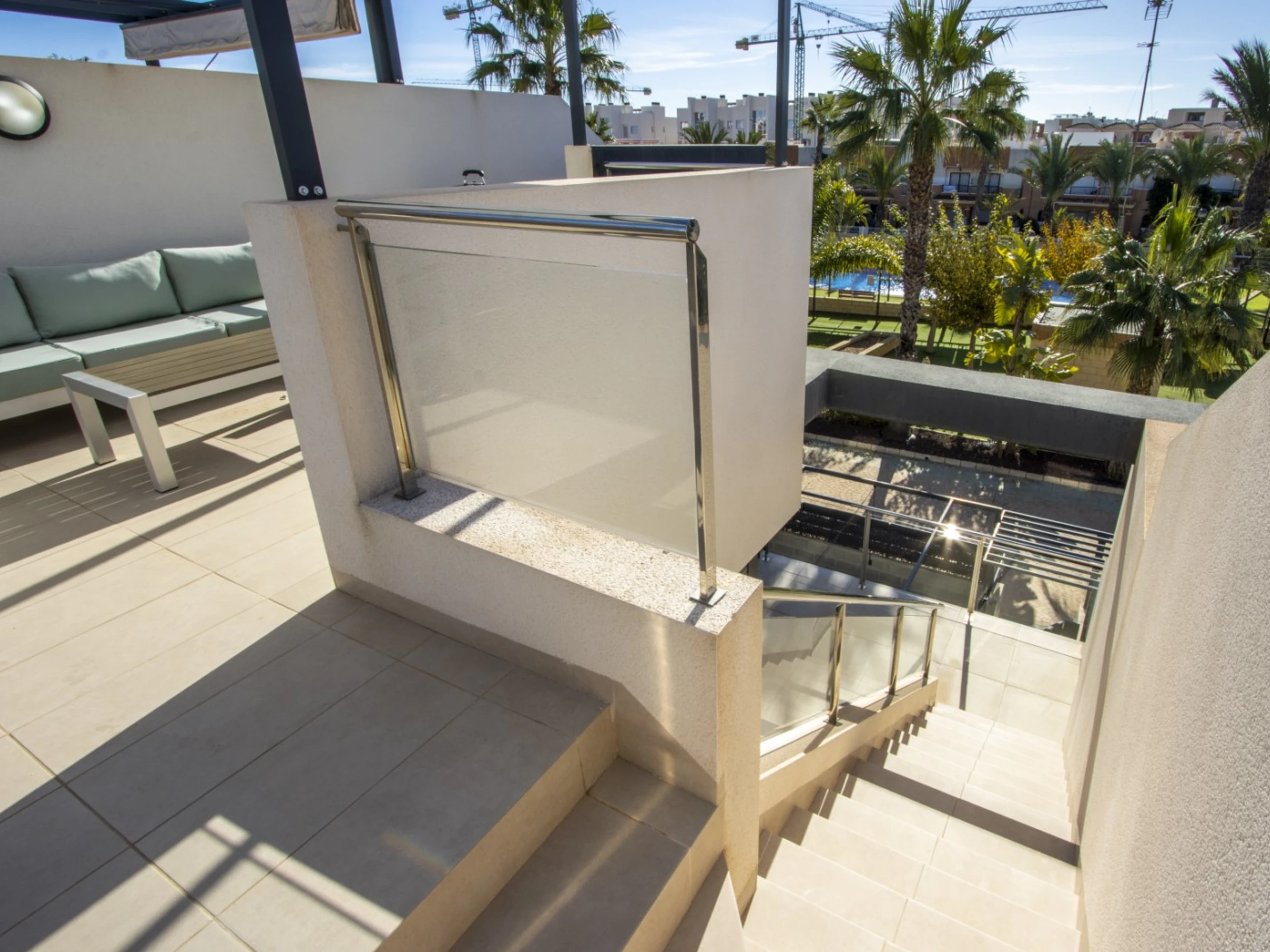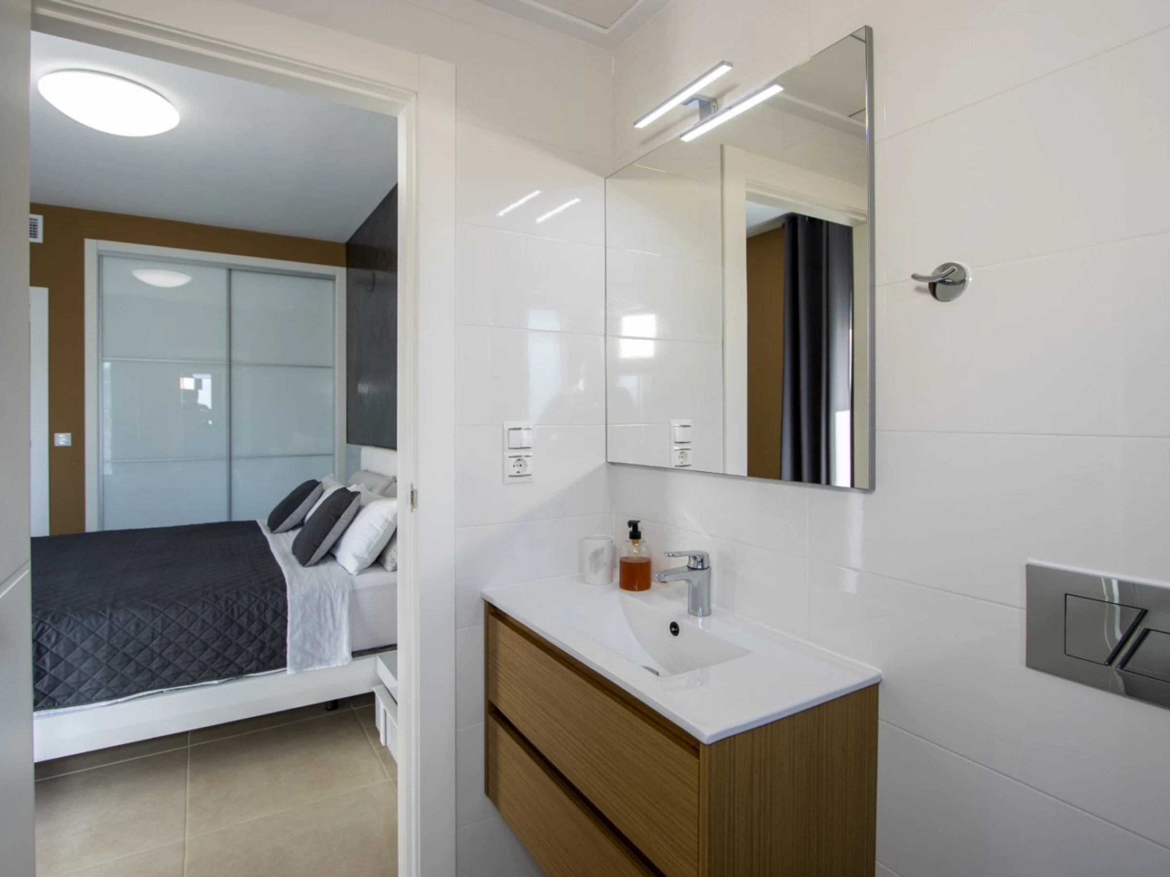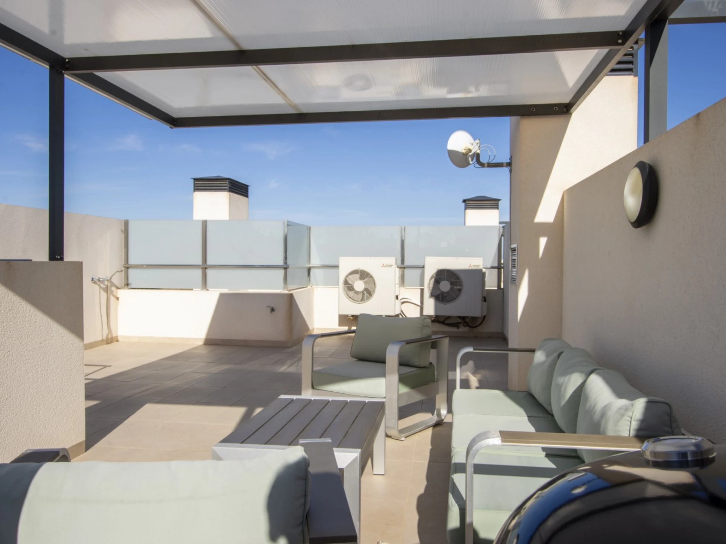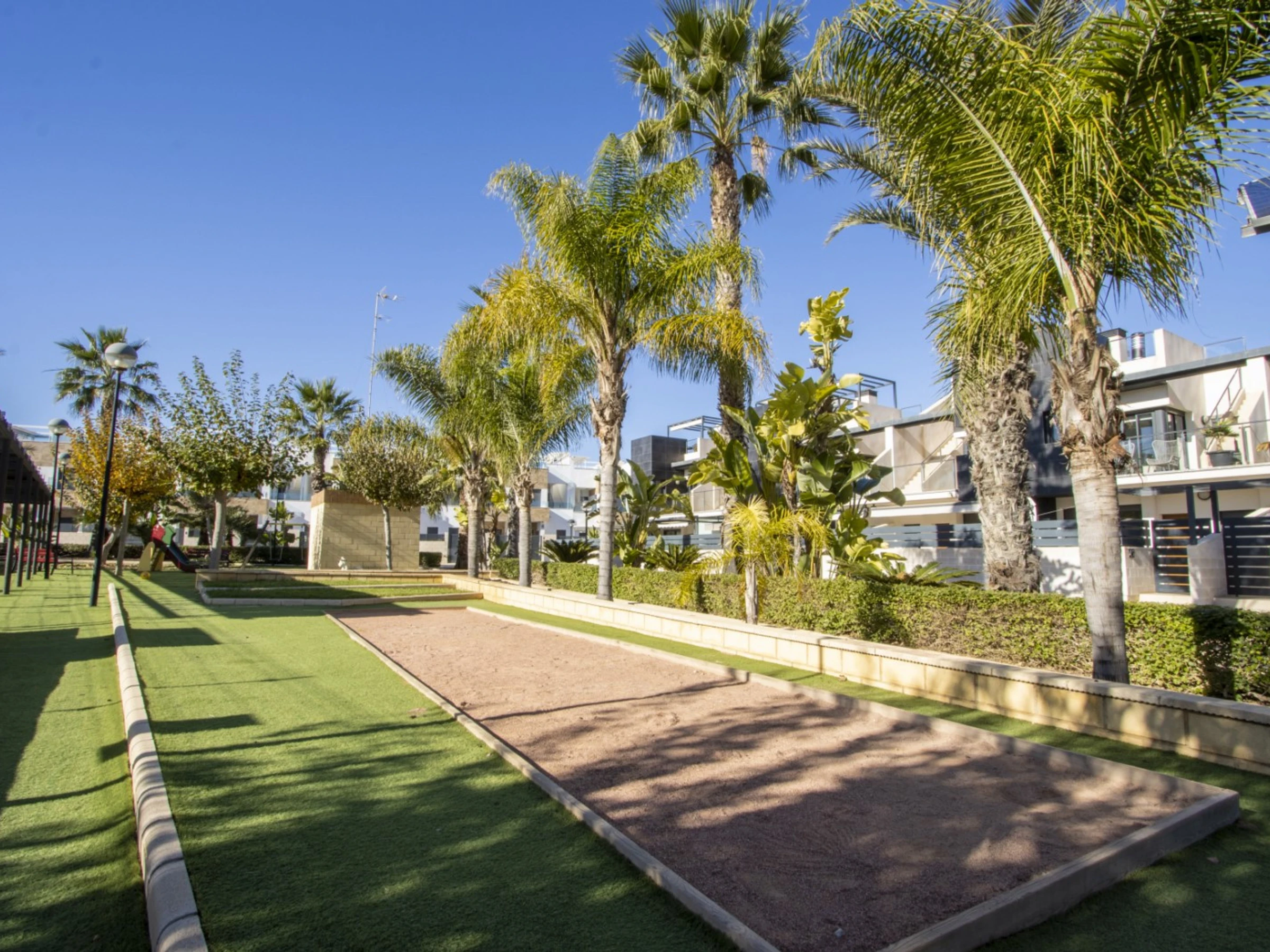 Nous proposons en location touristique une spacieuse nouvelle maison dans un complexe résidentiel fermé à Villamartin (Orihuela Costa). La villa comprend un grand salon, 3 chambres, une cuisine américaine, 3 salles de bains, une terrasse et un solarium privé. Le complexe dispose de 2 piscines communes (dont une chauffée), d'une aire de jeux pour enfants et d'une belle zone verte. La villa est entièrement meublée et inclut tous les appareils électroménagers (y compris une machine à café et un lave-vaisselle), de la vaisselle, des draps et des serviettes. Le solarium dispose d'un espace détente avec barbecue. Télévision espagnole, internet sans fil. Le quartier dispose d'une infrastructure bien développée : le centre commercial La Senia se trouve à environ 2,5 km. Le magasin DIALPRIX le plus proche est à 700 mètres. La mer et la plage sont à environ trois kilomètres. Options d'hébergement : jusqu'à 7 personnes (strictement sans animaux !) Fumer uniquement autorisé dans les espaces ouverts !