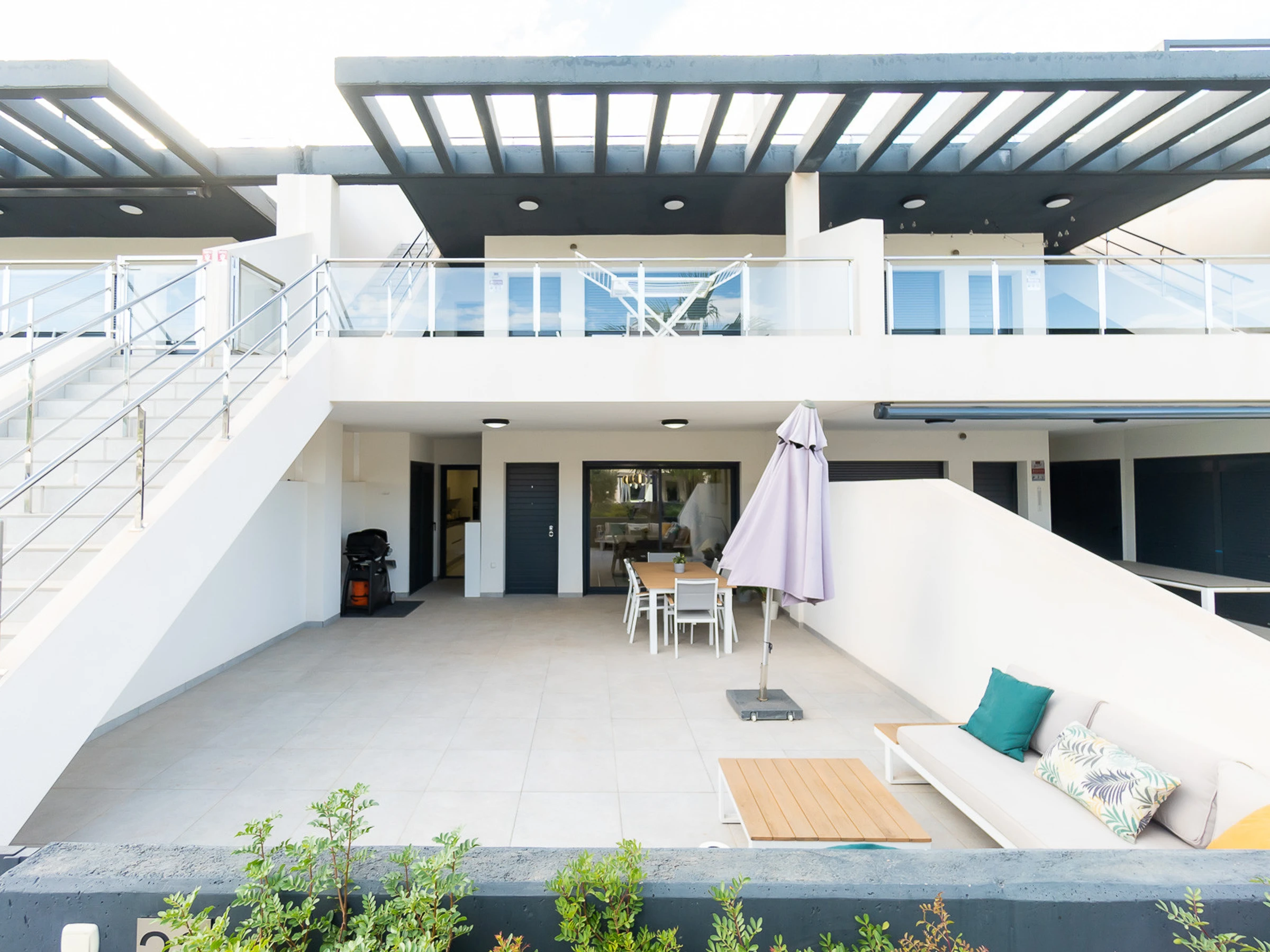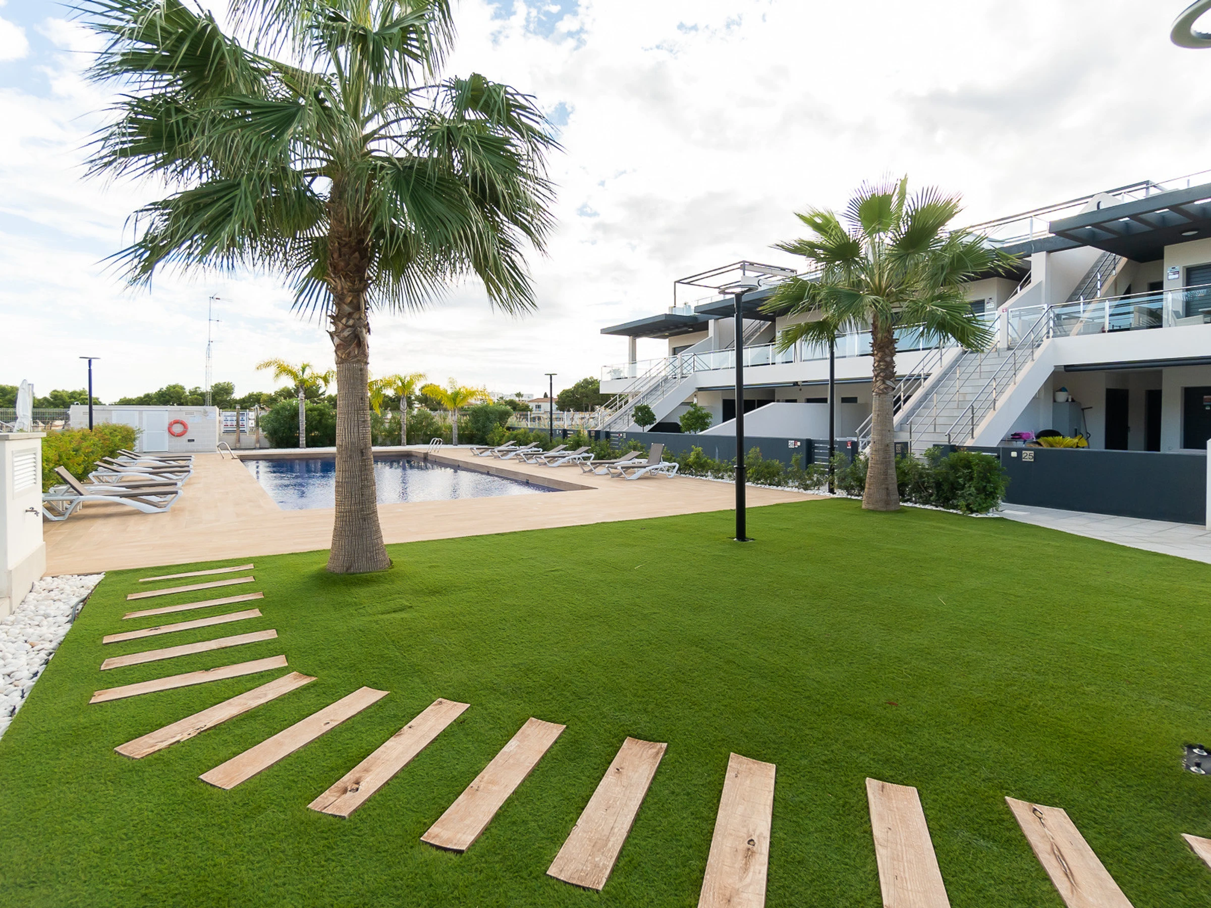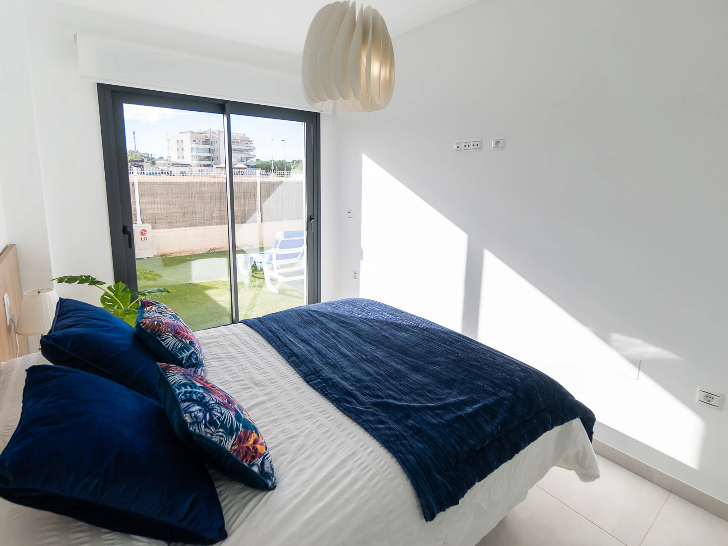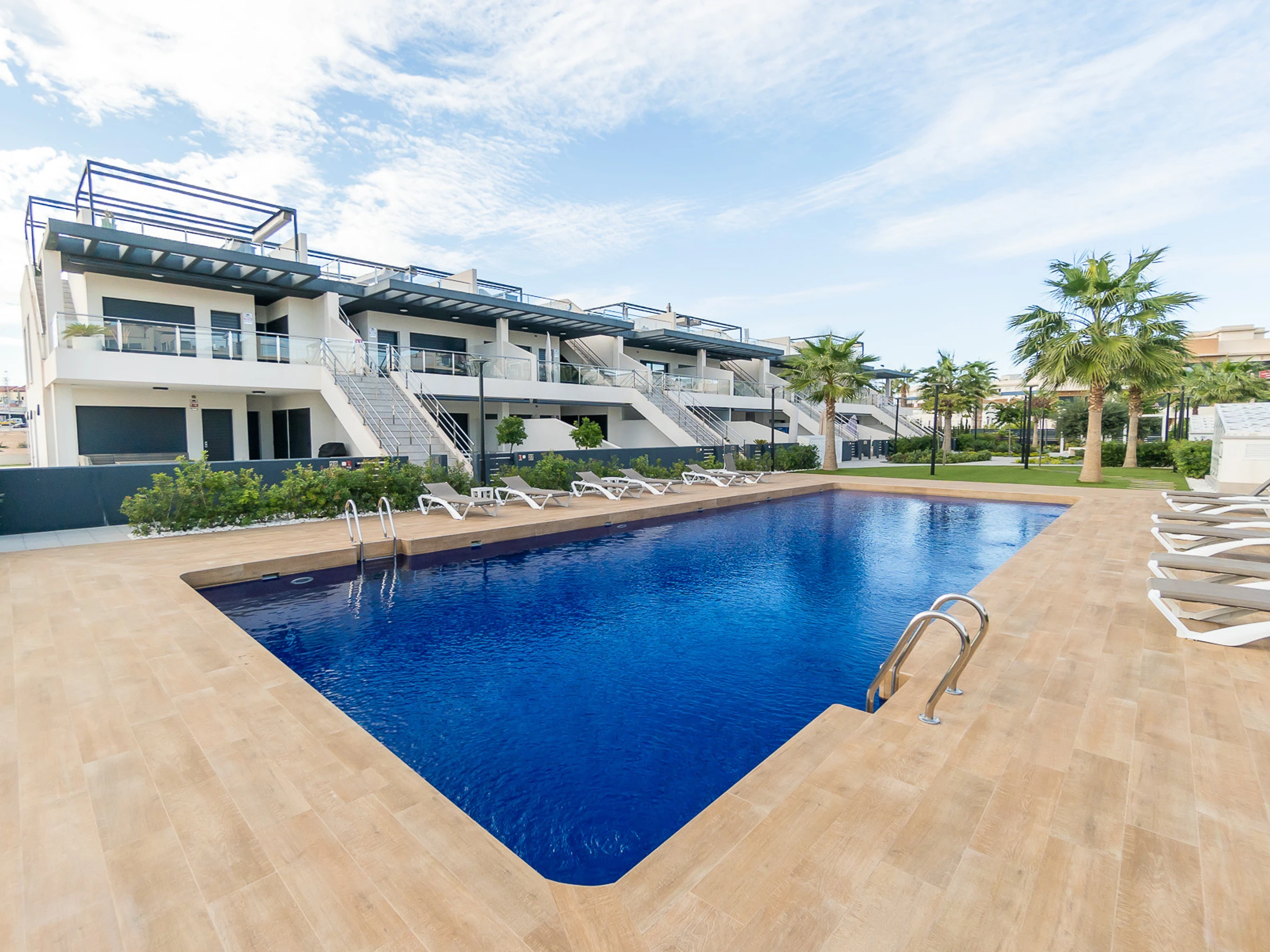 Nous vous proposons des appartements en location courte durée dans la résidence Royal Park 23. L'appartement a une superficie de 100 m2 et se compose de trois chambres, un séjour, une cuisine et deux salles de bains. Vous trouverez une terrasse privée pour bronzer, ainsi qu'une grande cour avec mobilier de jardin et barbecue. Il y a une place de parking dans le garage souterrain. Les appartements disposent de tout ce dont vous avez besoin pour un séjour confortable et relaxant : meubles, électroménager (dont une cafetière), vaisselle, linge de lit et serviettes, chaises longues. Climatisation centrale, télévision espagnole, Internet sans fil. La résidence dispose de son propre grand espace avec piscine. Non loin de la résidence se trouve un supermarché « DIAL PRIX », dans un rayon de 250 mètres se trouvent plusieurs restaurants et les golfs sont à un peu plus d'un kilomètre. La mer et la plage de La Zenia sont à environ 2,5 kilomètres. Possibilité d'hébergement – jusqu'à 6 personnes (pas d'animaux !). Il est permis de fumer uniquement dans la cour !