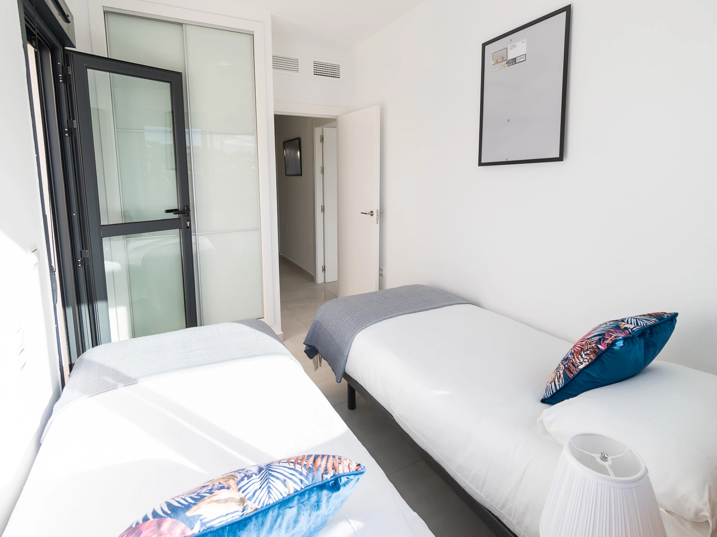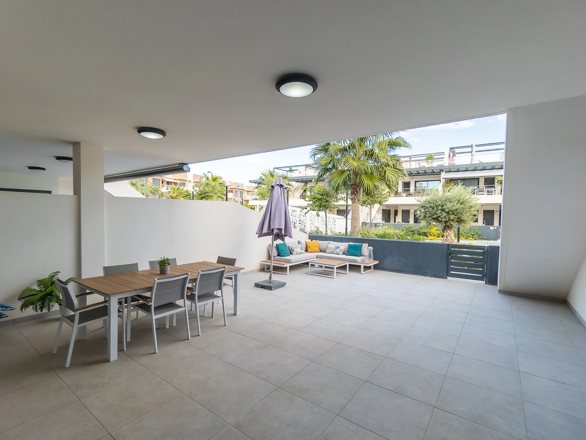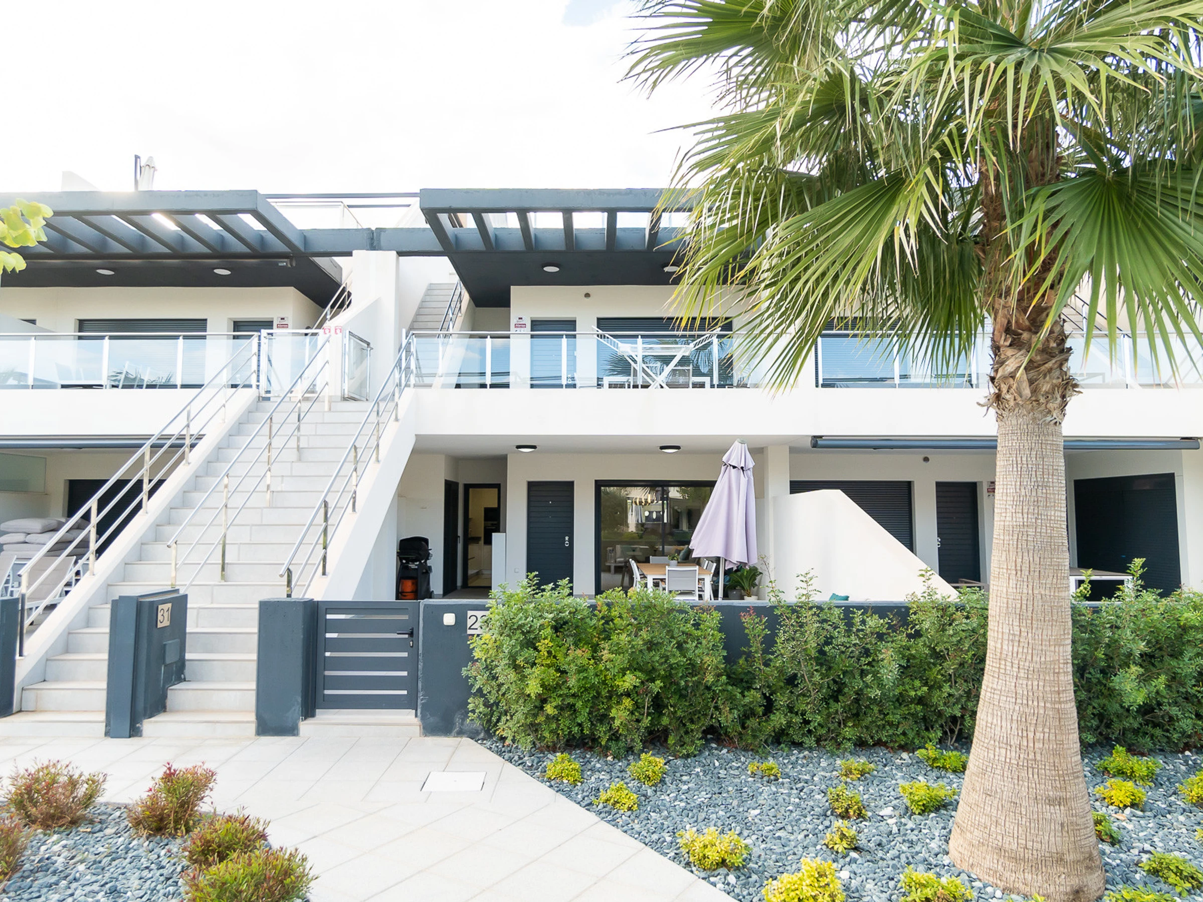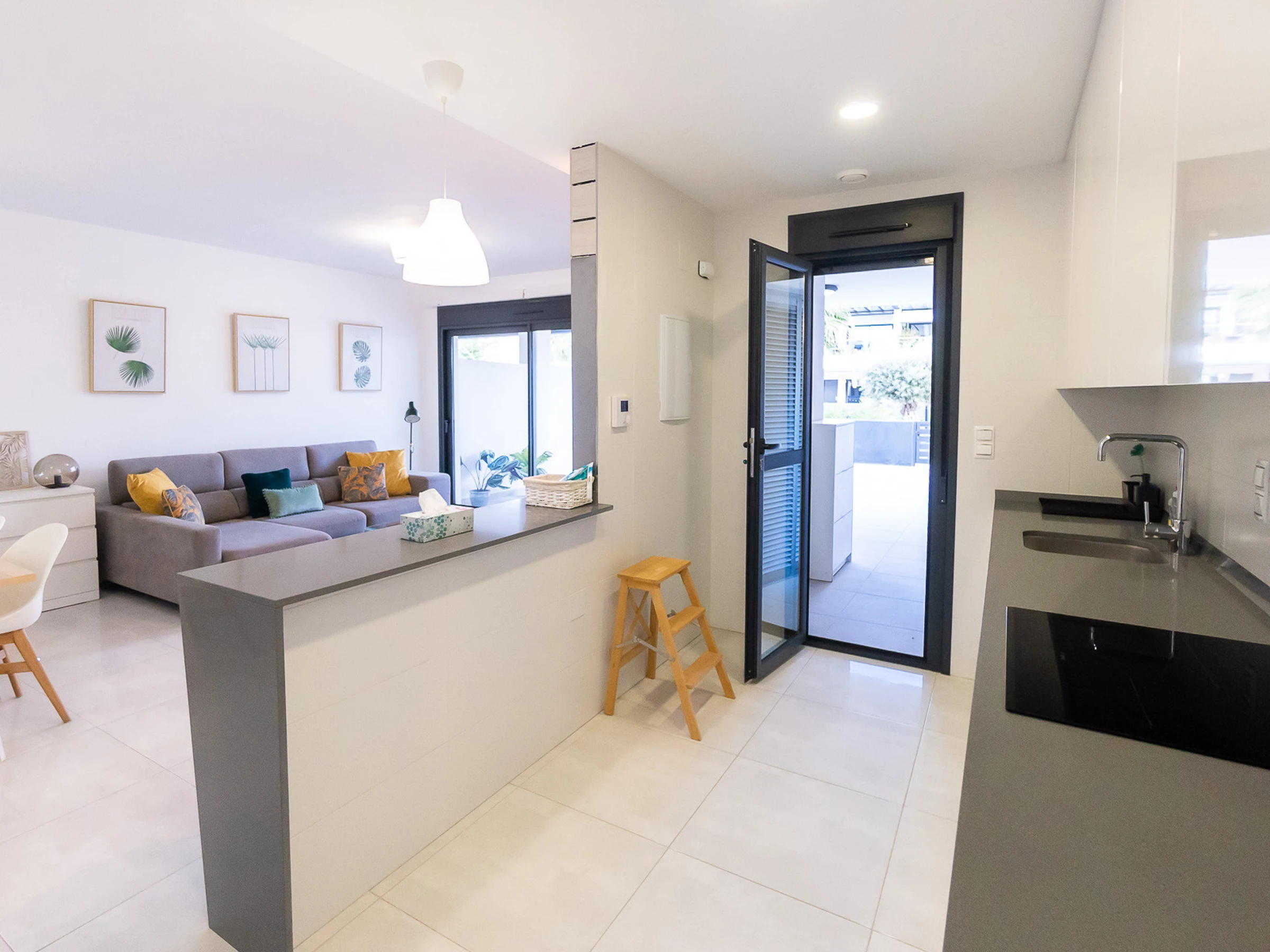 Nous vous proposons des appartements en location courte durée dans la résidence Royal Park 23. L'appartement a une superficie de 100 m2 et se compose de trois chambres, un séjour, une cuisine et deux salles de bains. Vous trouverez une terrasse privée pour bronzer, ainsi qu'une grande cour avec mobilier de jardin et barbecue. Il y a une place de parking dans le garage souterrain. Les appartements disposent de tout ce dont vous avez besoin pour un séjour confortable et relaxant : meubles, électroménager (dont une cafetière), vaisselle, linge de lit et serviettes, chaises longues. Climatisation centrale, télévision espagnole, Internet sans fil. La résidence dispose de son propre grand espace avec piscine. Non loin de la résidence se trouve un supermarché « DIAL PRIX », dans un rayon de 250 mètres se trouvent plusieurs restaurants et les golfs sont à un peu plus d'un kilomètre. La mer et la plage de La Zenia sont à environ 2,5 kilomètres. Possibilité d'hébergement – jusqu'à 6 personnes (pas d'animaux !). Il est permis de fumer uniquement dans la cour !