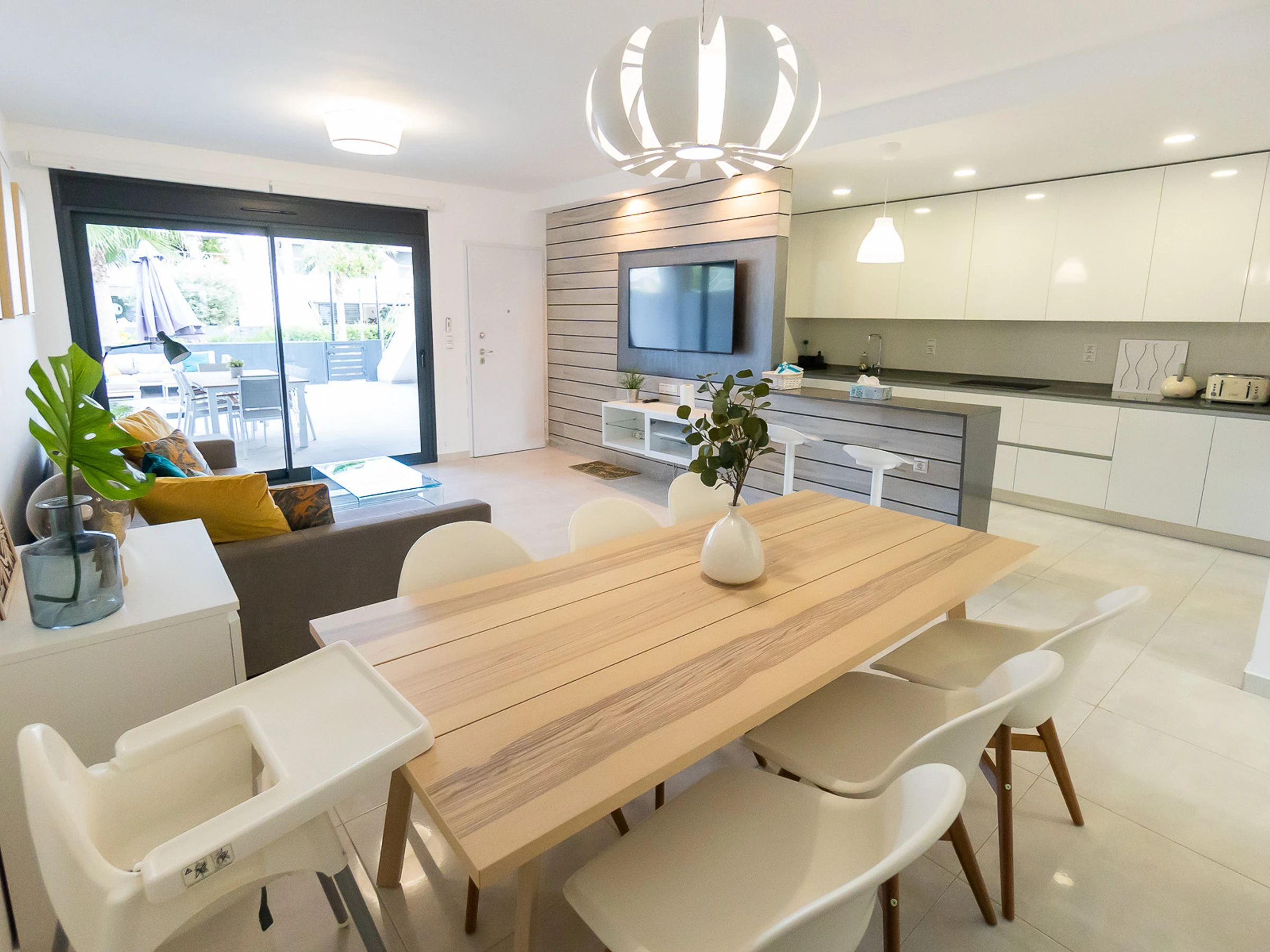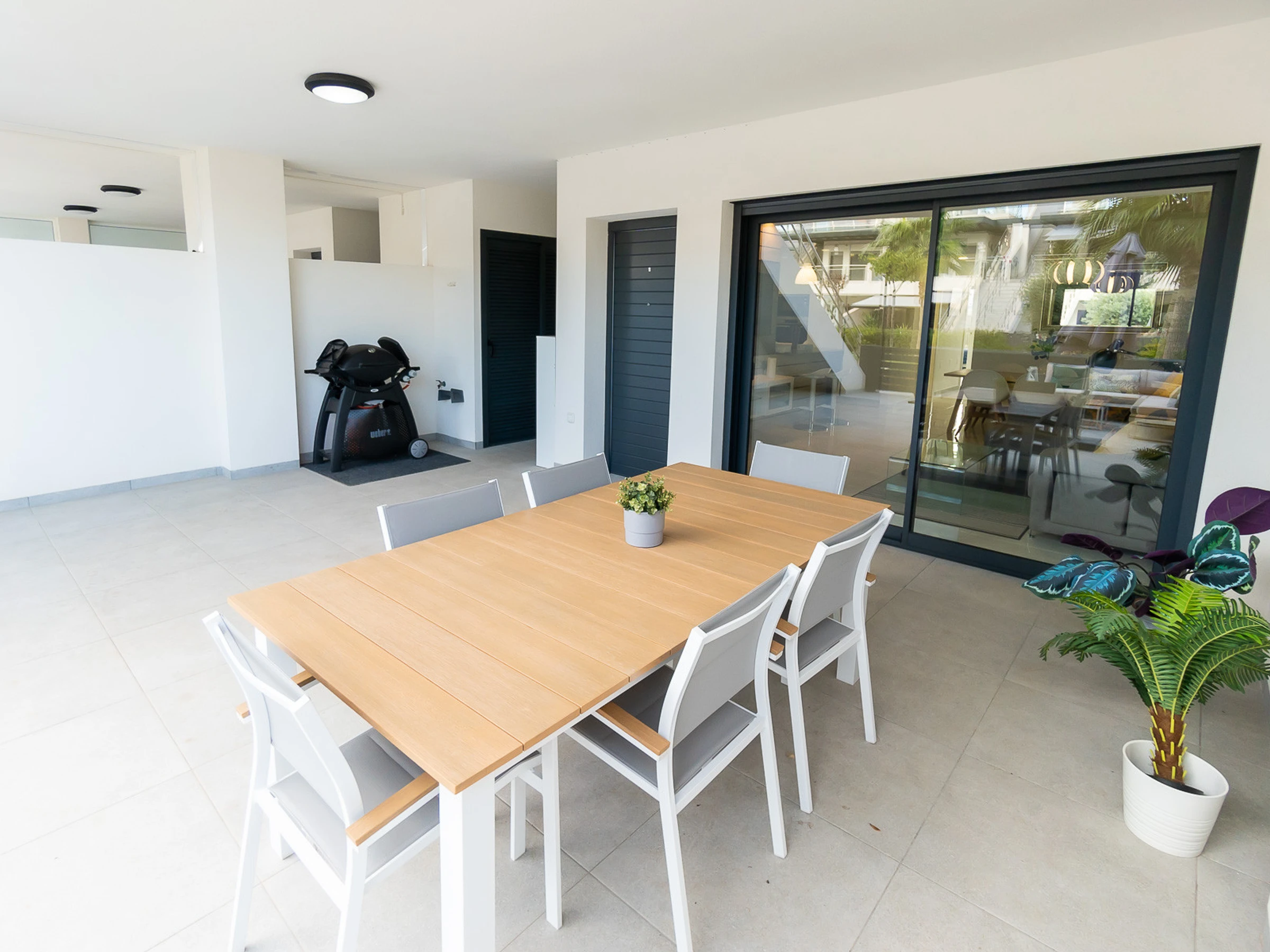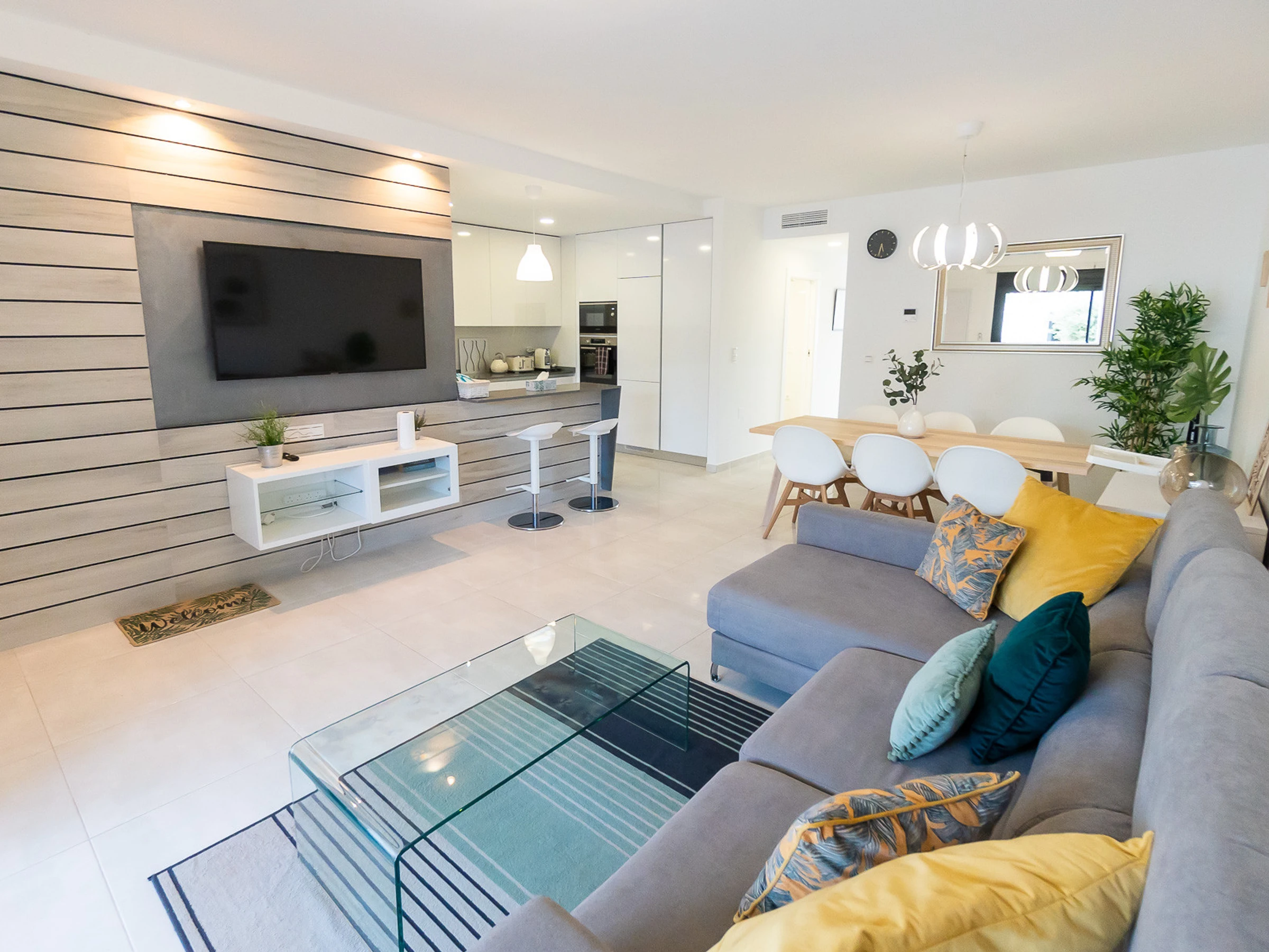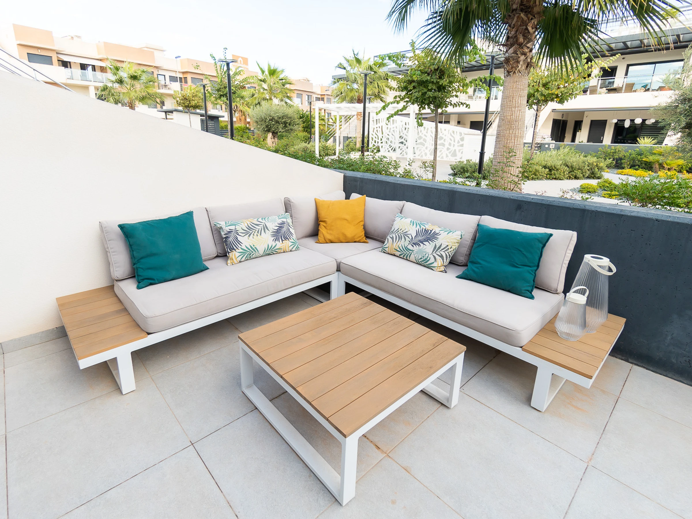 Nous vous proposons des appartements en location courte durée dans la résidence Royal Park 23. L'appartement a une superficie de 100 m2 et se compose de trois chambres, un séjour, une cuisine et deux salles de bains. Vous trouverez une terrasse privée pour bronzer, ainsi qu'une grande cour avec mobilier de jardin et barbecue. Il y a une place de parking dans le garage souterrain. Les appartements disposent de tout ce dont vous avez besoin pour un séjour confortable et relaxant : meubles, électroménager (dont une cafetière), vaisselle, linge de lit et serviettes, chaises longues. Climatisation centrale, télévision espagnole, Internet sans fil. La résidence dispose de son propre grand espace avec piscine. Non loin de la résidence se trouve un supermarché « DIAL PRIX », dans un rayon de 250 mètres se trouvent plusieurs restaurants et les golfs sont à un peu plus d'un kilomètre. La mer et la plage de La Zenia sont à environ 2,5 kilomètres. Possibilité d'hébergement – jusqu'à 6 personnes (pas d'animaux !). Il est permis de fumer uniquement dans la cour !