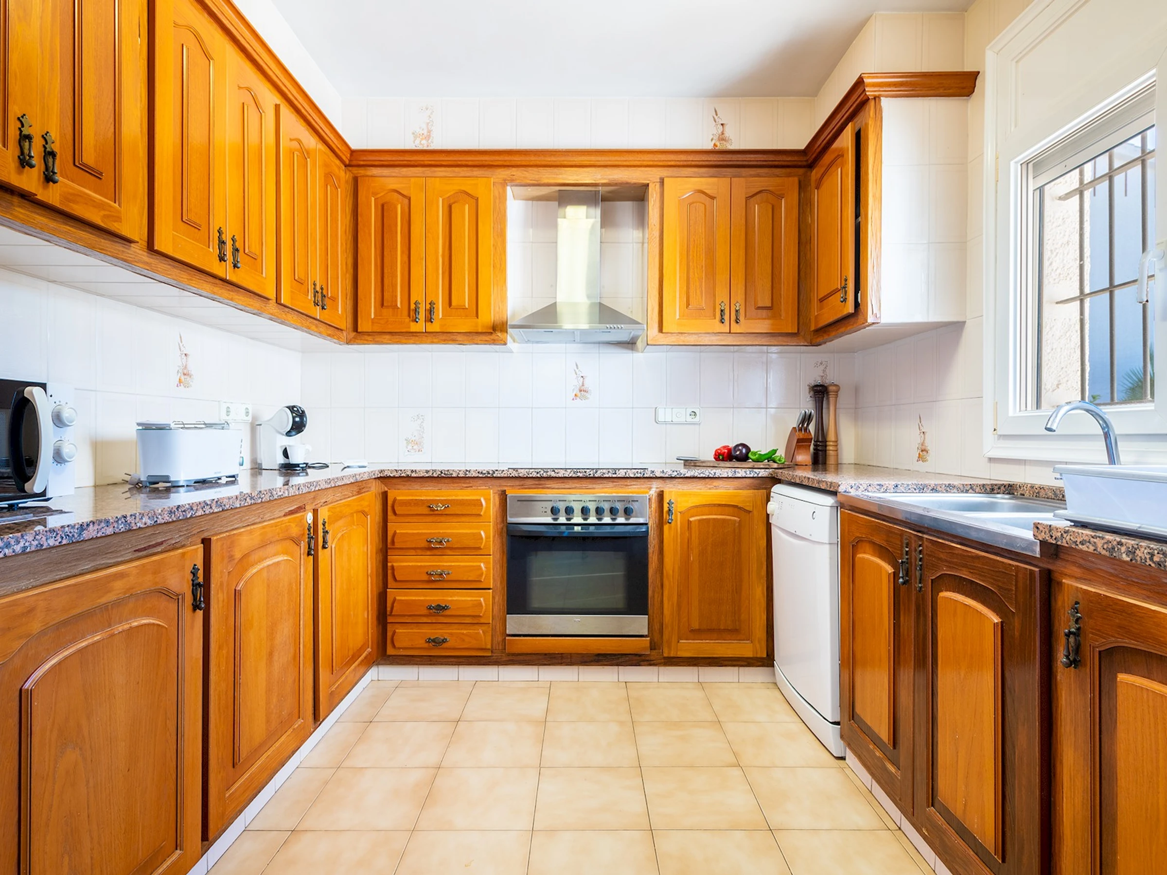 La cuisine, est équipée avec réfrigérateur, micro-ondes, four, congélateur, lave-vaisselle, ustensiles/cuisine, cafetière, grille pain et bouilloire.
