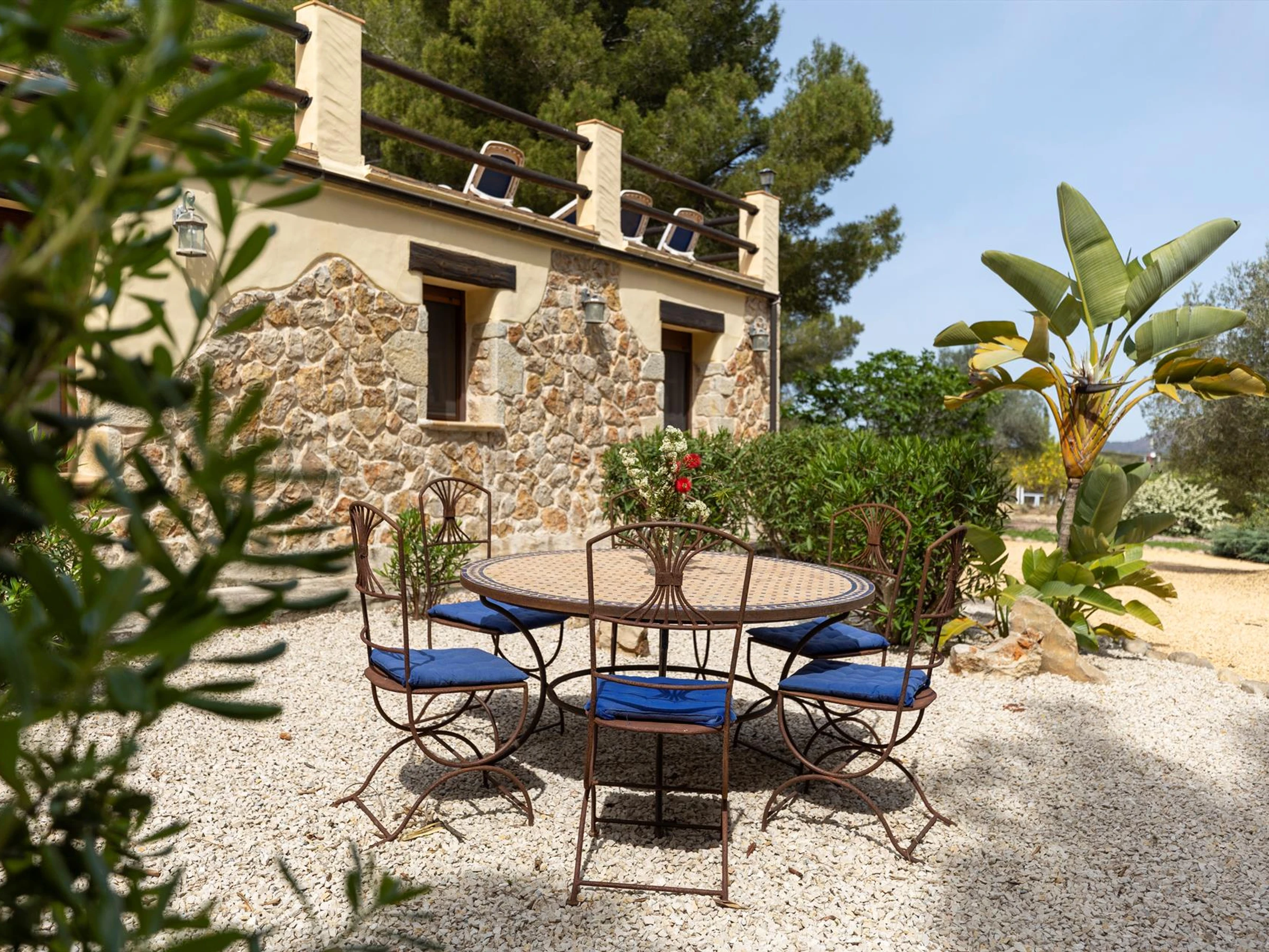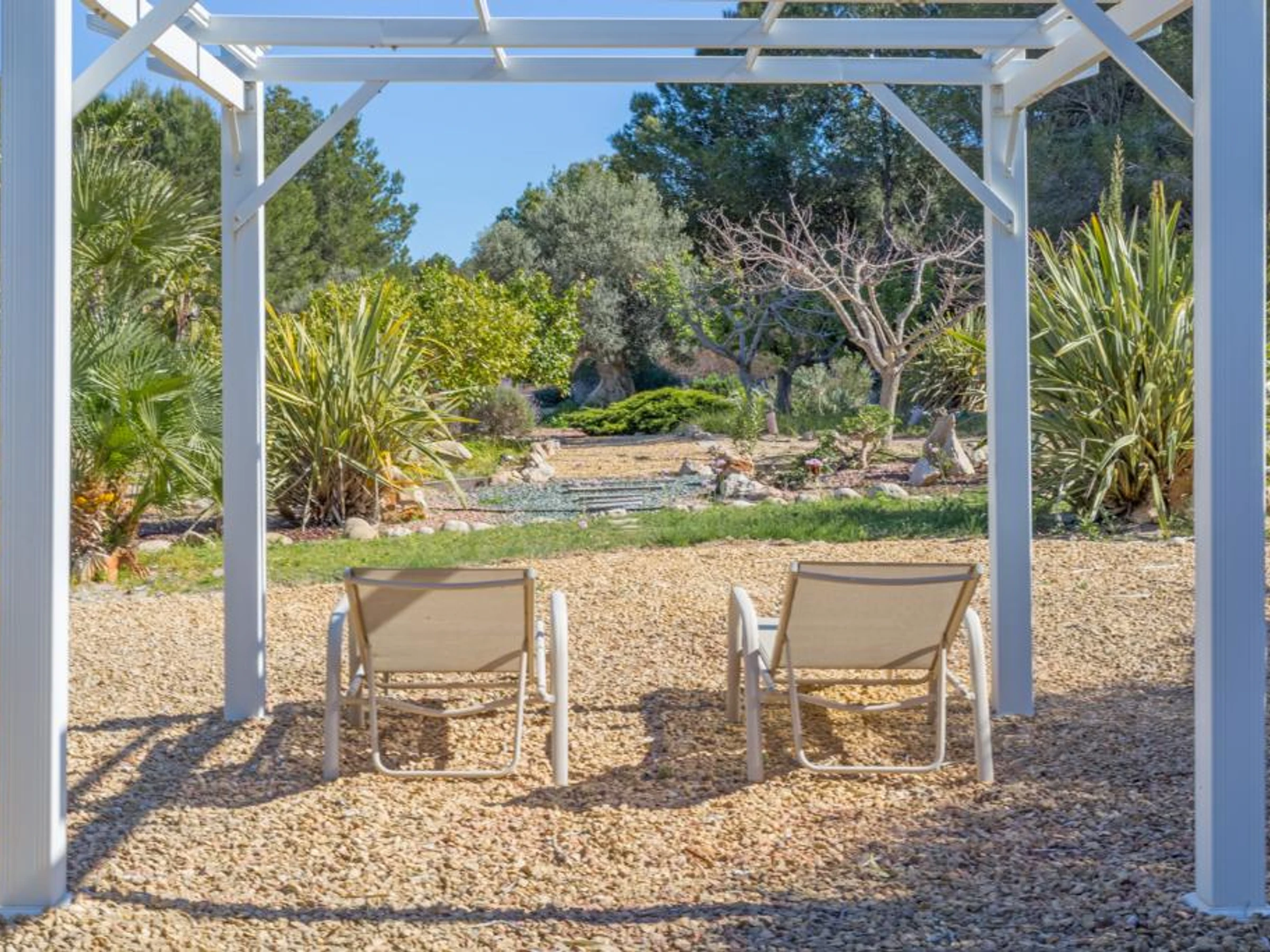 avec ses arbres et plantes diverses. De la terrasse à l’étage vous admirerez
