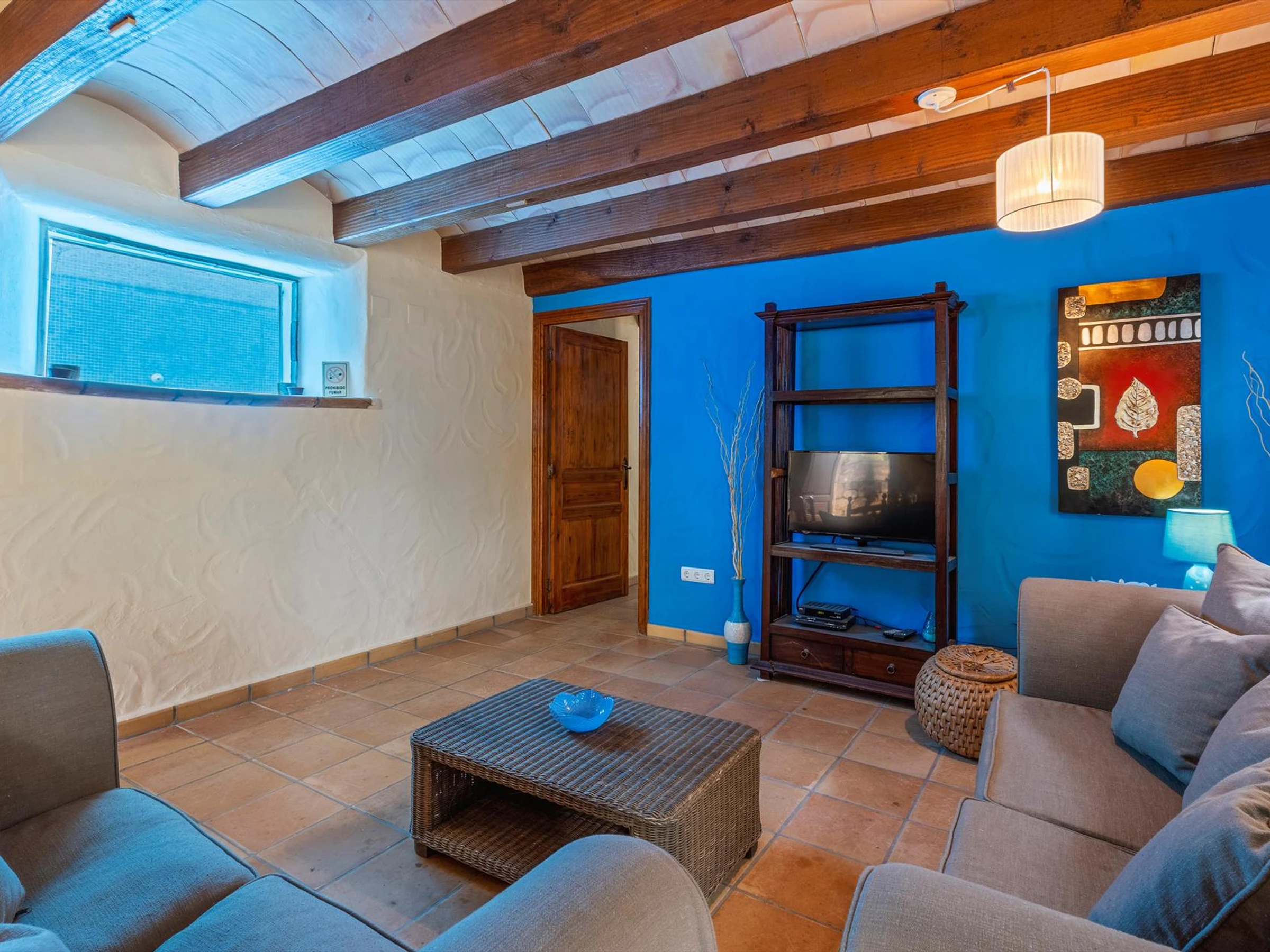 et une salle de télévision. Un détail particulier, la fenêtre par laquelle vous