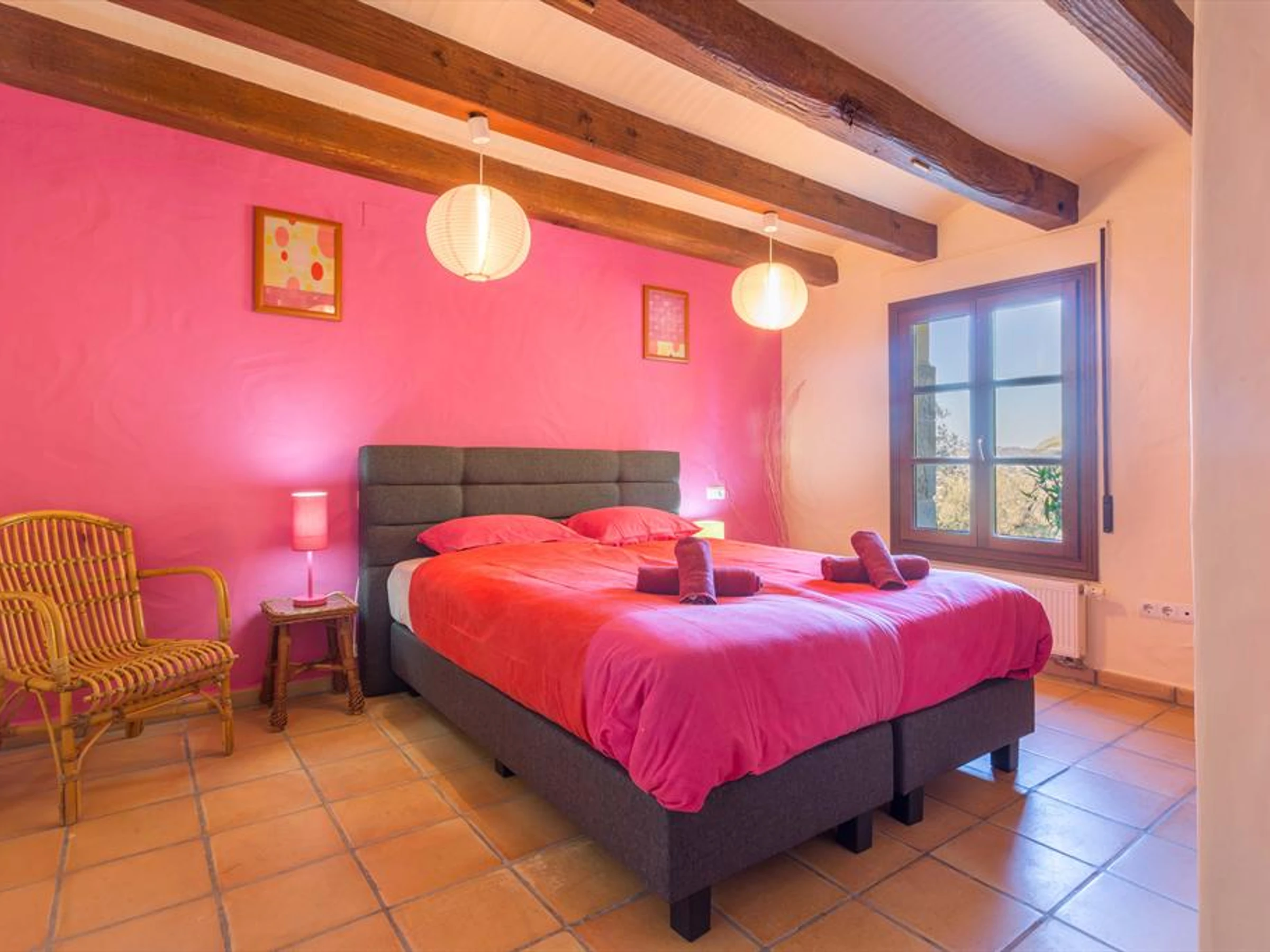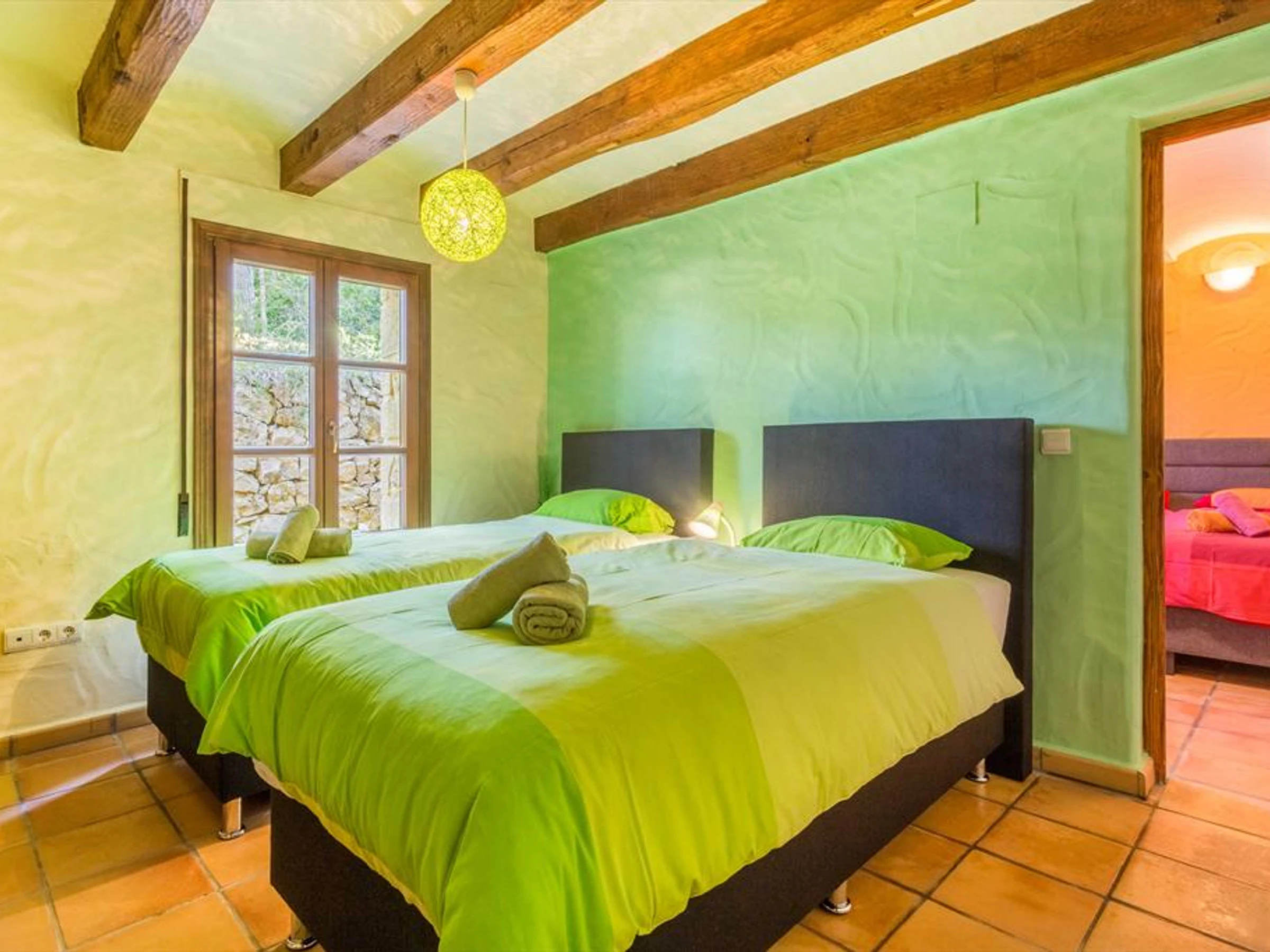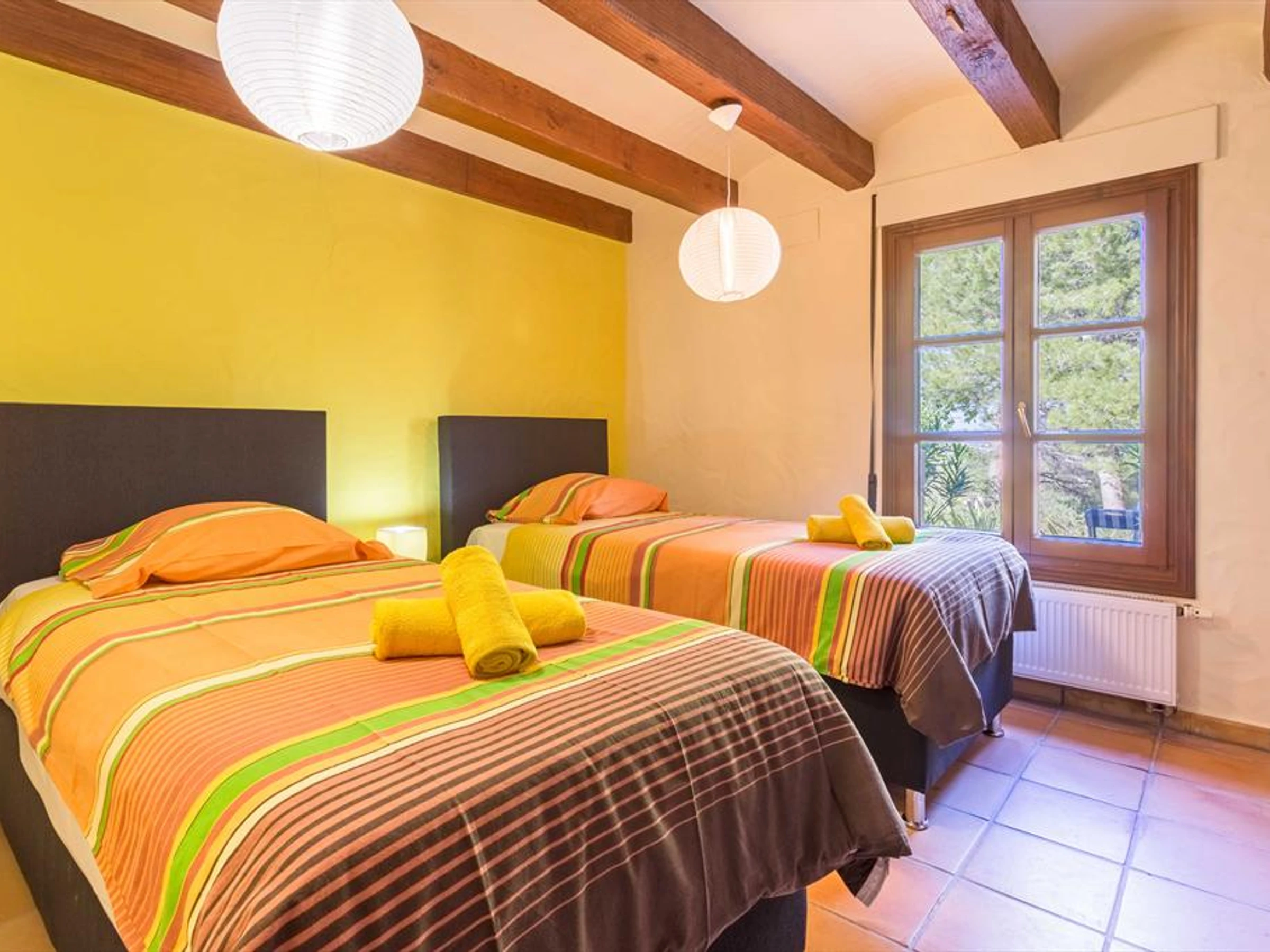 * 4 chambres, 2 avec lit double et 2 composées de deux lits simples, des