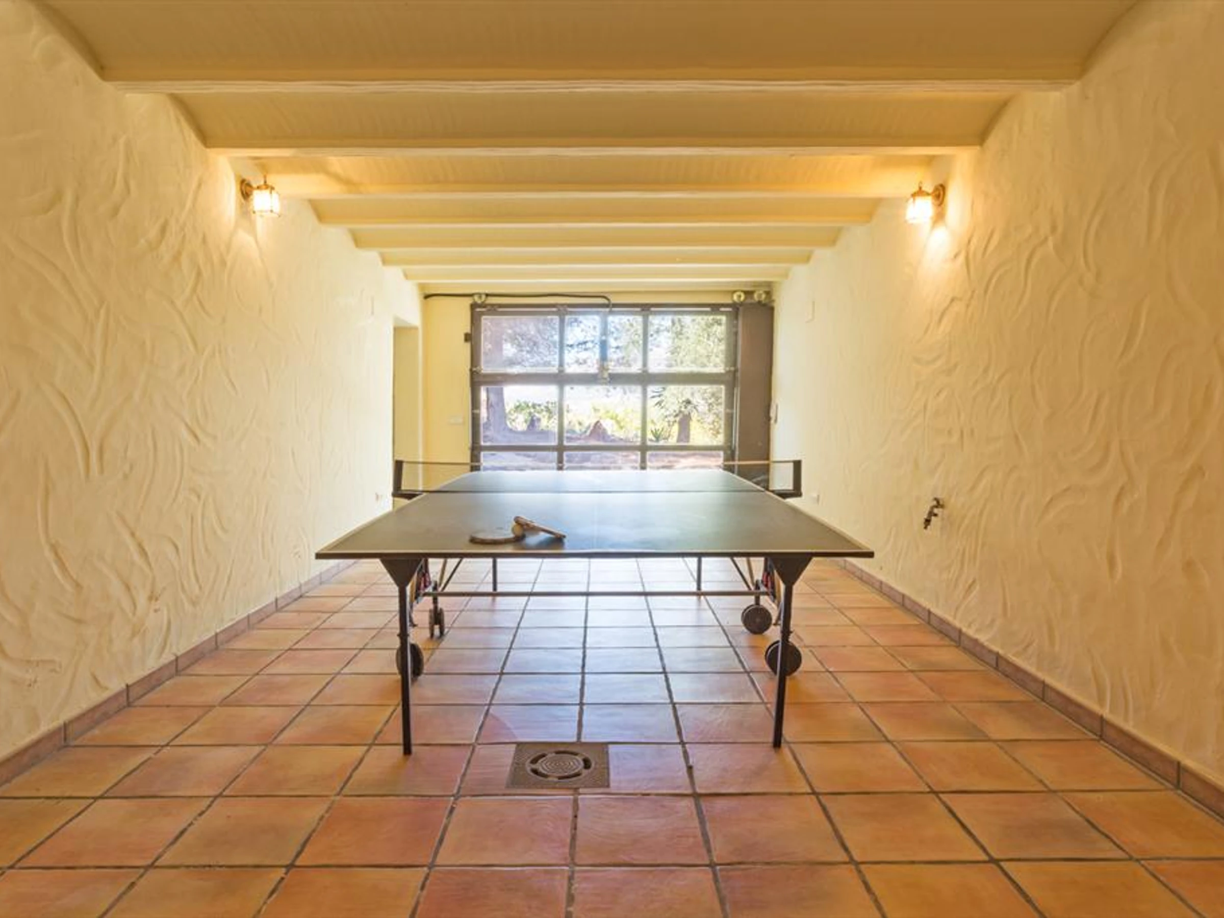 * chambre avec table de ping-pong et un réfrigérateur supplémentaire