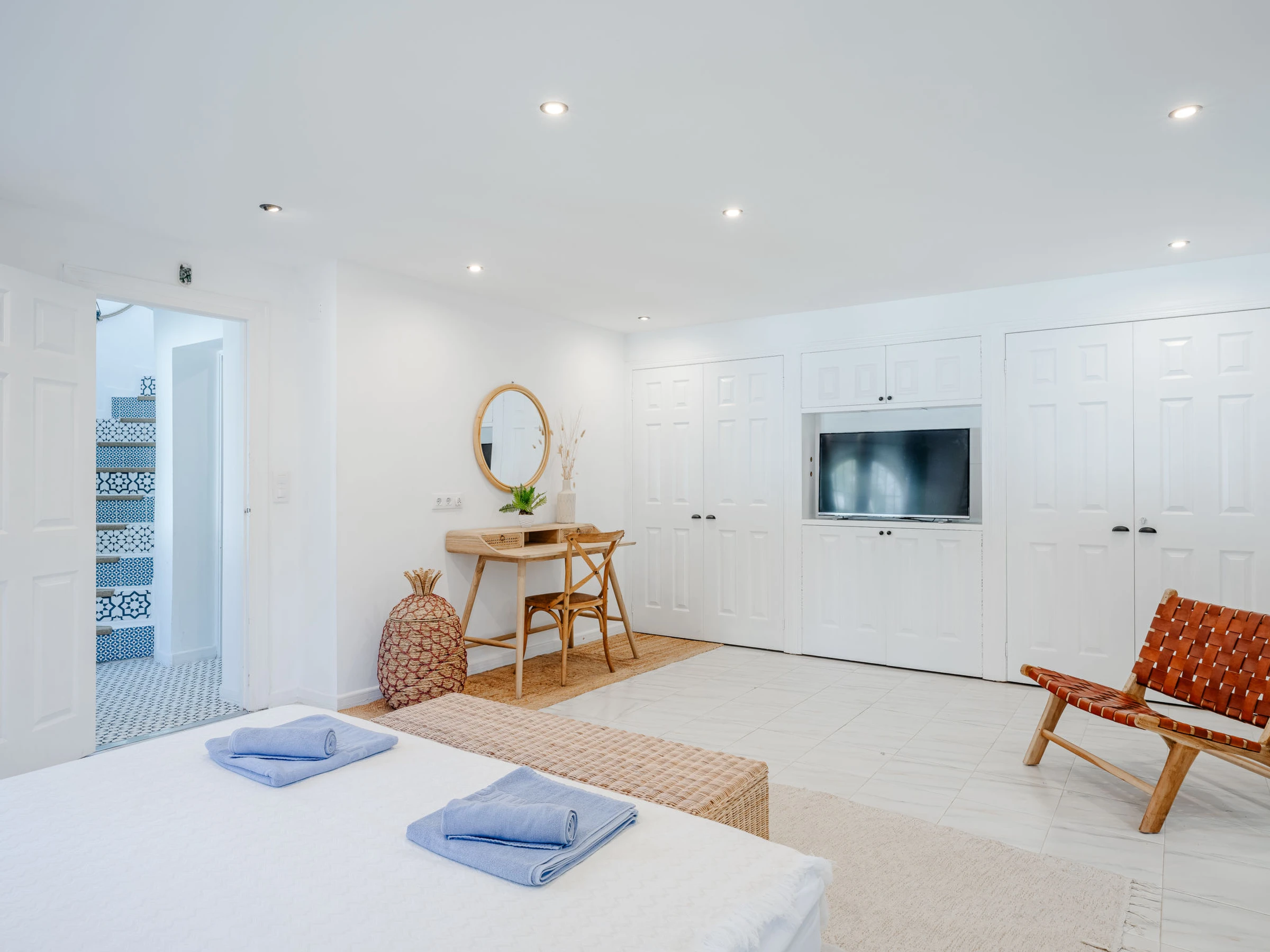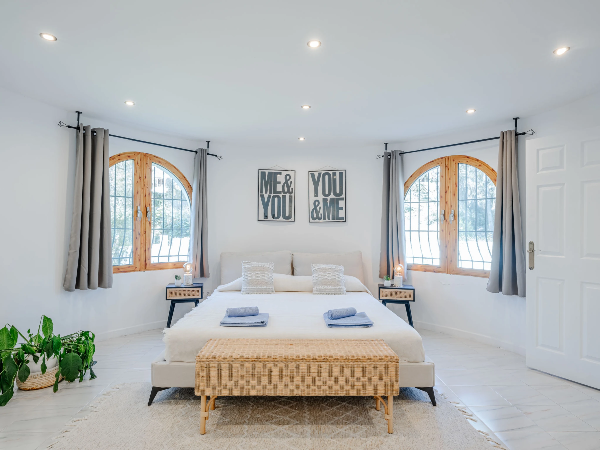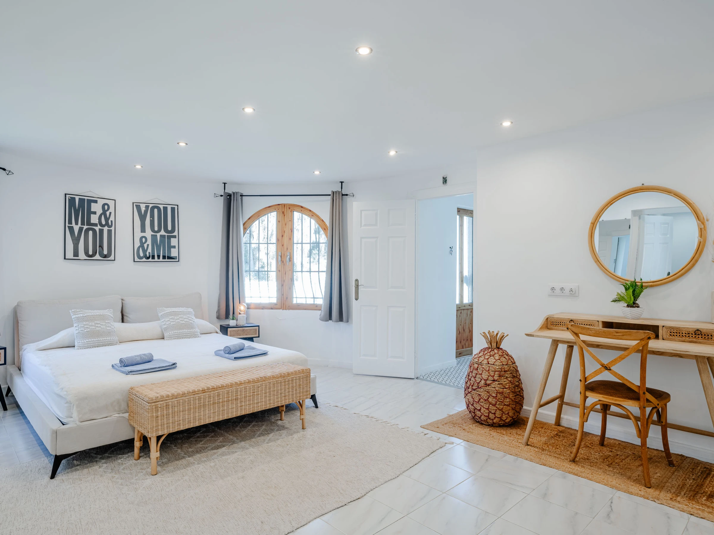 "Casa Sierra Pinos Plus", villa 6 pièces 320 m2 sur 2 niveaux. Spacieux et clair, rénovée, aménagement très agréable et de style: séjour/salle à manger avec TV (satellite), air-conditionné et chauffage à air chaud. Sortie pergola, sur la piscine. 1 chambre avec 1 grand-lit (160 cm, longueur 200 cm), douche/WC, air-conditionné et chauffage à air chaud. 1 chambre avec 1 grand-lit (160 cm, longueur 200 cm), air-conditionné et chauffage à air chaud. 1 chambre avec 1 x 2 lits superposés (90 cm, longueur 200 cm), air-conditionné et chauffage à air chaud. Cuisine (four, lave-vaisselle, 5 feux, grille-pain, bouilloire électrique, micro-ondes, congélateur, cafetière électrique, Capsules pour machine à café (Nespresso) (NON INCLUSES)). Bain/WC. À l'étage inférieur: 1 chambre avec 1 grand-lit (180 cm, longueur 200 cm), bain/WC, air-conditionné et chauffage à air chaud. 1 chambre avec 1 grand-lit (180 cm, longueur 200 cm), douche/WC, air-conditionné et chauffage à air chaud. Sortie sur le jardinet. Petite cuisine (grille-pain, bouilloire électrique, micro-ondes, congélateur, cafetière électrique, Capsules pour machine à café (Nespresso) (NON INCLUSES)). Grand jardin, pelouse. Meubles de terrasse, barbecue, chaises longues (6), loggia, place pour s'asseoir. A disposition: lave-linge, fer à repasser, chaise haute pour enfant, lit bébé, sèche-cheveux. Internet (Connexion WIFI, gratuit). Place de parking, garage. [hidden] // Reg. Nr.: ESFCTU00000307100037223400000000000000000[hidden]0