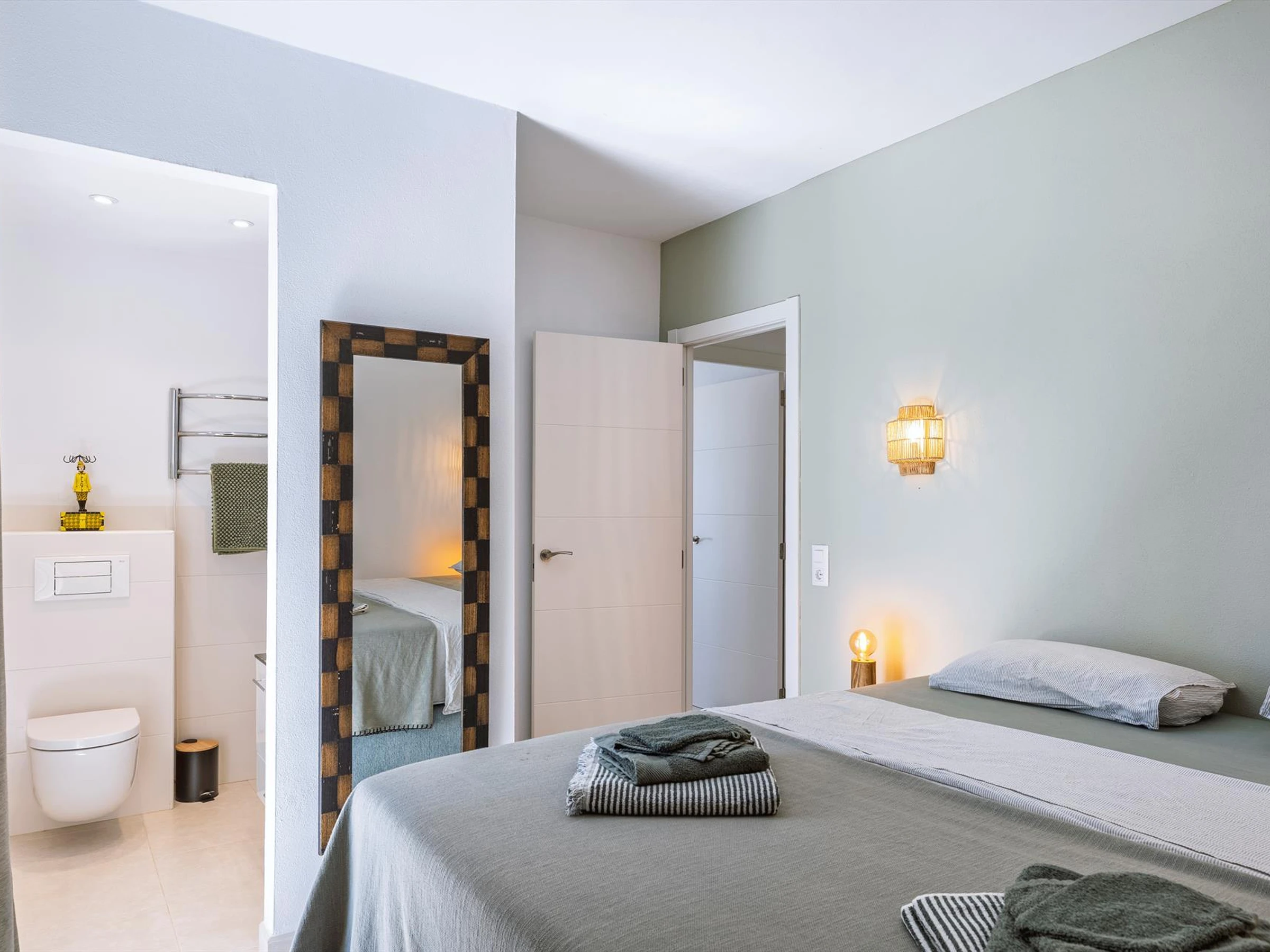 Suite parentale avec lit double, armoire, salle de bains, WC séparé et grande