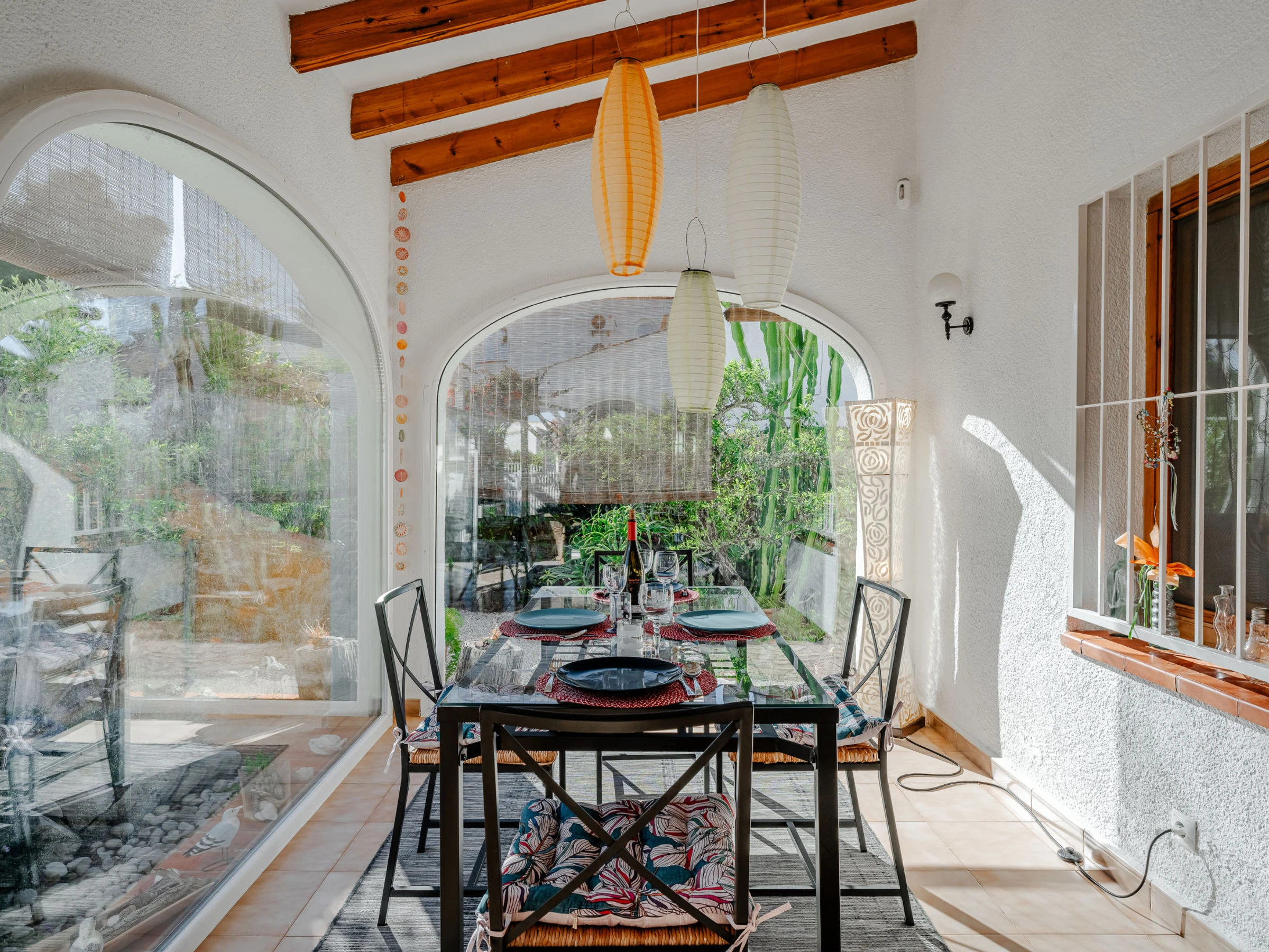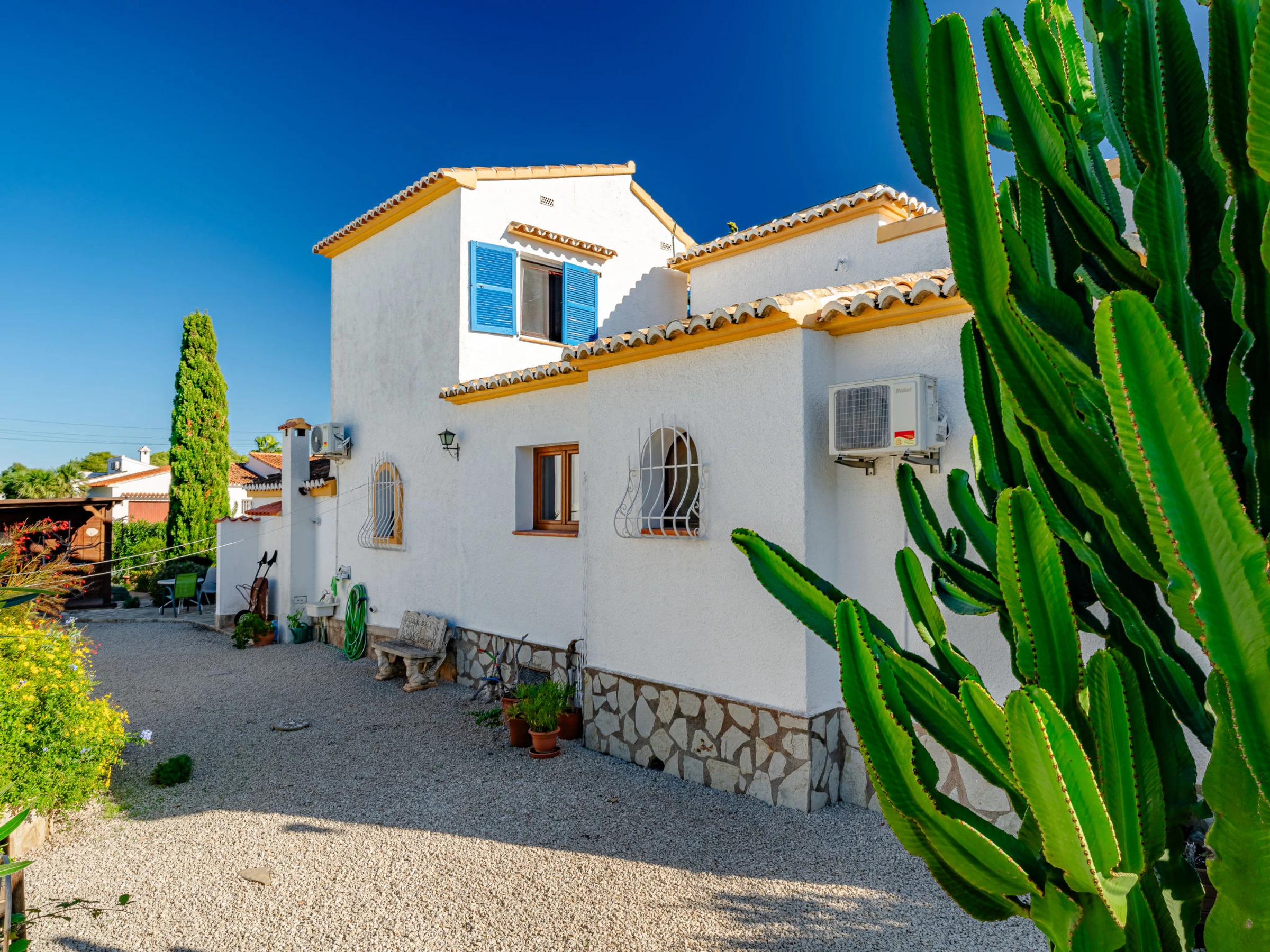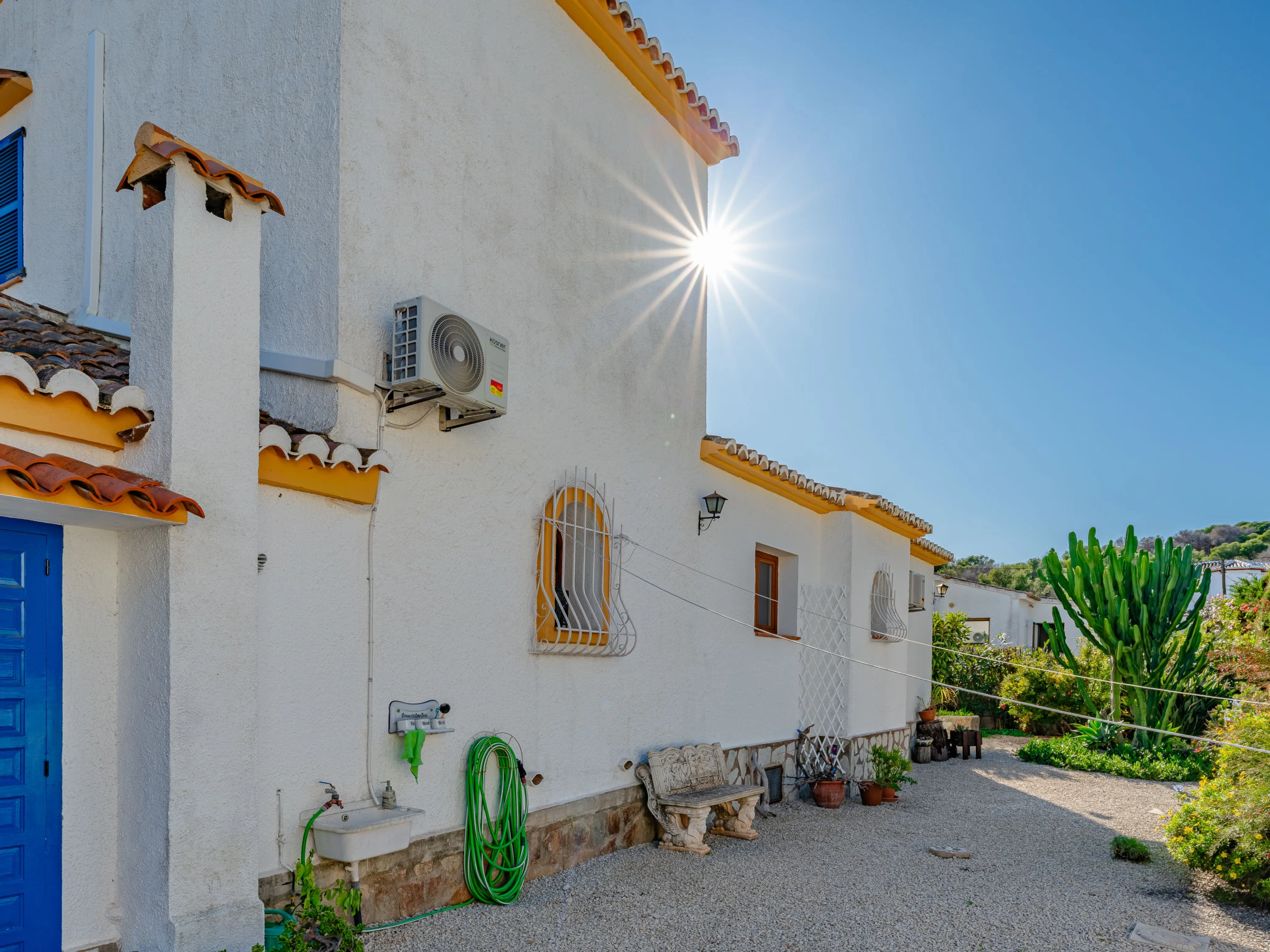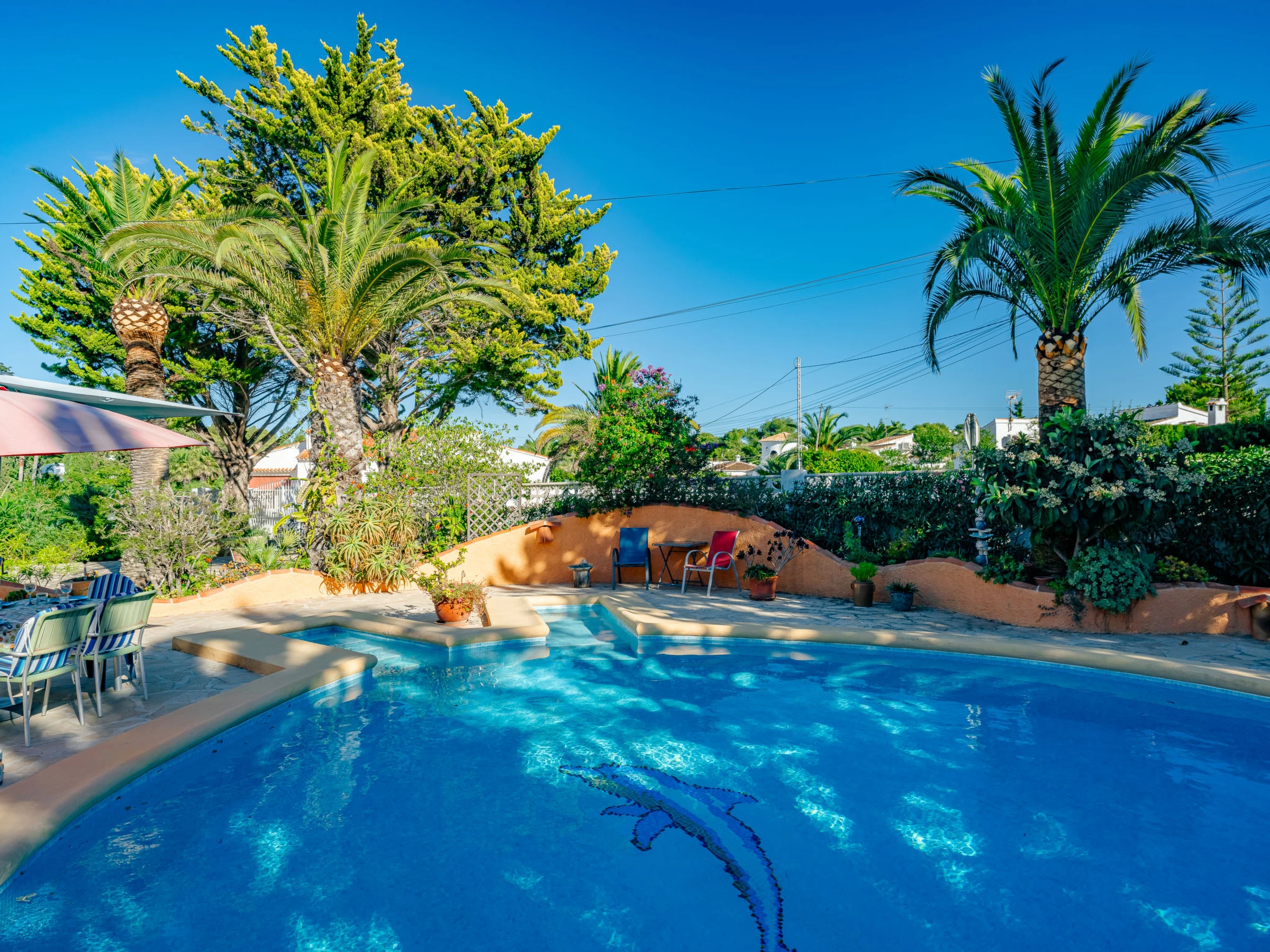 Belle, grande maison confortable "Sol & Sal". Dans le quartier de Costa Nova, dans la localité, à 4.8 km du centre d'Arenal - Javea, situation tranquille, ensoleillée, à 1.8 km de la mer, à 2.7 km de la plage. A usage privé: beau jardin entretenu avec plantes et arbres, piscine (8 x 9 m, profondeur 40 - 210 cm, disponibilité saisonnière: [hidden] - [hidden] avec marches intérieures. Piscine de forme irrégulière. Douche extérieure, meubles de jardin, barbecue, place de parking sur le terrain. Supermarché 3 km, restaurant 350 m, café 1.1 km, arrêt de bus 4.5 km, plage de sable "Arenal" 4.8 km, plage de galets "Portitxol" 2.7 km. Port plaisance 4.8 km, ecole de surf 2.7 km, ecole de voile 4.8 km. Le propriétaire n'accepte pas les groupes de jeunes.