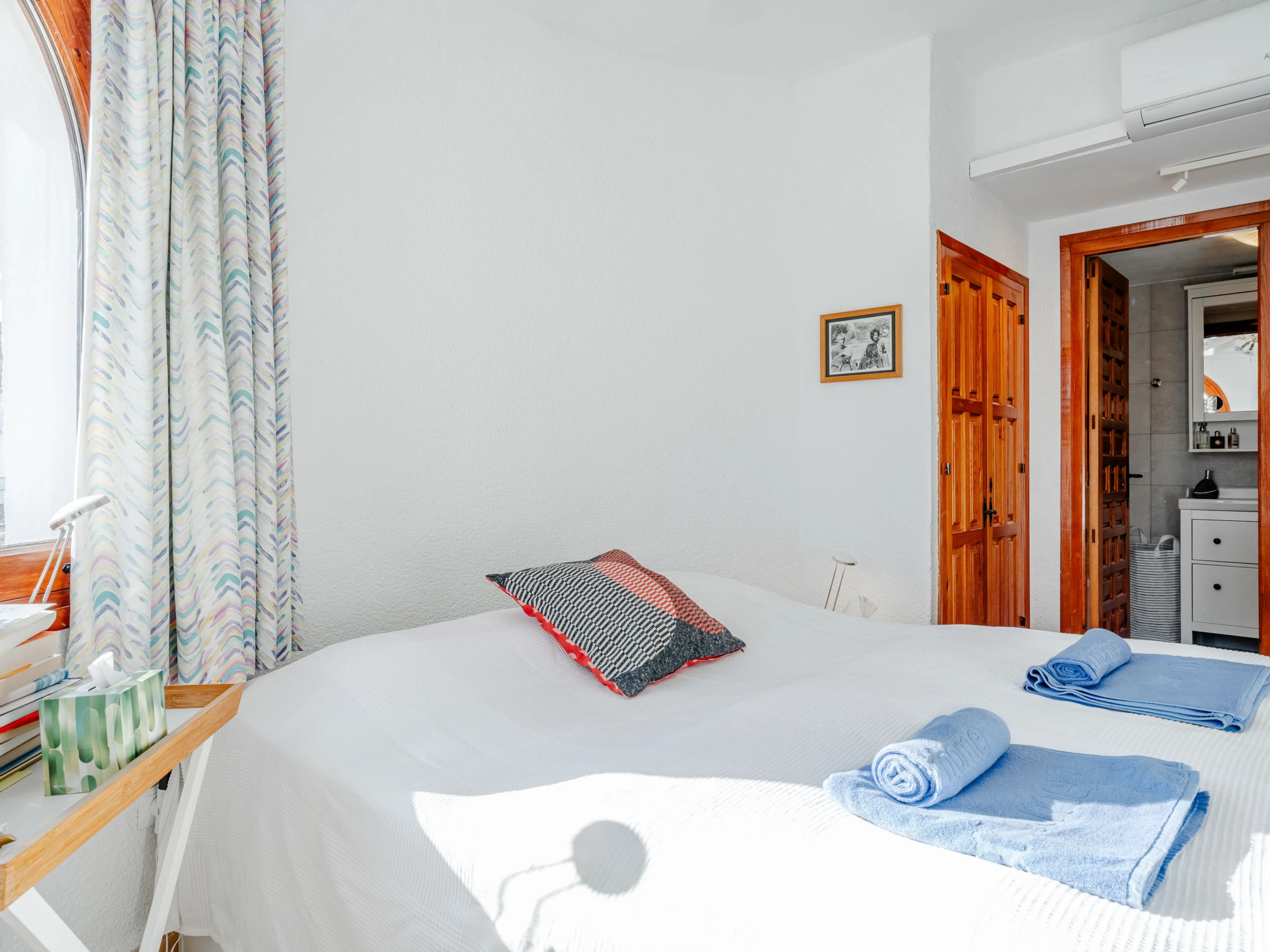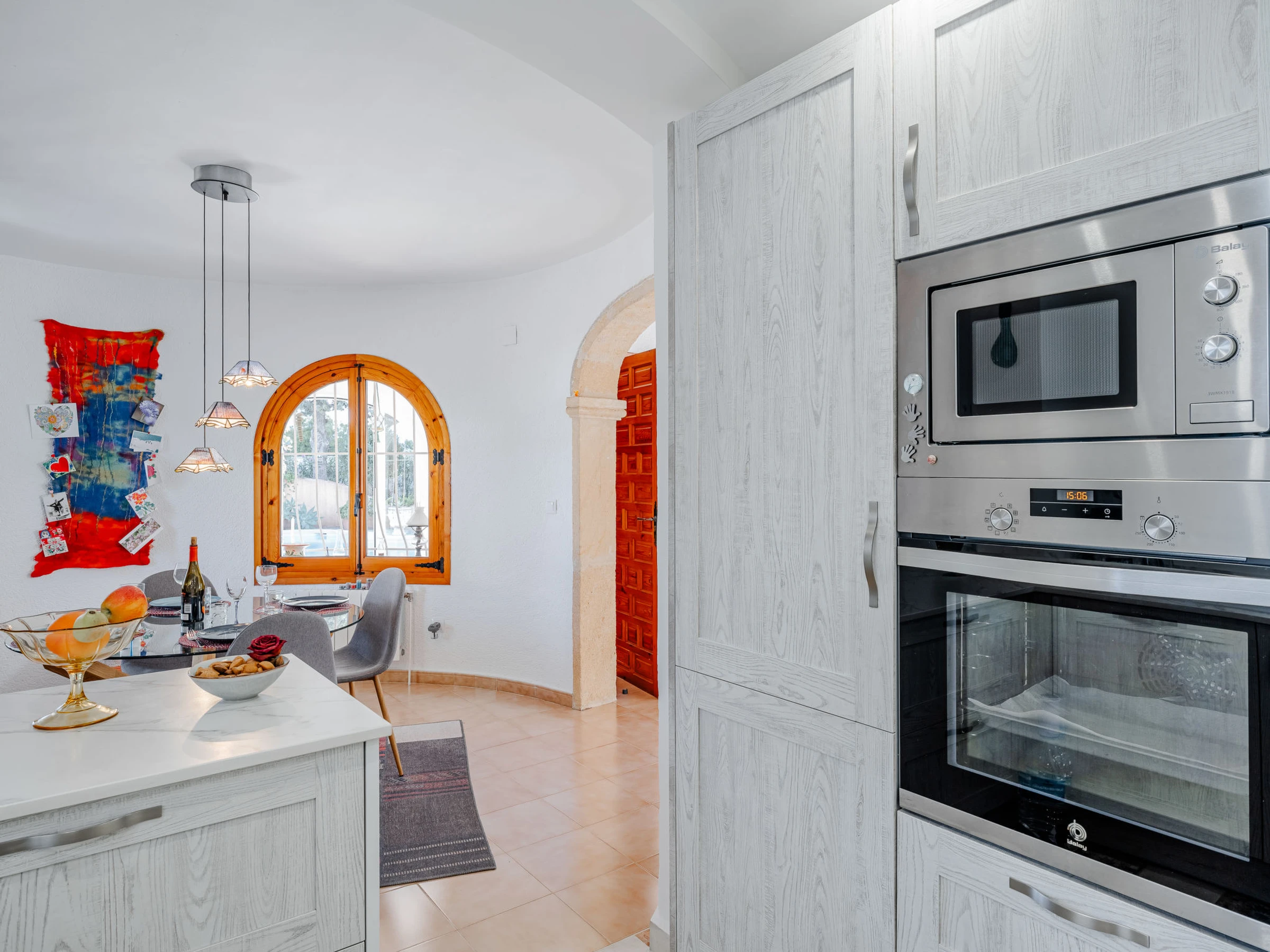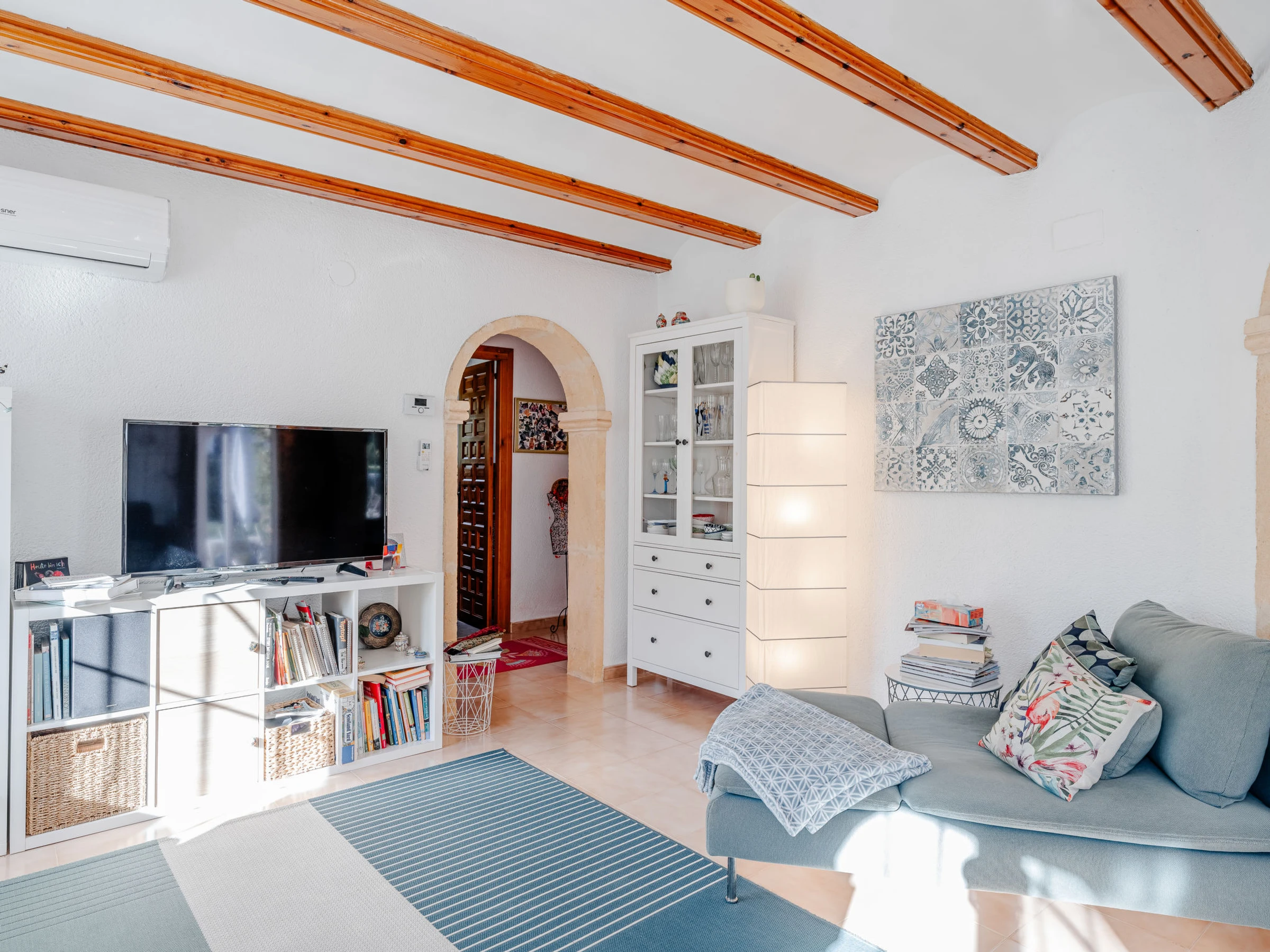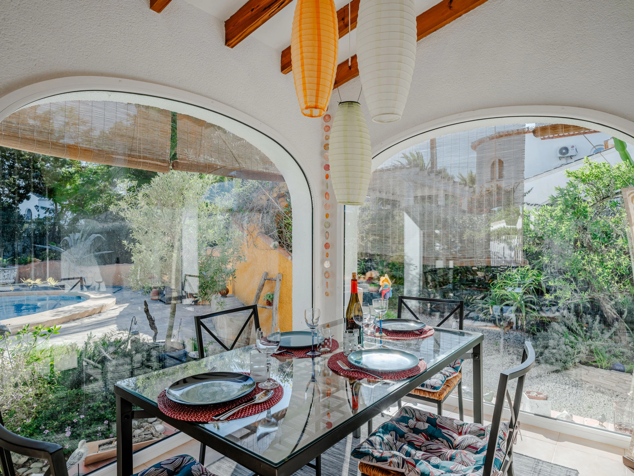 Belle, grande maison confortable "Sol & Sal". Dans le quartier de Costa Nova, dans la localité, à 4.8 km du centre d'Arenal - Javea, situation tranquille, ensoleillée, à 1.8 km de la mer, à 2.7 km de la plage. A usage privé: beau jardin entretenu avec plantes et arbres, piscine (8 x 9 m, profondeur 40 - 210 cm, disponibilité saisonnière: [hidden] - [hidden] avec marches intérieures. Piscine de forme irrégulière. Douche extérieure, meubles de jardin, barbecue, place de parking sur le terrain. Supermarché 3 km, restaurant 350 m, café 1.1 km, arrêt de bus 4.5 km, plage de sable "Arenal" 4.8 km, plage de galets "Portitxol" 2.7 km. Port plaisance 4.8 km, ecole de surf 2.7 km, ecole de voile 4.8 km. Le propriétaire n'accepte pas les groupes de jeunes.