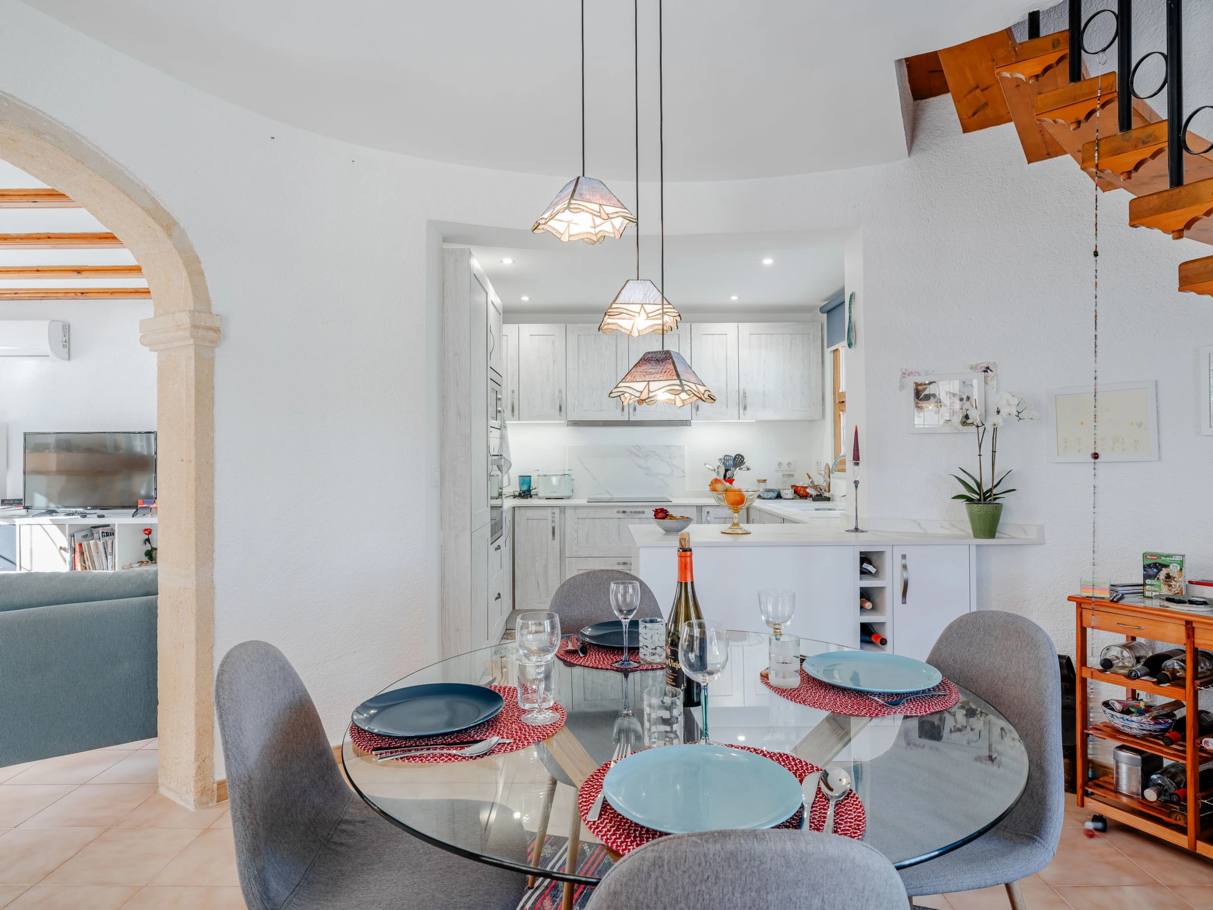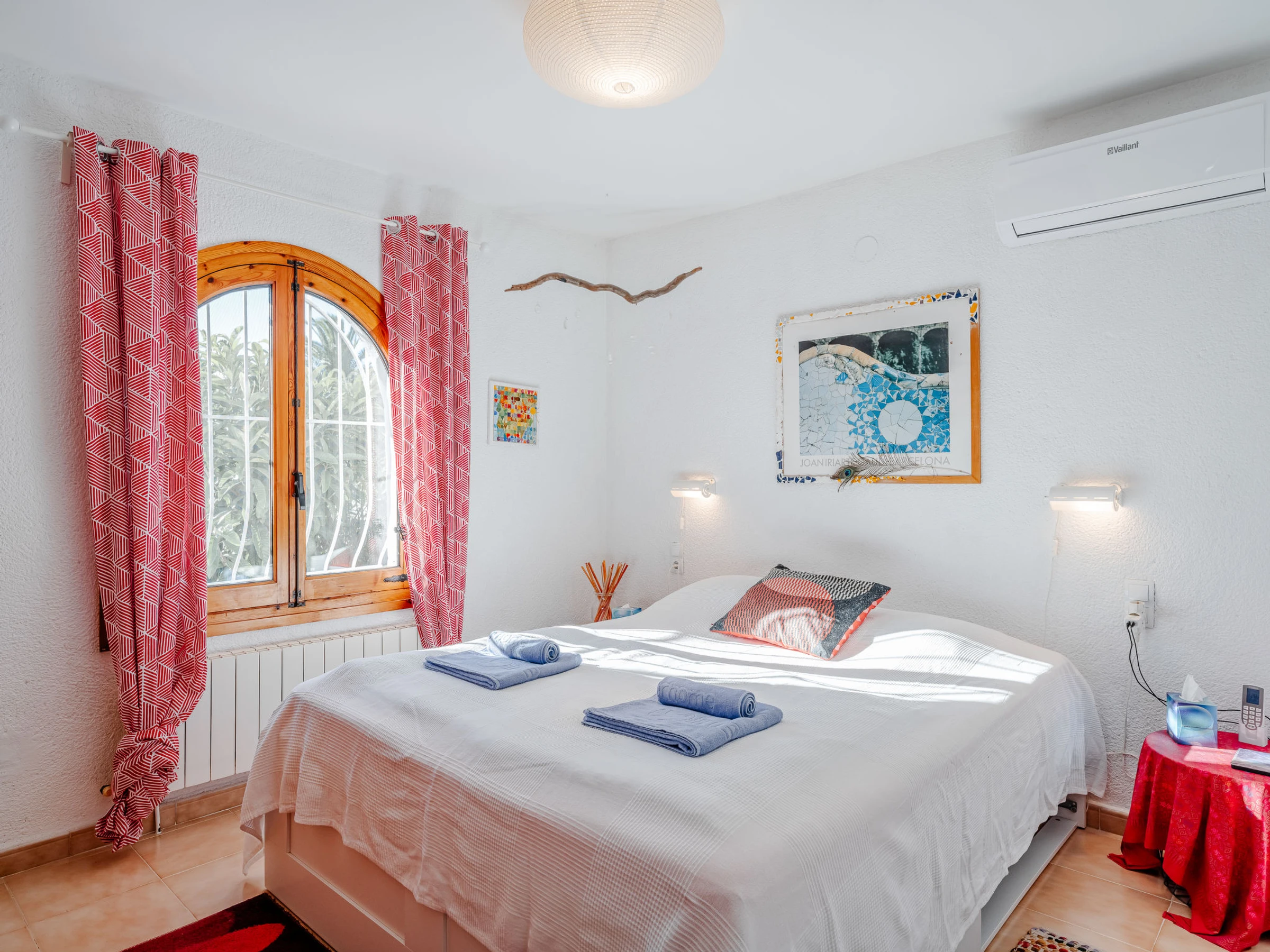 "Casa Sol & Sal", maison 3 pièces 120 m2 sur 2 niveaux. Spacieux et clair, aménagement confortable et de style: séjour/salle à manger avec TV (satellite), air-conditionné et chauffage à air chaud. Sortie sur la terrasse, sur la loggia, sur la piscine. Cuisine ouverte (four, lave-vaisselle, 3 plaques à induction, grille-pain, bouilloire électrique, micro-ondes, congélateur, cafetière électrique, Capsules pour machine à café (Krups) (NON INCLUSES)). À l'étage supérieur: 1 chambre avec 1 grand-lit (160 cm, longueur 200 cm), bain/WC, air-conditionné, ventilateur et chauffage à air chaud. 1 chambre avec 1 grand-lit (160 cm, longueur 200 cm), air-conditionné et chauffage à air chaud. Douche/WC. Grande terrasse. Meubles de terrasse, barbecue, chaises longues, loggia, place pour s'asseoir. A disposition: lave-linge, fer à repasser, sèche-cheveux. Internet (Connexion WIFI, gratuit). Place de parking. [hidden] // Reg. Nr.: ESFCNT00000307100035409400000000000000000000000000005