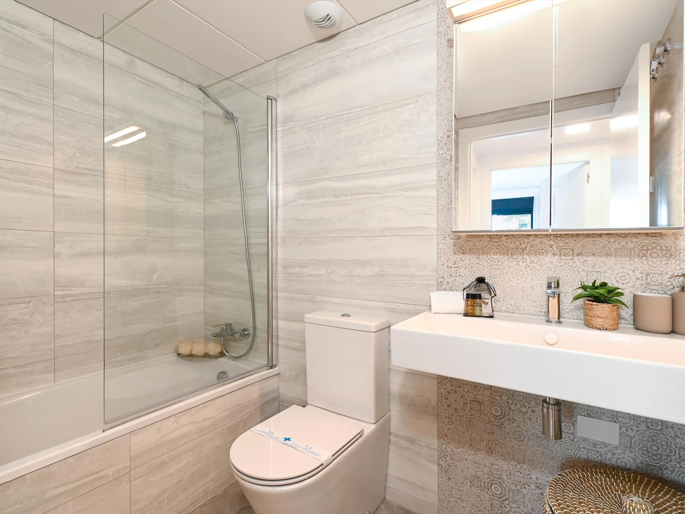 * salle de bain avec lavabo simple, baignoire/douche combinée et toilettes