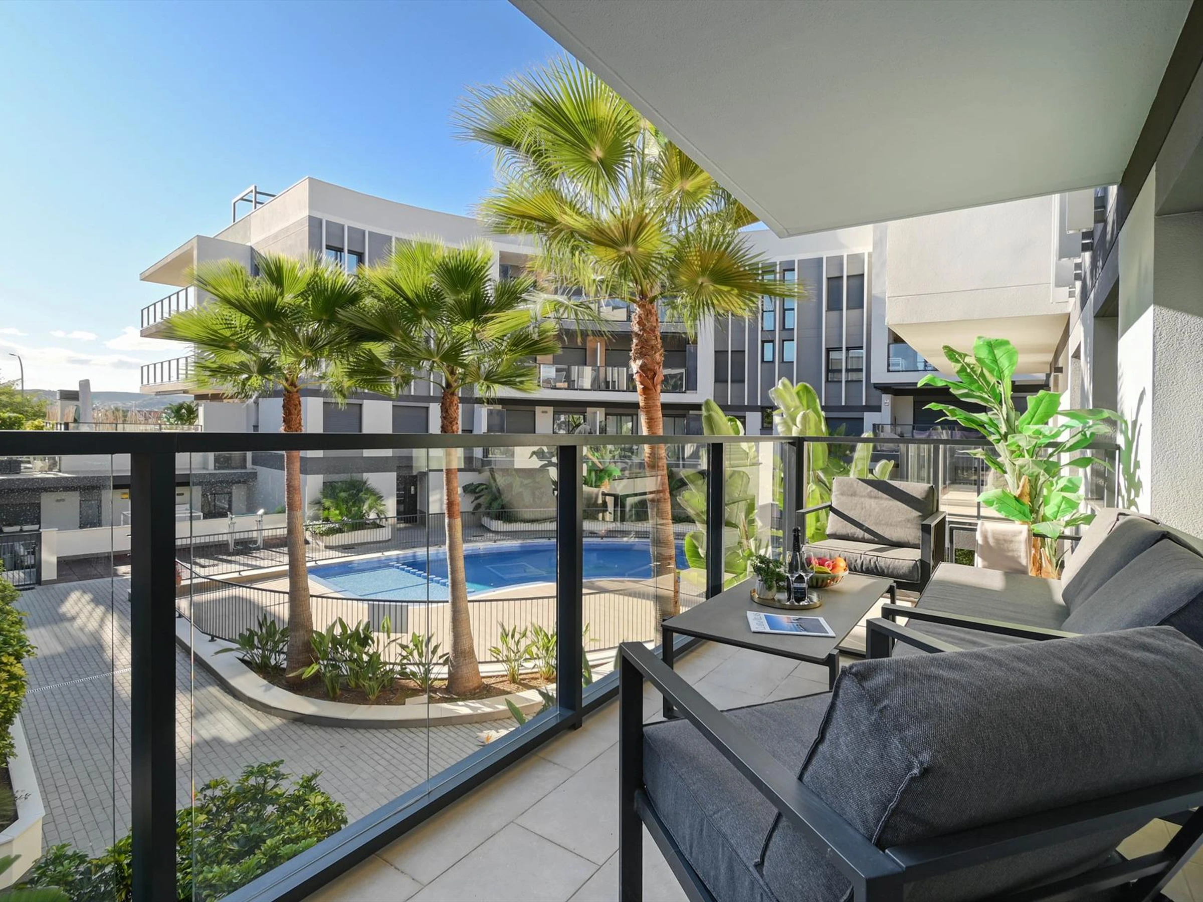 Appartement moderne et confortable avec piscine commune à Javea, Costa Blanca, Espagne pour 4 personnes. L'appartement est situé dans une zone urbaine, proche des restaurants et bars, des magasins et supermarchés, et à 2 km de La Grava, Puerto, plage de Javea.