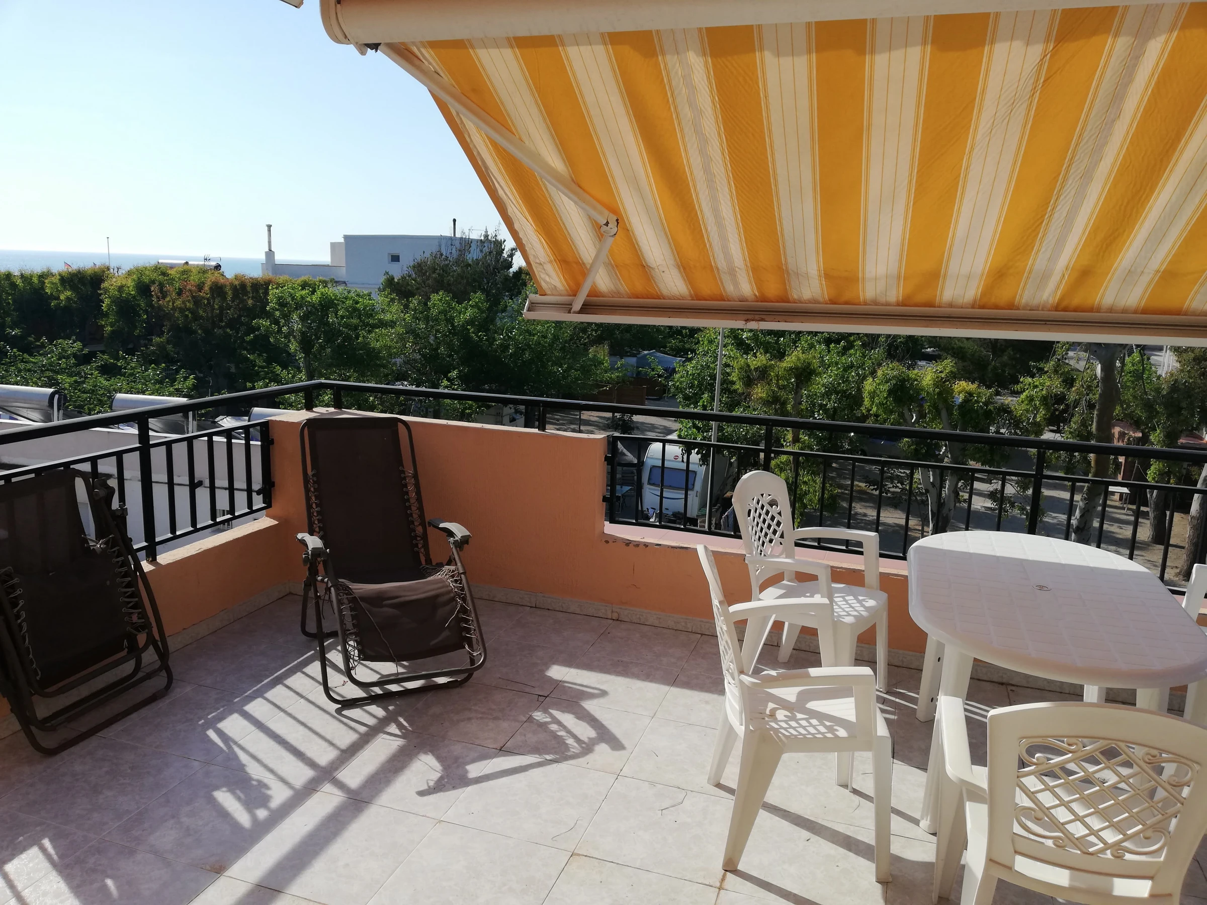 Bel appartement attique au deuxième étage avec trois chambres, une salle de bain complète, un toilette-douche, une cuisine indépendante avec une galerie-buanderie et une grande terrasse orientée Sud (avec auvents) avec vue sur la mer. Depuis celle-ci, on accède par des escaliers à une terrasse supérieure à usage privé. Le salon-salle à manger donne sur la terrasse, où vous profiterez quotidiennement de la vue. Comprend un garage fermé.