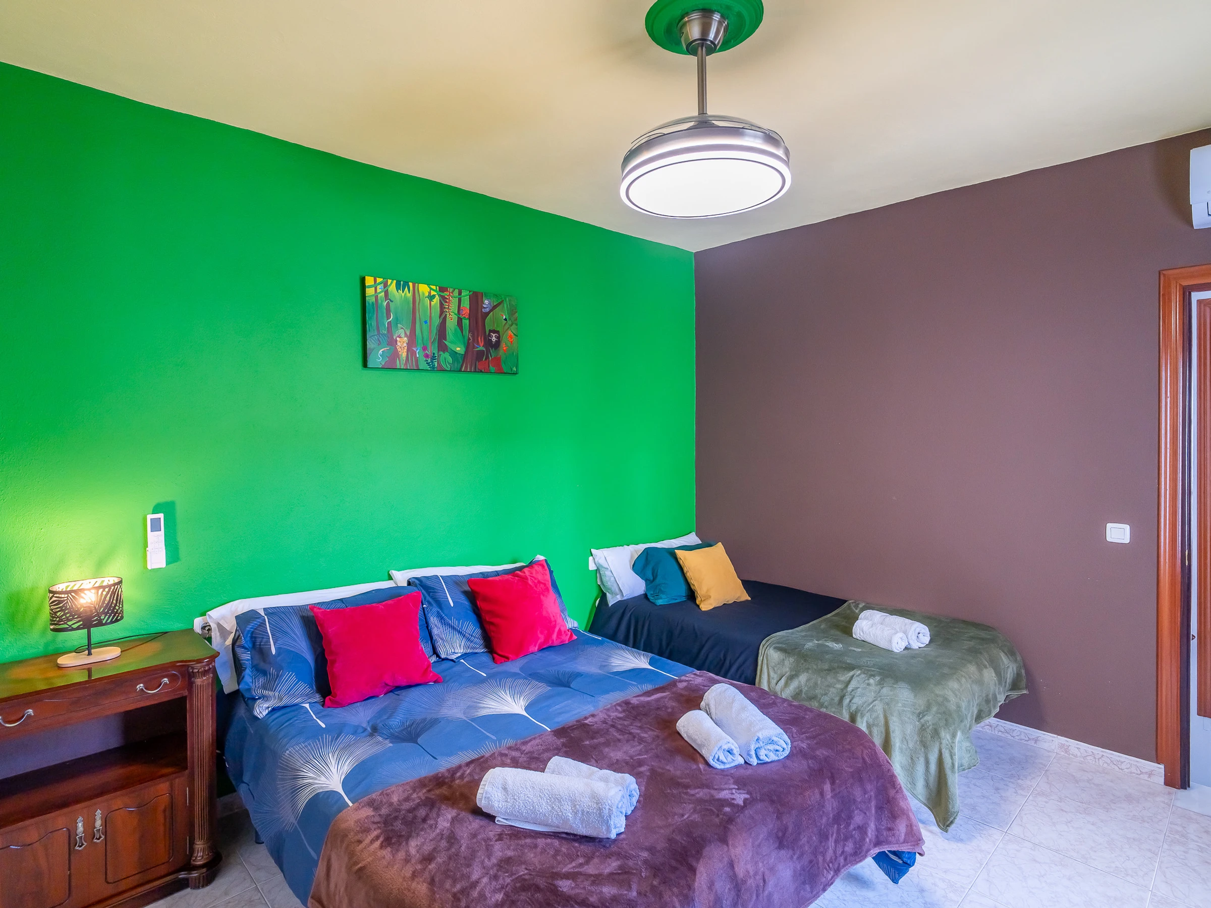 Le logement, de 220 m², dispose de 5 chambres, offrant de l'espace et du confort pour des séjours en groupe. Il est équipé de la climatisation dans tout le logement, d'un chauffage par pompe à chaleur, du wifi haut débit, d'une Smart TV et de ventilateurs, garantissant un séjour agréable tout au long de l'année.